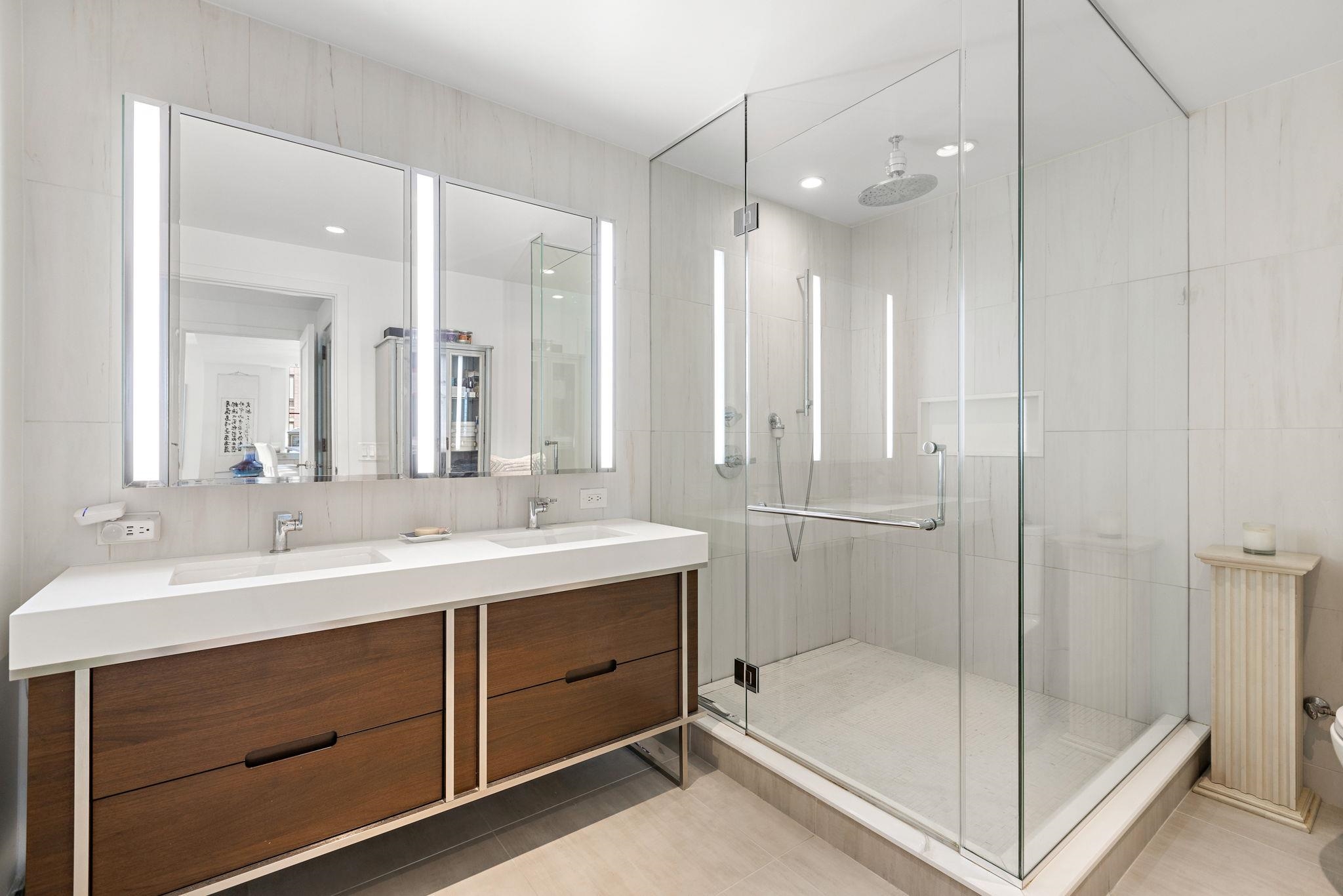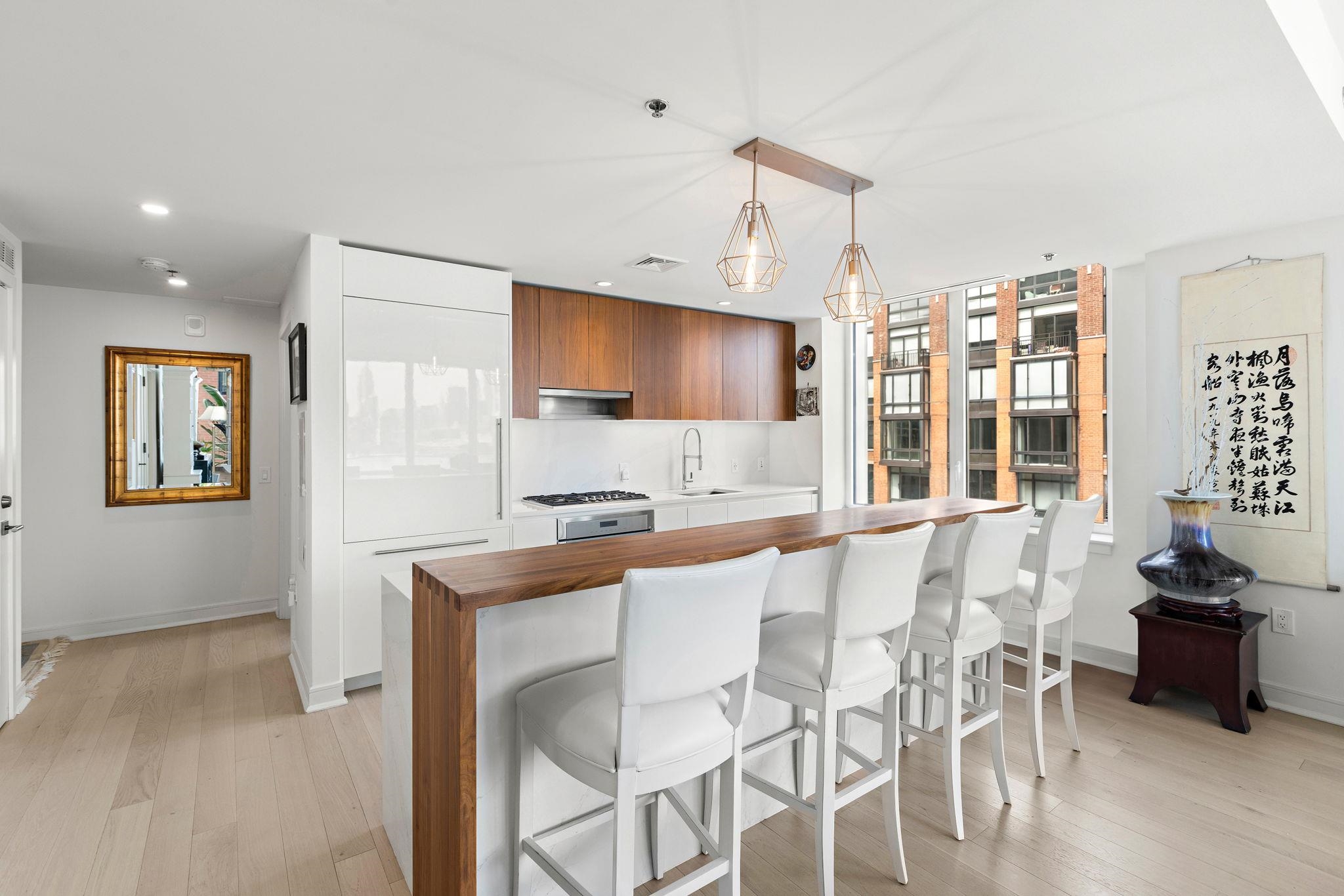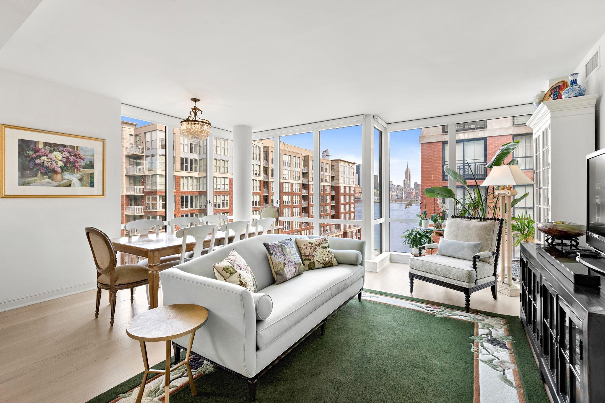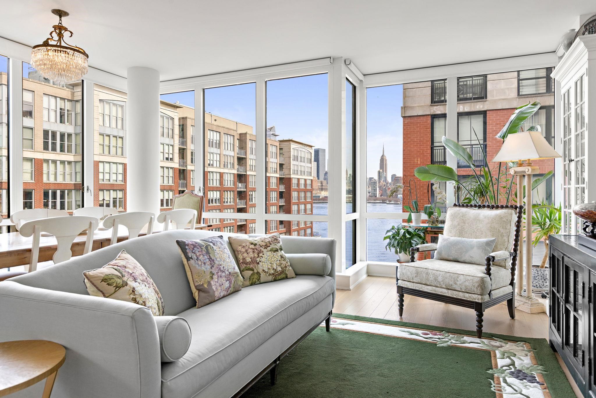 Stunning Northeast corner 1328sqft 2 bed/2 bath with NYC views and parking in the luxury community of 1000 Maxwell, Toll Brothers' newest Hoboken building. The chef's kitchen includes stainless steel appliances, extra-long island, quartz countertops and custom-built modern waterfall walnut cabinetry. The oversized living and dining areas feature floor-to-ceiling windows, showcasing breathtaking NYC/river views. The primary bedroom features a large walk-in closet and spa-like ensuite bathroom. Rounding out this incredible home is a spacious secondary bedroom, additional full bathroom, gleaming hardwood floors, in-unit washer/dryer and 1 licensed parking spot in 1100 Maxwell Ln. The community's luxury amenities include 24/7 concierge and security, a gym, pool, playroom, rooftop deck with BBQ grills, community room, and shuttle service to and from the Path. The building is conveniently located near the NYC Ferry, bus stop, shops, restaurants, and everything that uptown Hoboken has to offer.