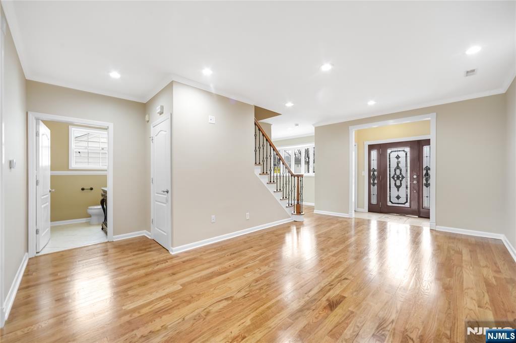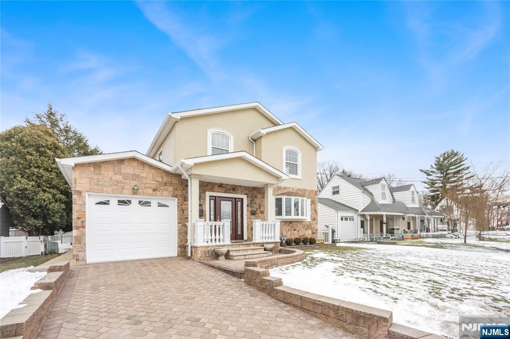 Welcome to this beautifully crafted 4-bedroom, 2.5-bath Colonial on a prestigious block in Clifton, NJ, rebuilt as new construction on the original foundation in 2007 a total of approx 3300sqft of living space and offering a perfect blend of classic elegance and modern comfort. The exterior ft an attractive stucco and stone facade with vinyl siding and oversized windows, gleaming hardwood floors, high ceilings, central air, forced hot air, and energy-efficient solar panels. The 1st floor offers an inviting foyer with 2 coat closets, a home office with bay window, spacious living room, tiled dining room, and an eat-in gourmet kitchen with custom cabinetry, granite countertops, ss appliances, and a large center island, plus 2 French doors leading to a Trex deck ideal for entertaining, a bedroom with two closets, and an elegant powder room. Upstairs ft an expansive primary suite with a huge walk-in closet, private balcony, and luxurious bath with double vanity, Jacuzzi tub, and jetted shower, along with 2 large bedrooms with double closets and a full bath with jetted tub. The full finished basement offers high ceilings and a dedicated laundry room, fully fenced backyard includes a patio, built-in shed, and sprinkler system. Additional highlights include a paver driveway, attached garage, and an unbeatable location minutes to major highways, steps to NYC bus transportation, close to train, shopping, country club, schools, parks, and houses of worship. Truly a must-see home!