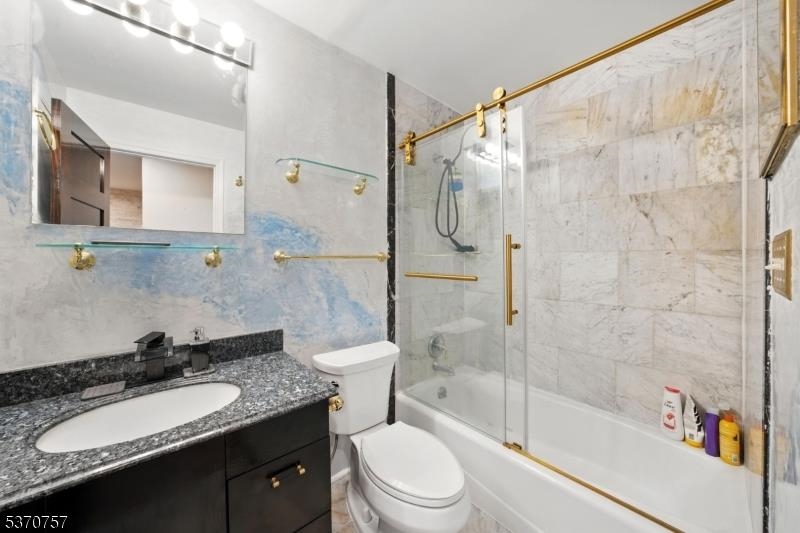 Step into sophisticated city living at Gothic Tower, a pre-war gem walking distance to the Journal Square PATH Station. This expansive 1-bedroom, 1-bath residence offers nearly 1,000 sq ft of modern elegance wrapped in timeless charm.Inside, you'll find beautiful flooring, stunning Venetian plaster marble walls, and natural stone walls that add texture and warmth. A smart voice and phone-enabled LED recessed lighting system lets you set the mood throughout the space. The fully renovated kitchen features translucent acrylic cabinet doors, LED-lit interiors, floating shelves, and new appliances perfect for stylish everyday living.The updated bathroom showcases gold accents throughout. Redwood polyurethane-finished doors, mirrored living room closet, and gold outlets add rich design details throughout.In Gothic Tower, enjoy a 24-hour doorman, fitness center, courtyard, and laundry room plus unbeatable access to St. Peter's University, local cafes, parks, and NYC via PATH.