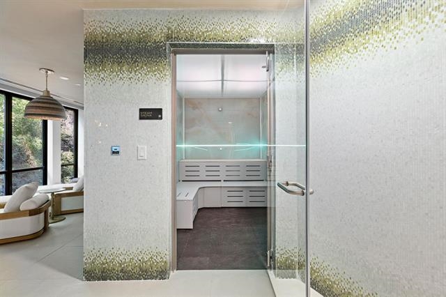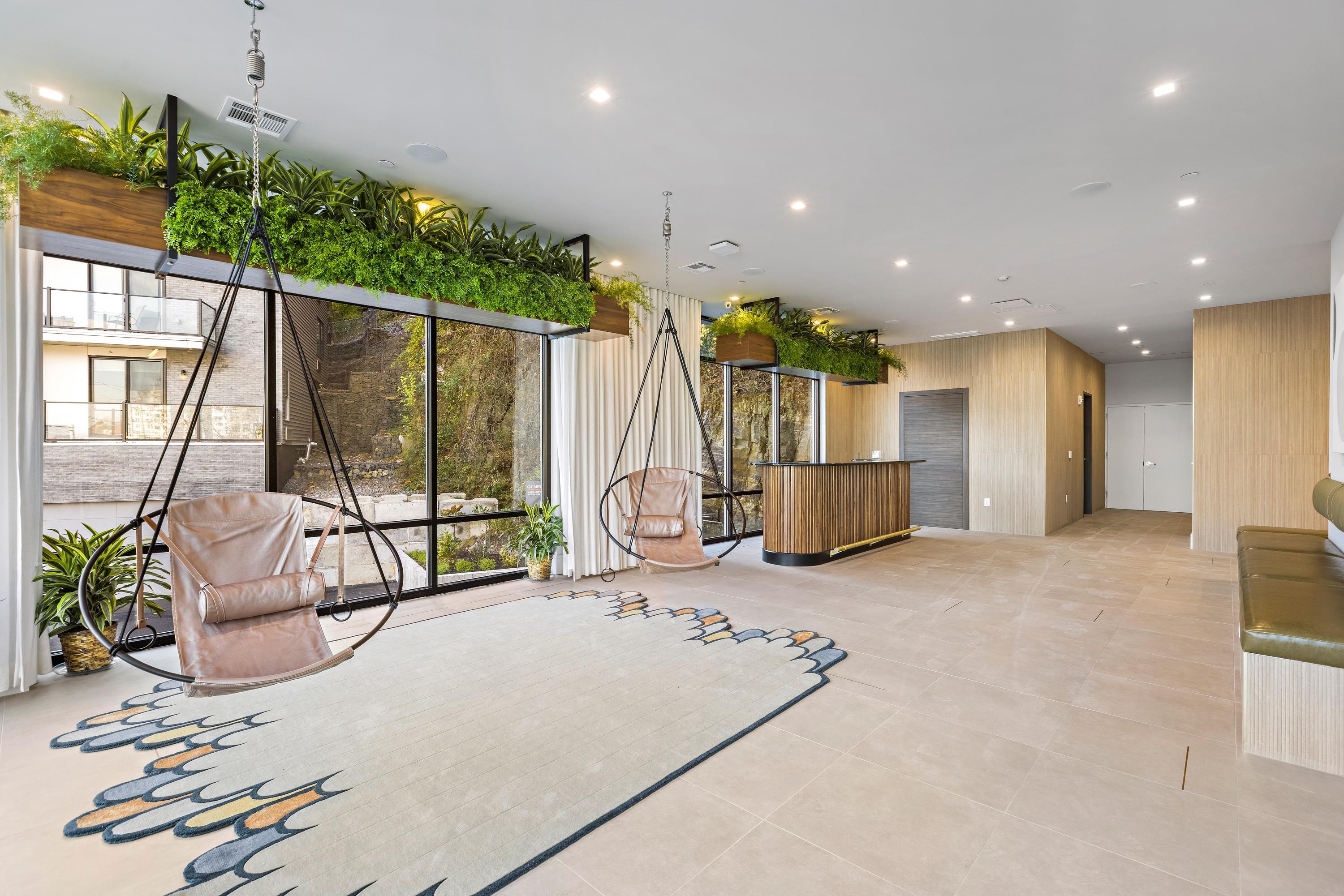 A rare 3-bedroom equivalent residence situated between Edgewater and Weehawken. Each of Solaia's spacious east-facing residences features expansive, double-pane windows, dark espresso flooring, custom closets and living rooms with gas fireplaces. Chef-inspired kitchens boast custom Italian cabinetry, SapienStone countertops with waterfall islands, and stainless steel GE Café Series smart appliances. En-suite five-fixture baths flaunt Seedwood tile feature walls and freestanding tubs for a spa-like experience. Smart lights, thermostats, and Latch keyless entry, along with an in-home, full-size washer and dryer, make life here as convenient as possible. The 10,000 sq. ft. of amenities include a three-story wellness center with a yoga room, TRX equipment, boxing space, a steam room, sauna, rainfall shower, a Himalayan salt inhalation therapy room with infrared relaxation beds, a jetted vitality tub, and a dressing room with personalized lockers. There's also a cliffside roof deck with a custom outdoor demonstration kitchen, BBQs, dining areas, firepits, and lounge seating, along with a co-working space, resident lounge with fireplace, billiards and ping pong, a demonstration and event space, and a dog run. Solaia is located in North Bergen, just moments away from the George Washington Bridge, Lincoln Tunnel, Hudson Bergen Light Rail, and NY Waterway Port Imperial Ferry Terminal, as well as near an abundance of shopping, grocery and nearby attractions. One parking space and one personal gym locker is included.