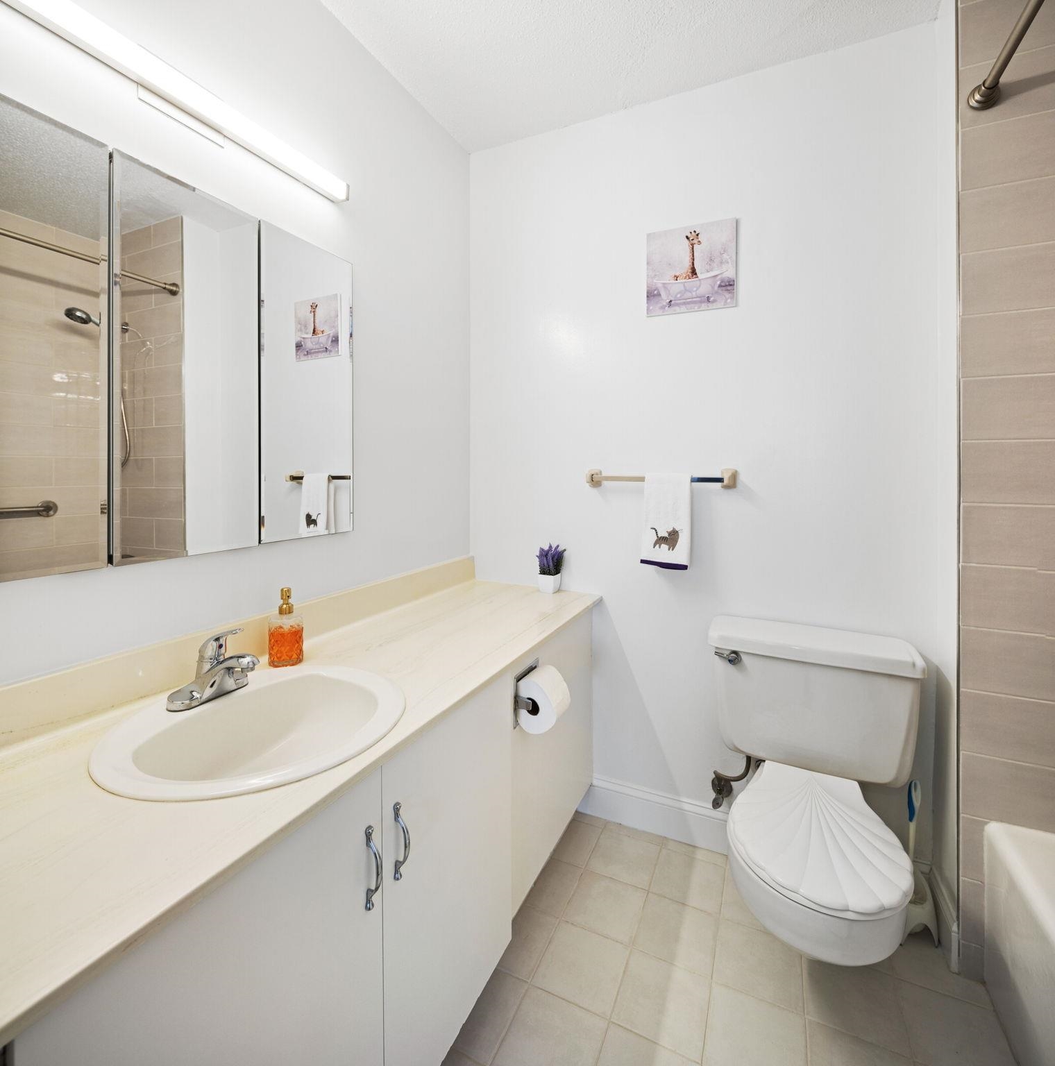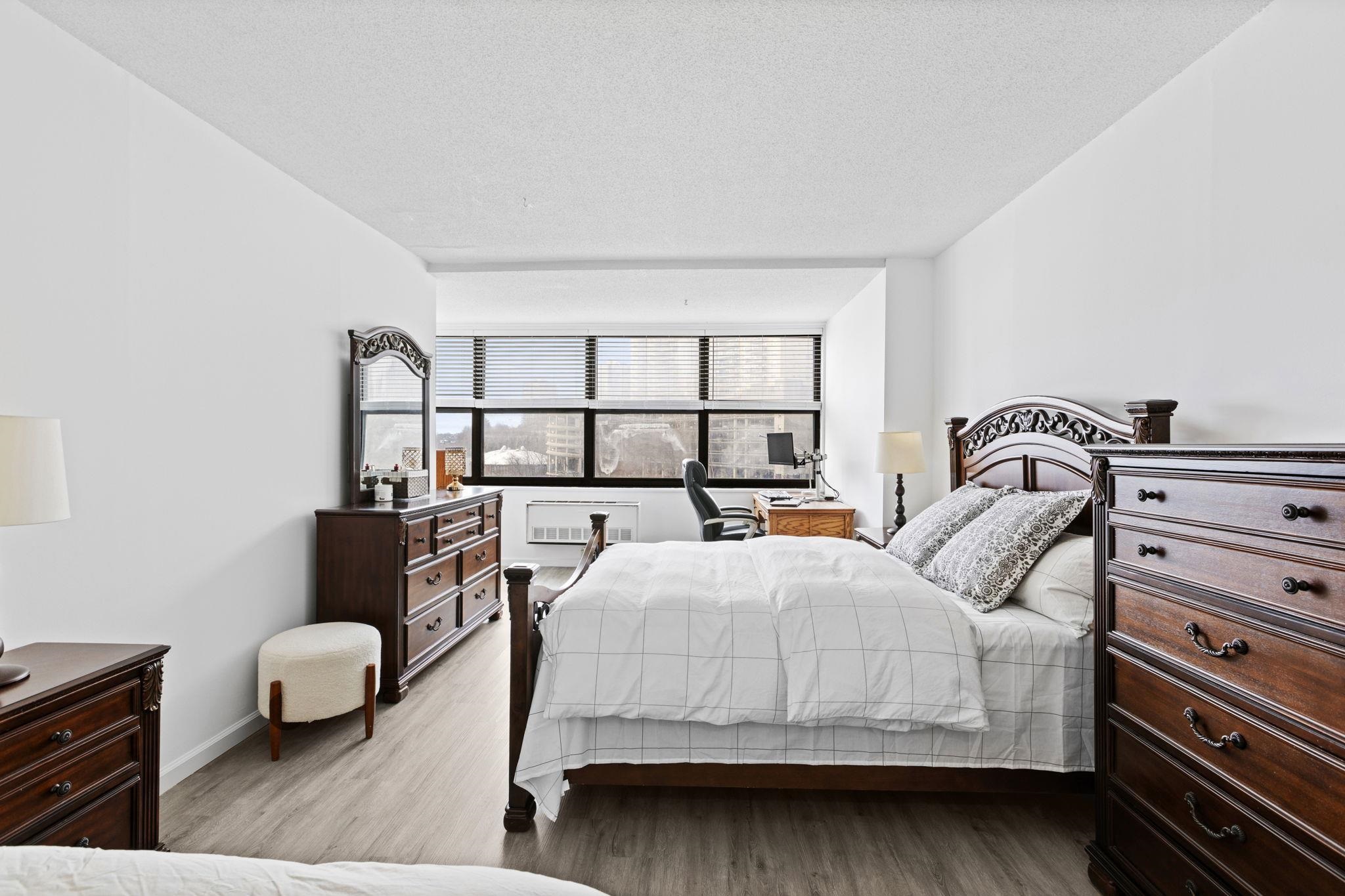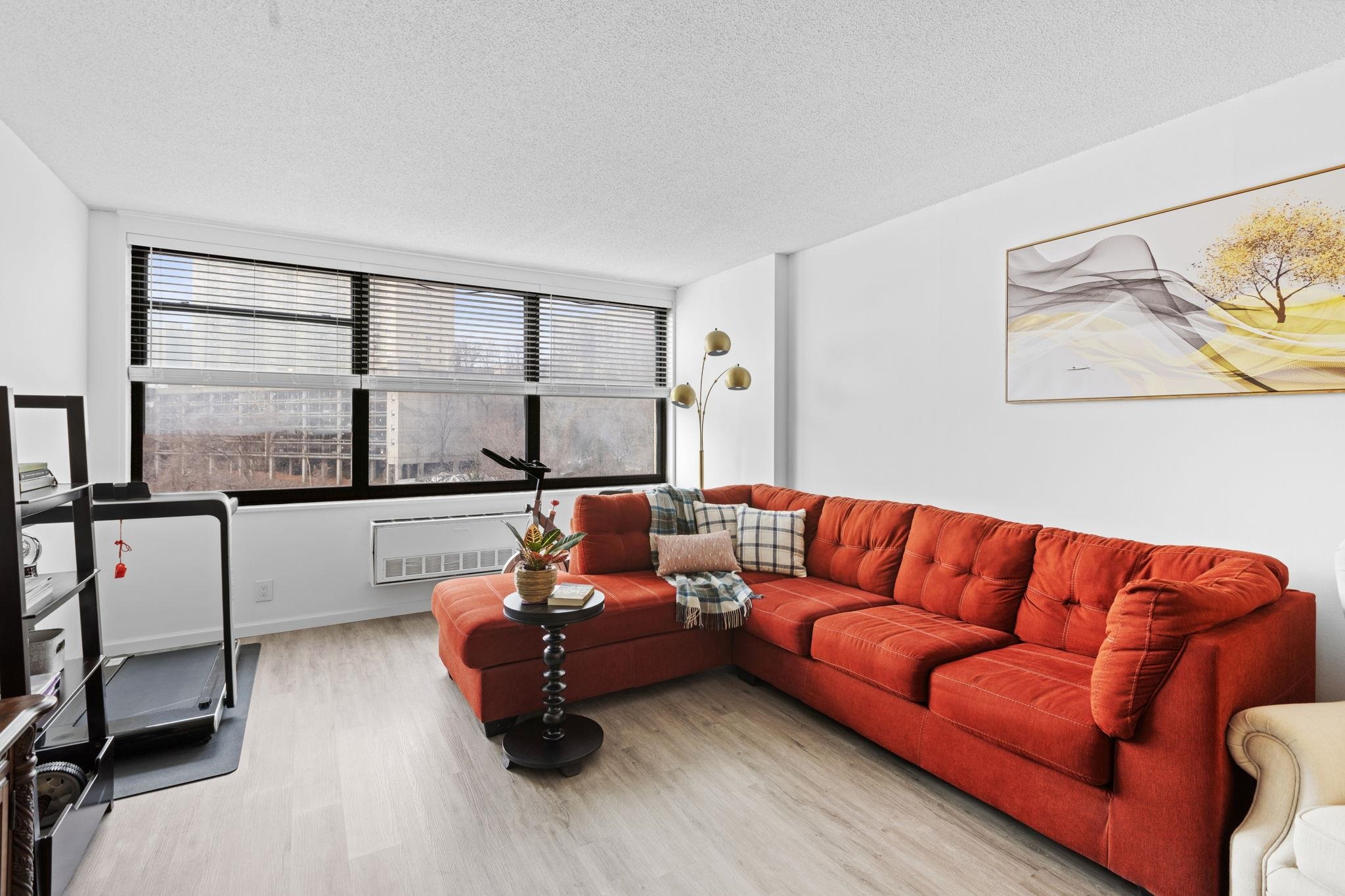 Experience luxurious living in this elegant 1-bedroom, 1.5 bathroom residence at The Galaxy along the Hudson River. Spanning 932 square feet, this chic home has been completely remodeled in 2023, boasting clean lines and a contemporary design. As you step inside, natural light floods the open layout with south/east facing windows, creating a warm and inviting ambiance. The kitchen features modern appliances and an open concept, while the bedroom and both bathrooms exude contemporary sophistication. A walk-in closet completes the picture. Revel in spectacular views of NYC and the Hudson River from your windows. Nestled just 2.5 miles north of the Lincoln Tunnel and 5 miles south of the George Washington Bridge, The Galaxy offers effortless commuting options, including easy access to buses and scenic ferry rides into Manhattan. Upgrade your lifestyle with a 24-hour concierge, access to on-site Health & Wellness Spa, state-of-the-art gym equipped with Life Fitness gear, Pelotons, and free weights. Enjoy newly renovated indoor and outdoor pools, jacuzzi, saunas, steam rooms, game room, children's room, meeting rooms, and a club room with a kitchen. Take advantage of tennis and pickleball courts, and unwind in the .75-acre elevated, zen-like landscaped private park, perfect for quiet enjoyment and picnics. The attached mini-mall offers an array of conveniences, including restaurants, a grocery store, ATM, dry cleaner, pharmacy, dentist, doctors, and day care. Nearby, you'll find an abundance of restaurants, as well as a 167-acre park with a lake, flea market, and seasonal farmer's market just 10 blocks away. The Galaxy welcomes up to 2 pets per apartment, and a 2nd indoor parking spot is available for $120 per month per car. Don't miss the opportunity to live in luxury at The Galaxy.