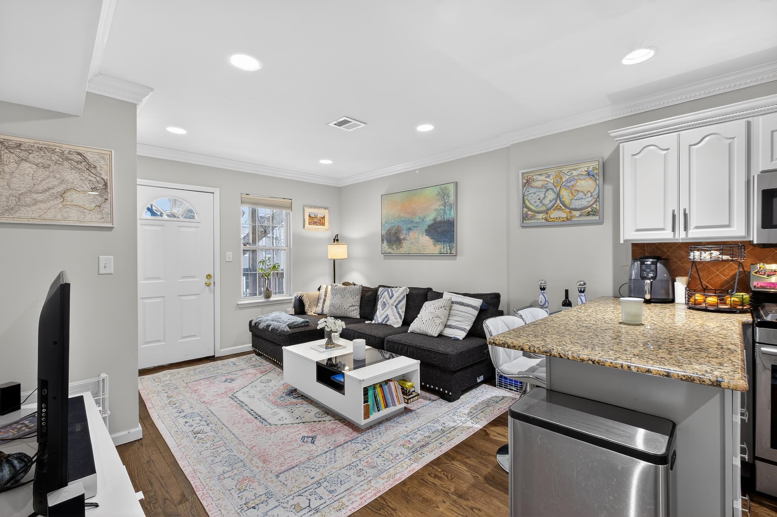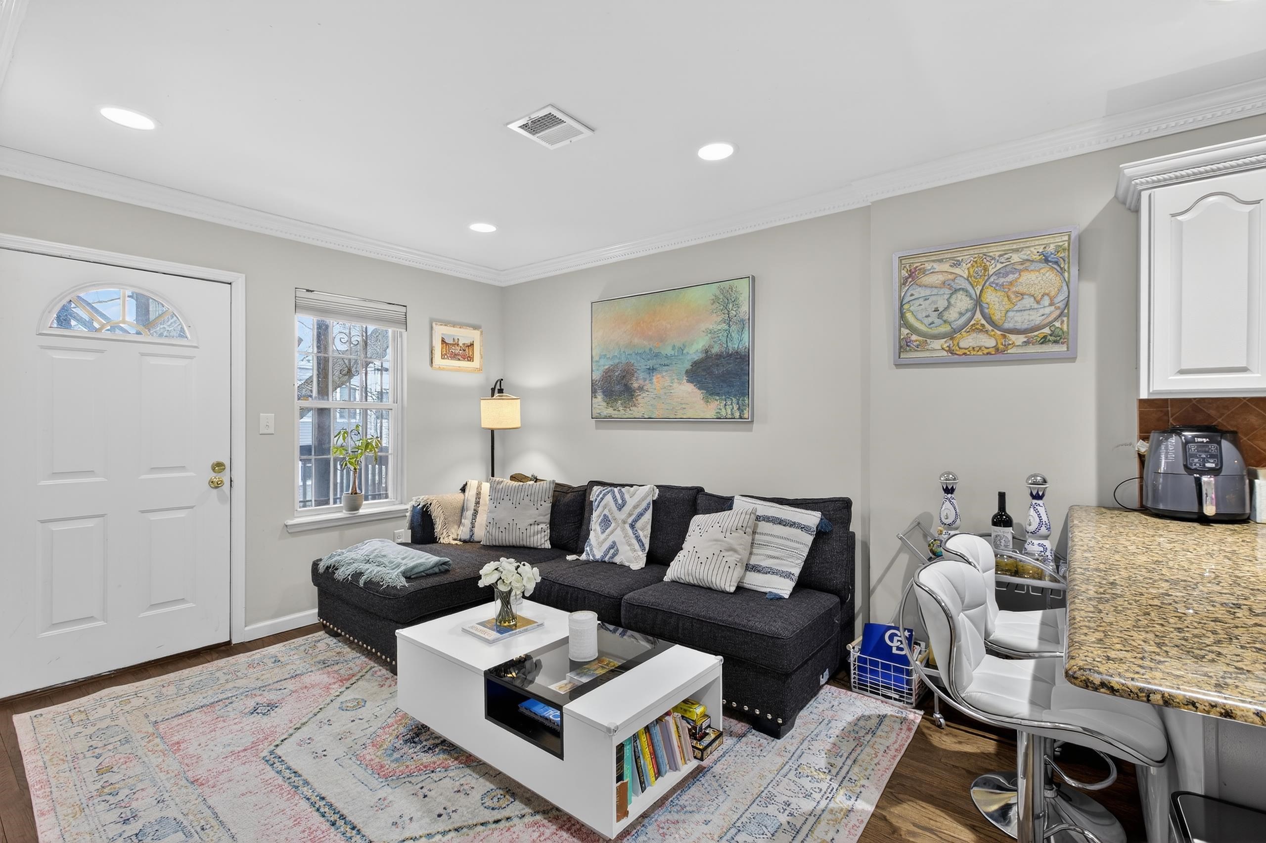 Welcome home to this bright and modern 2 bed, 1 bath condo offering 770+ sq ft of well designed living space in a prime Jersey City Heights location. This sun filled home features gleaming hardwood floors, large windows, and an open-concept living and dining area perfect for everyday living or entertaining. Step outside to your private ~100 sq ft tiled floor deck, ideal for morning coffee, outdoor dining, or relaxing with fresh air. The modern kitchen is equipped with stainless steel appliances, breakfast bar and ample cabinetry, offering both functionality and sleek design. Both bedrooms are well-sized, while the bathroom features elegant tile work and generous vanity space. Additional highlights include central AC, dishwasher, shared washer/dryer in the basement, private storage, and a charming brick building. Located just off Palisade Ave with a bus stop to Manhattan nearby, and moments from neighborhood favorites like Prato Bakery, Veloce Sandwiches, and the new Abake Café 2 blocks away, plus parks, shopping, and restaurants. Perfect for commuters and anyone looking to enjoy the best of Jersey City Heights living.