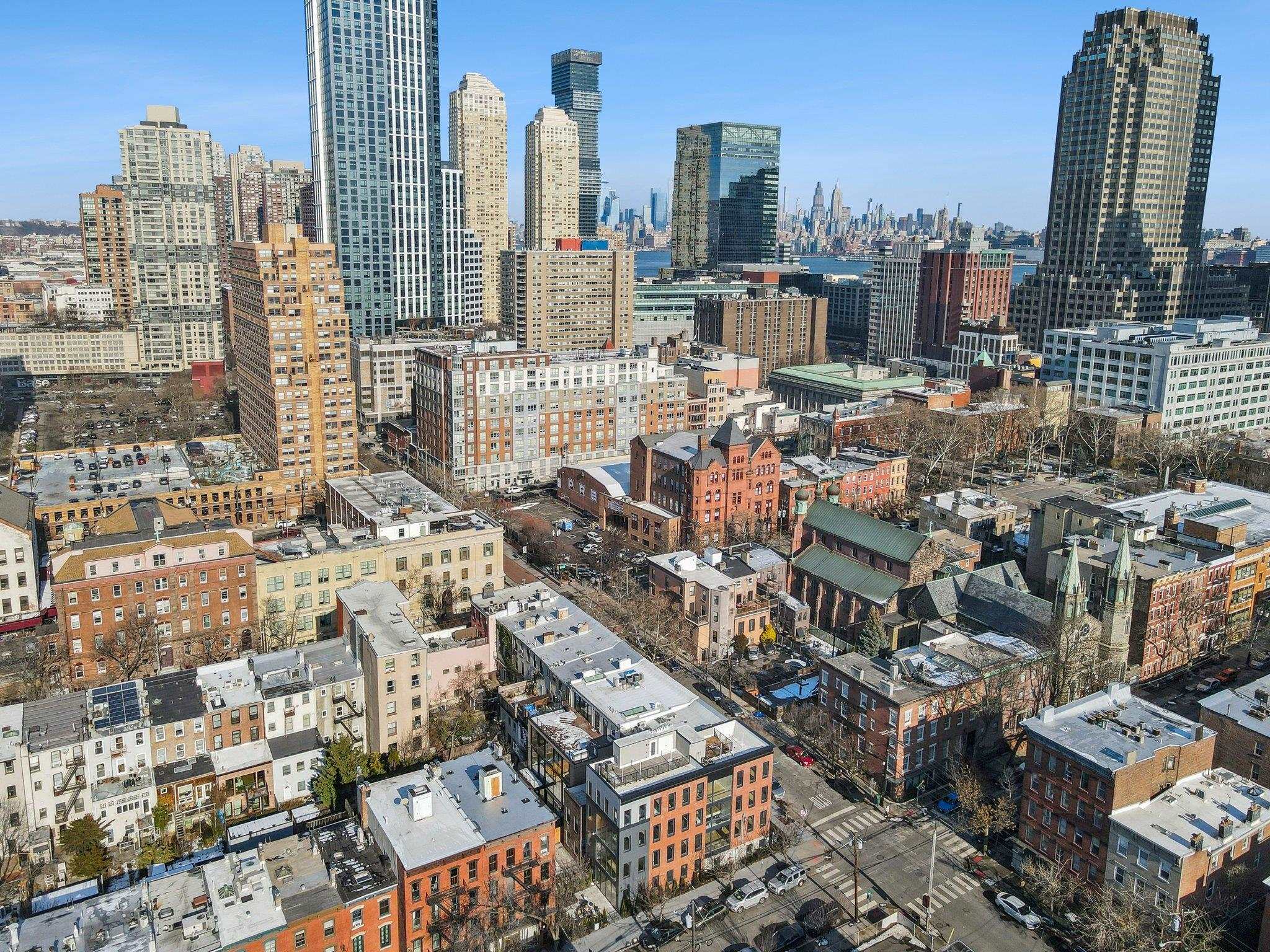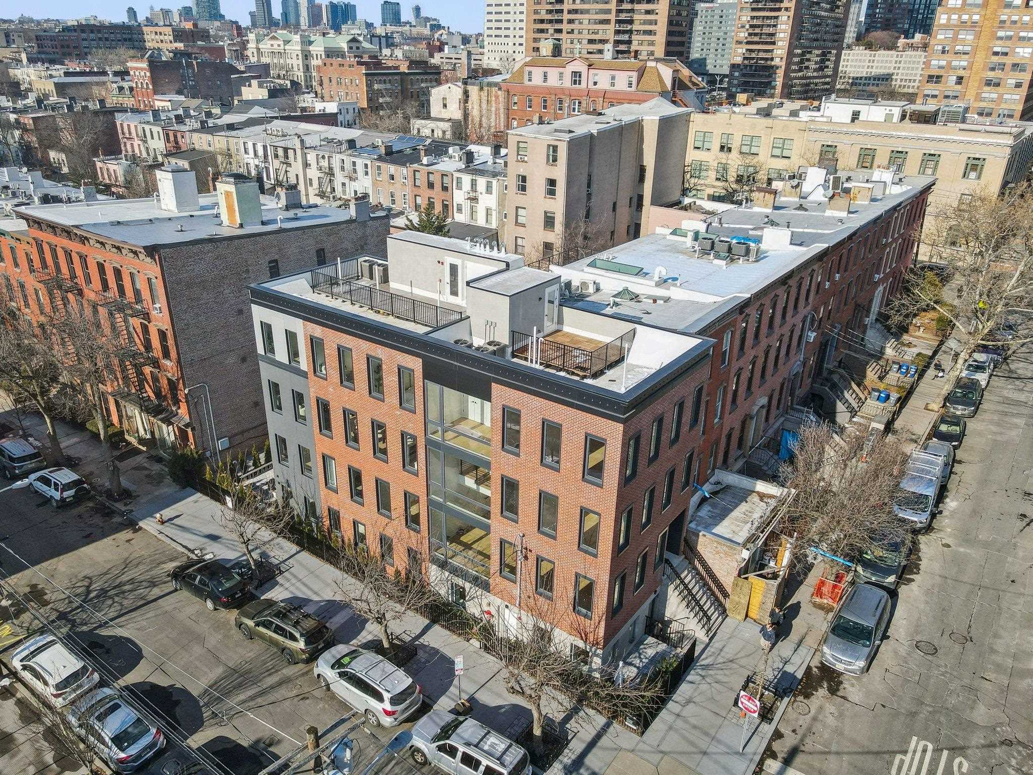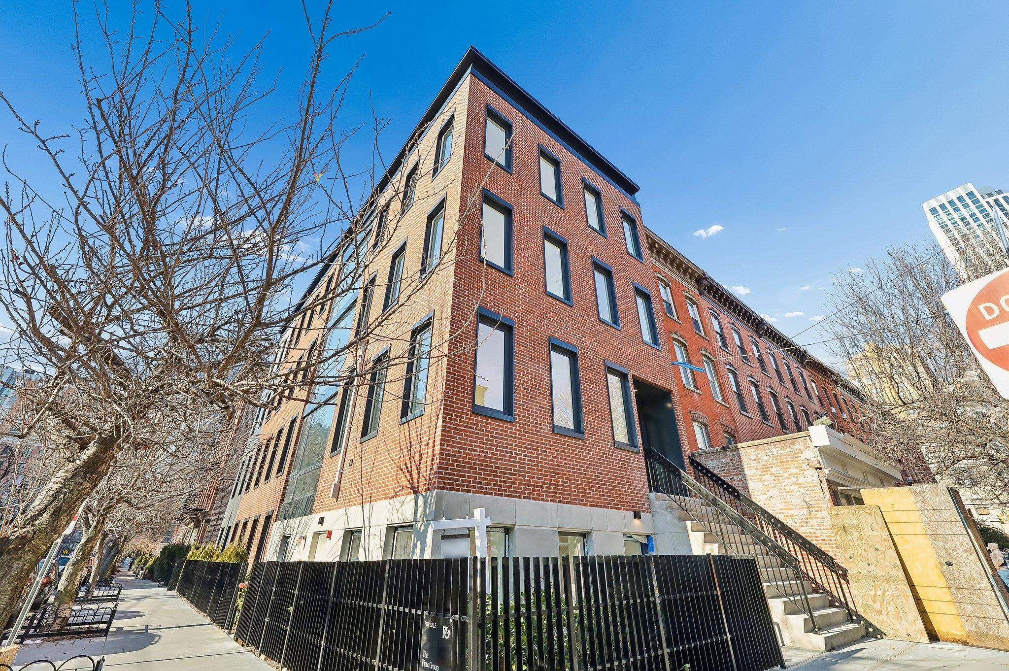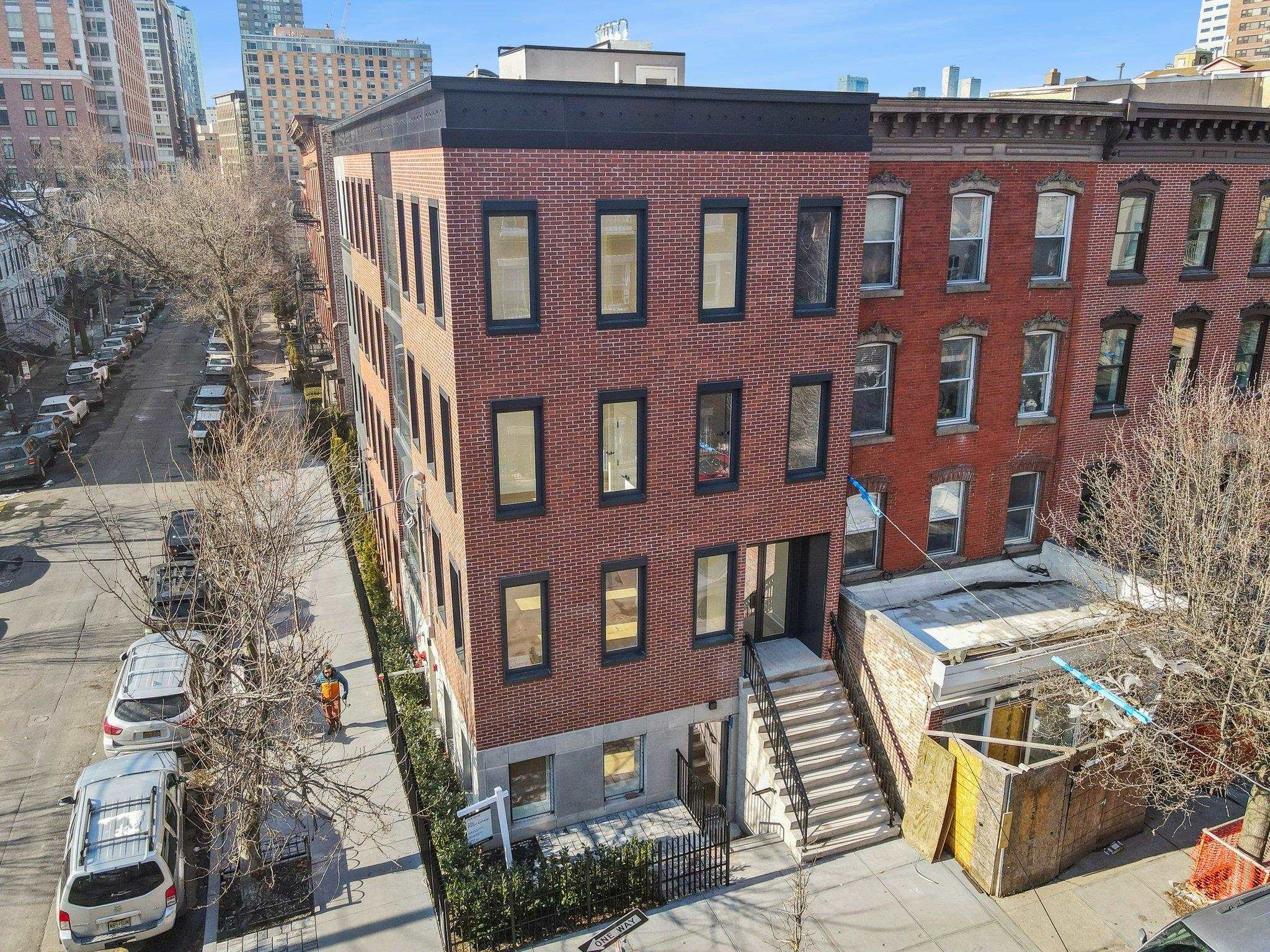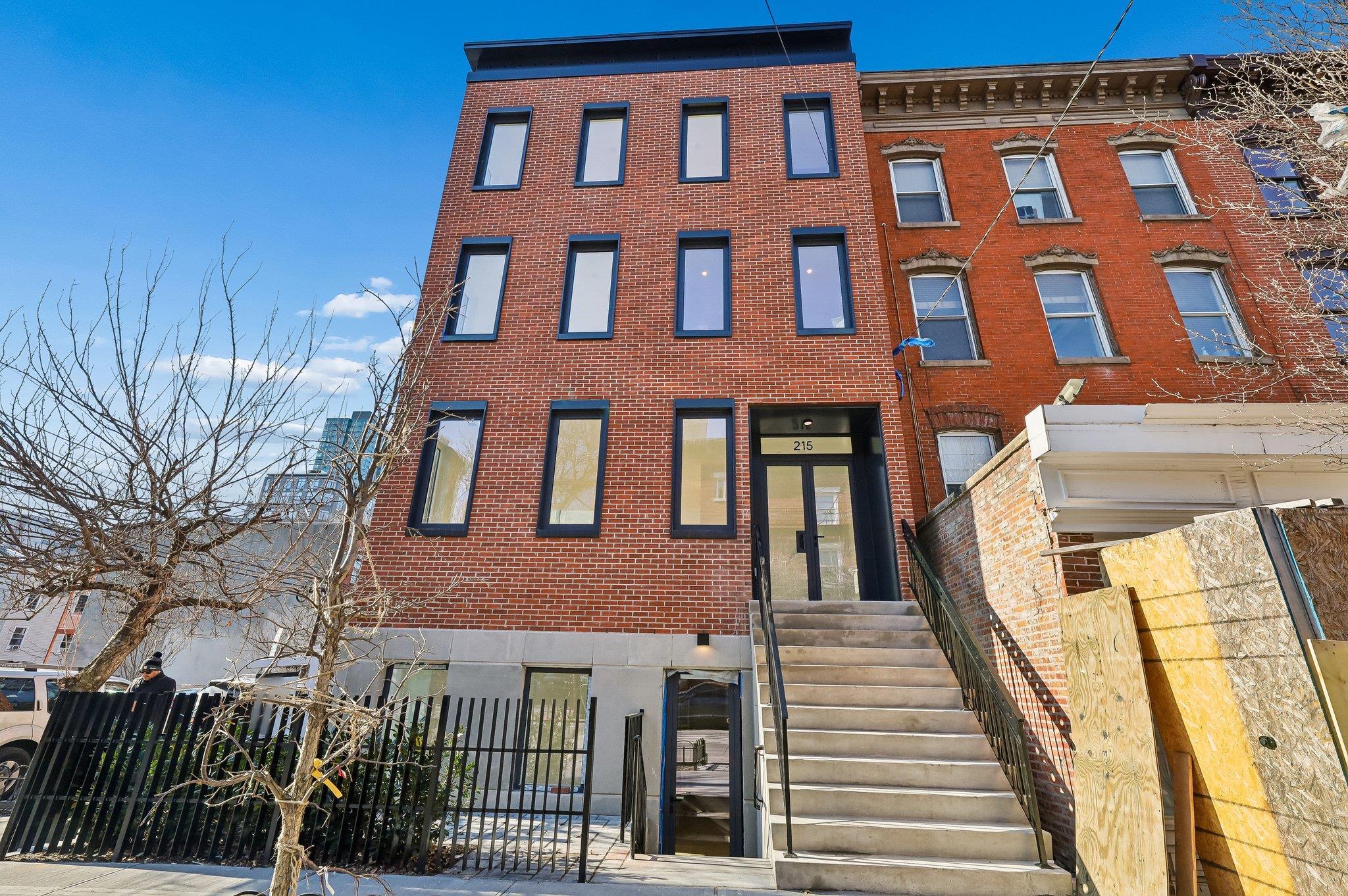 Sprawling Penthouse Duplex with private sky terrace and garage parking in the heart of Paulus Hook! Penthouse C at 215 Warren is a brand NEW CONSTRUCTION, 3 bedroom, 3 full bath stunner offers 2,080 sq. feet of wonderful livability. A gated and private paver walkway leads to the front door of your individual residence. Enter to massive, natural light-filled space, high ceilings, wide plank hardwood floors, architectural lighting, and a full glass curtain wall showcasing the open concept living/dining area! The professional grade kitchen is any chef's dream, with a full suite of paneled Thermador appliances, vented XO range hood, dual tone cabinetry, waterfall edge carrara quartz island, backspash, and counters, and tremendous storage space. A full bath on this living level is perfect for all family and guests alike. Upstairs 3 bedrooms are embraced in light with open S/W exposures over Paulus Hook, while the corner primary suite featuring a custom, walk-in, California closet, and spectacular spa-bath with floor-to-ceiling stone, floating dual sink vanity, and frameless glass shower. The laundry room is located on this level for convenience and features a full-sized, vented W/D. A wide, interior staircase leads to your private sky terrace with panoramic 360 degree views, maintenace free decking, and huge storage closet for all your outdoor toys. The views up here are even more magical and perfect for alfresco dining, reclining, and recharging. Two zone central HVAC, Navien tankless hot water systems, extensive soundproofing, and ultra-luxurious fit and finishes complete the picture. Want more?.....One garage parking space included with purchase. Truly private Brownstone style living with the advantages of new construction quality, and condo ownership ease! Outside your front door awaits 2 PATH stations, NY Waterway ferry, the renowned PS16/Bradford school, fabulous restaurants, Whole Foods Market, shopping, and waterfront promenade this historic district is known for.