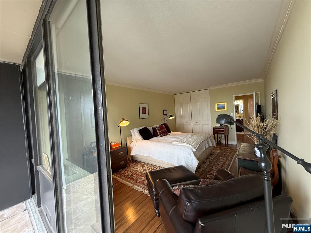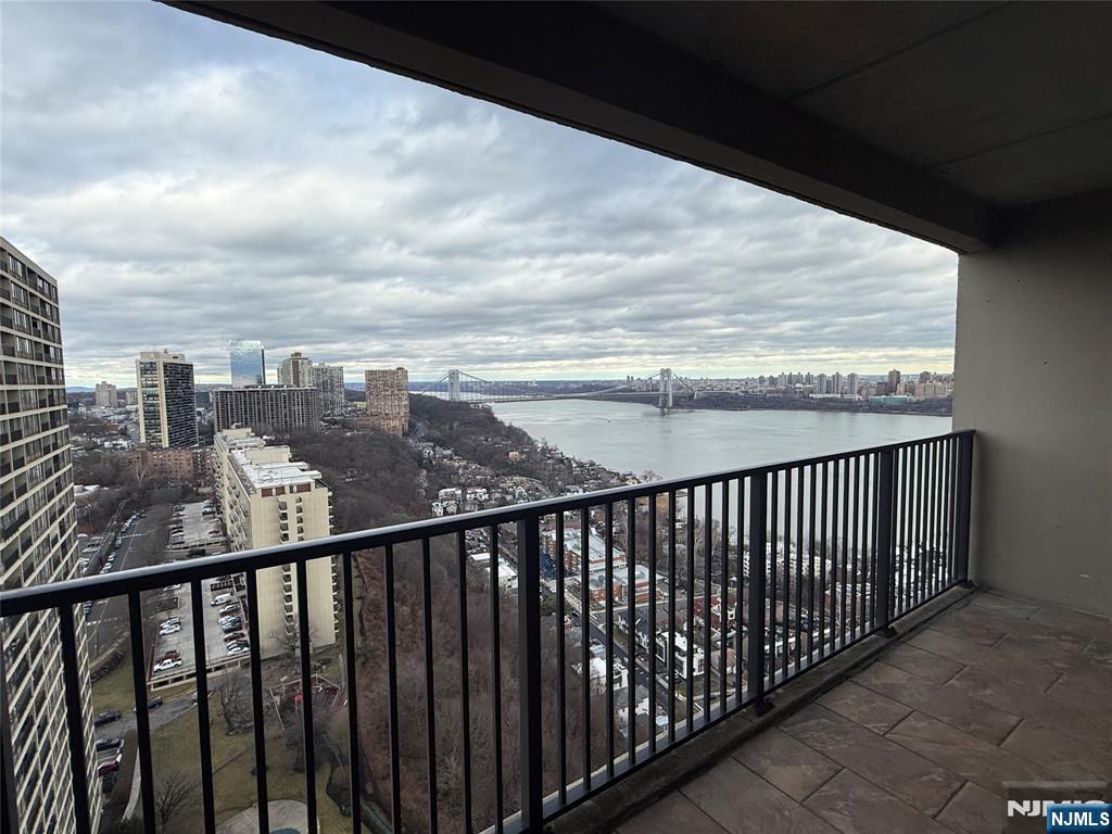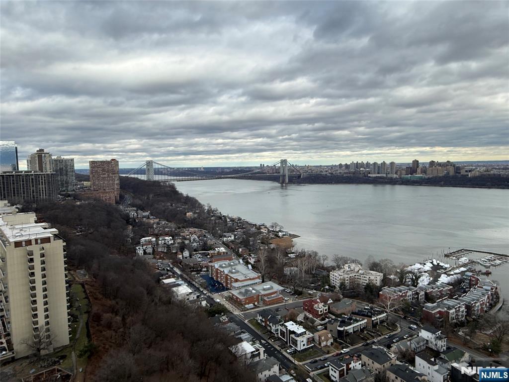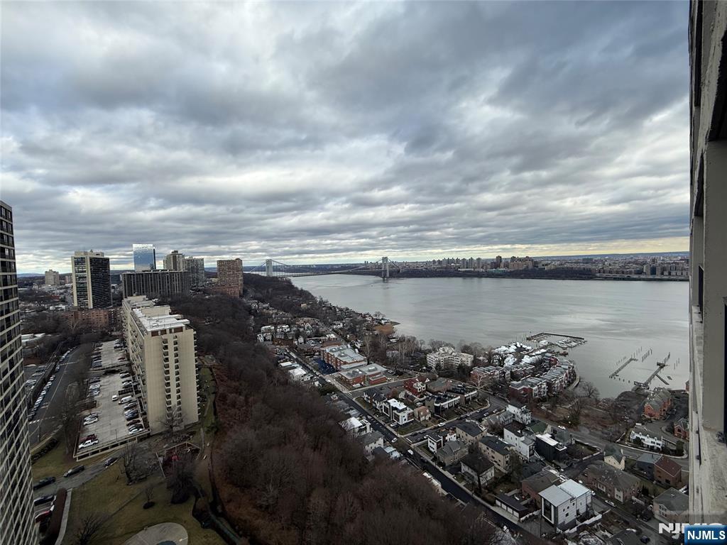 Beautifully maintained high-floor 1-bedroom, 1-bath residence at Horizon House Towers offering sweeping views of the Hudson River and the George Washington Bridge. This spacious home features a desirable layout with two terraces—one off the living/dining area and another off the bedroom—providing exceptional indoor-outdoor living and breathtaking skyline vistas. Unit 2504 offers an updated kitchen with granite countertops, stainless steel appliances, and opens naturally to the expansive living and dining space. Wood floors, crown molding, updated lighting, and generous proportions create a comfortable yet elegant atmosphere throughout. The oversized bedroom includes excellent closet space, a dressing area, and access to another private terrace. The renovated bathroom features a modern vanity and a glass-enclosed walk-in shower. Horizon House provides full-service living with 24-hour doorman and security, park-like grounds, outdoor swimming pools, tennis and pickleball courts, playground, fitness center, and an on-site convenience store. Monthly maintenance includes all utilities, underlying mortgage and taxes, cable TV, and internet, offering truly worry-free living. Ideally located near shopping, dining, libraries, major highways, and public transportation. A rare opportunity to own a high-floor home with iconic river and bridge views in one of Fort Lee’s most sought-after co-op communities.