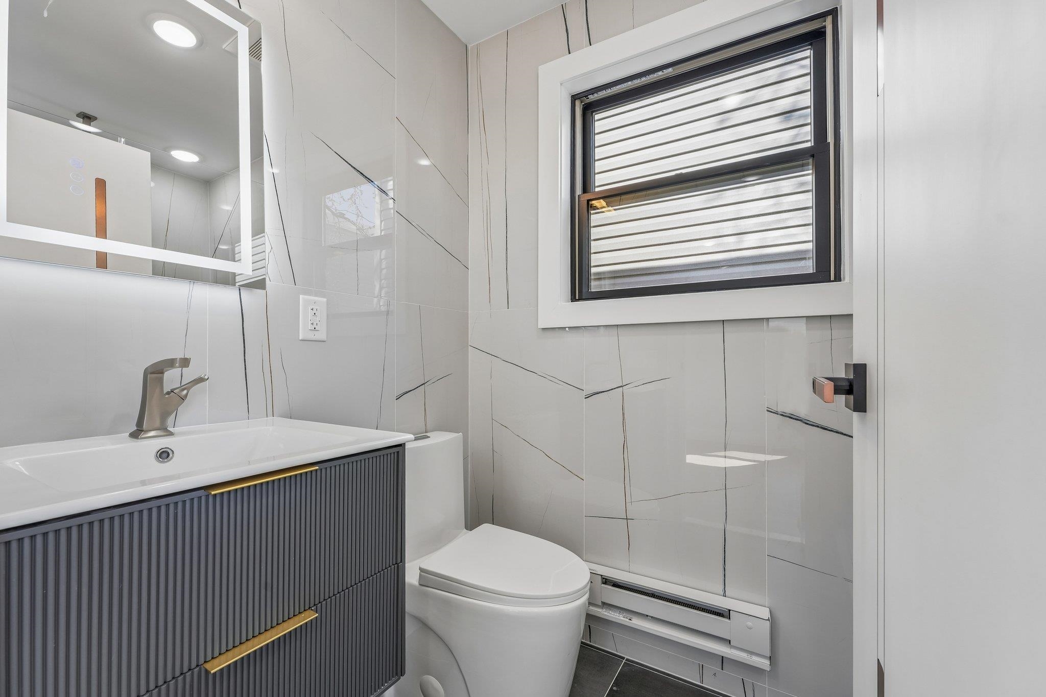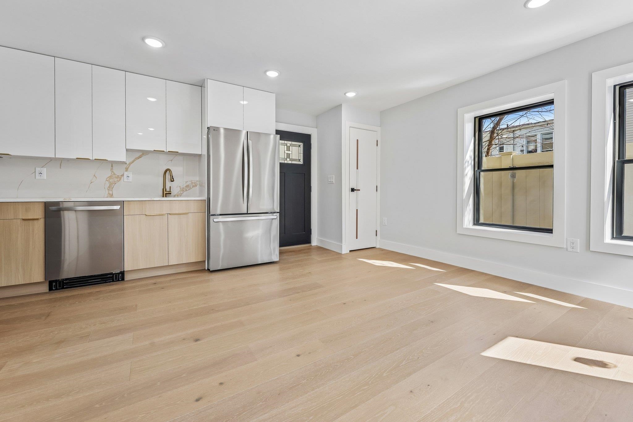 A truly rare offering — a fully detached, new construction carriage house residence. Delivering the privacy and independence of a single-family home, this distinctive one-bedroom duplex condominium is a standout opportunity rarely available in new construction. Entered through its own private entrance, the residence unfolds into a light-filled main level defined by wide-plank hardwood flooring, and oversized Andersen windows that create an airy, loft-like feel. The open living and dining space flows seamlessly into a sleek designer kitchen featuring custom cabinetry, quartz countertops, and a full suite of stainless steel appliances including microwave and dishwasher — ideal for both everyday living and effortless entertaining. Upstairs, the primary suite retreat offers a generous walk-in closet and a beautifully appointed bathroom finished with dramatic floor-to-ceiling tilework, creating a spa-inspired atmosphere. Additional features include in-unit washer and dryer, energy-efficient mini-split heating and cooling systems, and a 10-year new construction builder’s warranty. Offering the rare combination of detached living, modern design, and exceptional flexibility, this carriage house residence is perfectly suited for a primary home, private work-from-home retreat, stylish guest residence, or smart investment property.