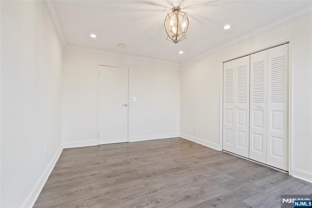 Welcome to this bright and updated 1-bedroom, 1-bath condo located on the 3rd floor of a well-maintained, professionally managed building along Kennedy Boulevard. This approximately 650 sq ft residence offers a functional layout, modern finishes, and excellent commuter convenience. The unit features wide-plank wood-look flooring throughout the living and bedroom areas, complemented by recessed lighting and crown molding. The open living/dining area provides comfortable space for everyday living and entertaining. The updated kitchen includes white shaker cabinetry, granite countertops, subway tile backsplash, and stainless steel appliances, including a gas range and built-in microwave. A peninsula counter offers additional prep space and casual seating. The modern bathroom is finished with custom tile flooring, a fully tiled shower with decorative accent tile, a sleek vanity, and updated fixtures. The bedroom is generously sized and features double closets and great natural light. Additional highlights include in-unit washer, on-site laundry room, and heat and hot water included in the maintenance, offering added value and predictable monthly expenses. Ideally located along the Kennedy Boulevard corridor, close to shopping, dining, parks, major highways, and convenient NYC transportation, this move-in-ready home is perfect for commuters or owner-occupants seeking comfort and accessibility.
