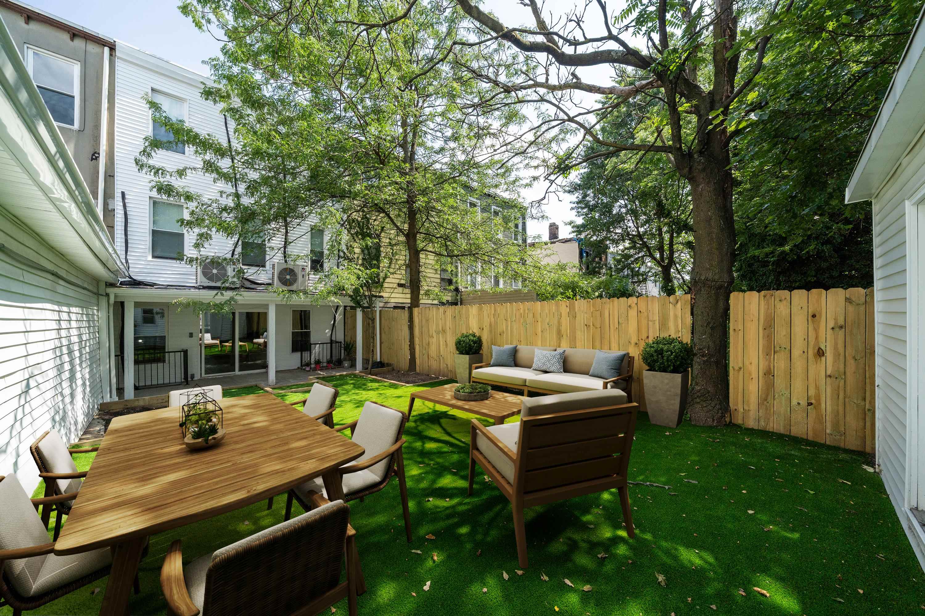 Backyard bliss meets bonus space—and built-in rental income—in this two-family home with alfresco elegance and versatile design. Unit 1, a 2-story, 3 bed, 2.5 bath residence with a private backyard and detached flex space, is move-in ready for an owner-occupant or new tenant. Unit 2 is currently leased through November 25 (w/option to renew), offering immediate income from day one. Both units are finished with clean design and modern upgrades. Enter into an open-concept living area dressed in light-oak hardwoods, crisp white molding, and a soothing sage accent wall, the kitchen finishes include an eat-in quartz island, white shaker cabinetry, a tile backsplash, stainless appliances, and matte-black hardware to bring modern refinement. Slide open the glass doors downstairs to the beautifully finished backyard including a shaded patio, emerald lawn, and a detached bonus retreat ready to become a man cave, she shed, studio, or start-up HQ—owner's choice! Three tranquil bedrooms offer plenty of rest and closet space. Meanwhile, bathrooms bring added eloquence with finishes like a rainhead shower with a built-in seat, sizable vanities, and matte black fixtures to carry throughout the home. Less than a block from Berry Lane Park and moments to the Bergen-Hudson Light Rail for quick PATH or ferry links into Manhattan, this blossoming pocket of Jersey City is buzzing with new cafés and great community. Bergen Lafayette is just moments from downtown Jersey City, while bringing its very own boutique vibe with beautiful parks and small businesses throughout.