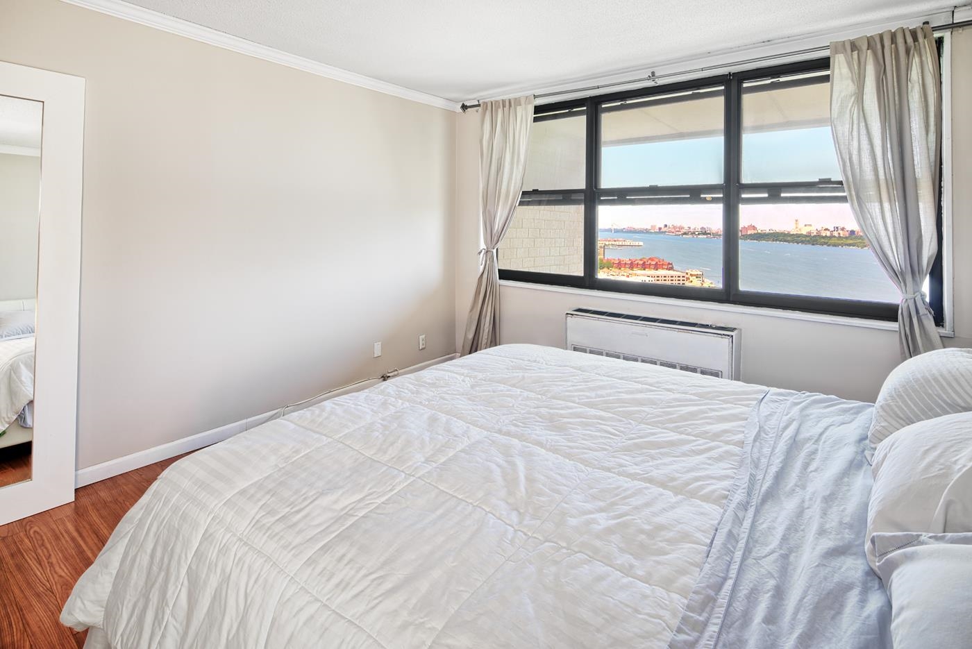 Step into Beauty & Forever NYC Skyline Views over the River in this 1 Bedroom 1.5 Bath Luxury condo. Discover exciting front row views of the Iconic NYC skyline that sparkle and shimmer everywhere throughout the sunny & spacious floor-plan. The tastefully renovated modern flair condo welcomes you home. Offering 850+-sq ft of Luxury Living with a Sunny Eastern exposure, enjoy every morning sunrise. The popular layout features a pass through Modern Kitchen, SS appliances & tiled flooring. A guest half bathroom is conveniently positioned at the entrance foyer. Travel to the Bedroom where dazzling Iconic NYC Skyline views are yours, an ensuite full bath & walk-in-closet offer comfort & tranquility. Newer designer porcelain tiled flooring in the bedroom is an attractive upgrade (not in displayed in photo). Surrounded by urban convenience! HOA includes Amenities Galore & All UTILITIES; Heat; Electric; A/C; Water; Gas+Amenities: 24hr Concierge; New In/outdoor-heated Pools; Grills, Fitness ctr; 2 Lighted Tennis+2 New-Pickleball Courts.; Resident's Lounge; Playroom; Sauna. Gardened Rooftop. Steps away Galaxy shopping mall; serving all your needs. Appleview early learning center, daycare. Pet's welcome! Discover the Galaxy Towers Luxury Condo located on Desirable BLVD East, A 5-mile Hassle free Commute to NYC is right outside your Door! Don't Miss Out!