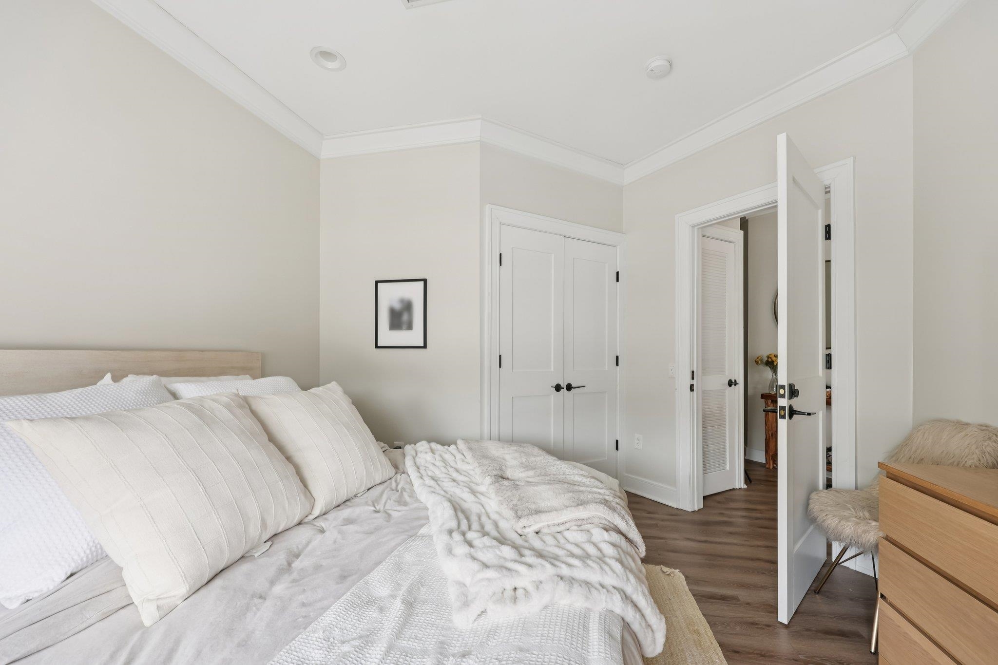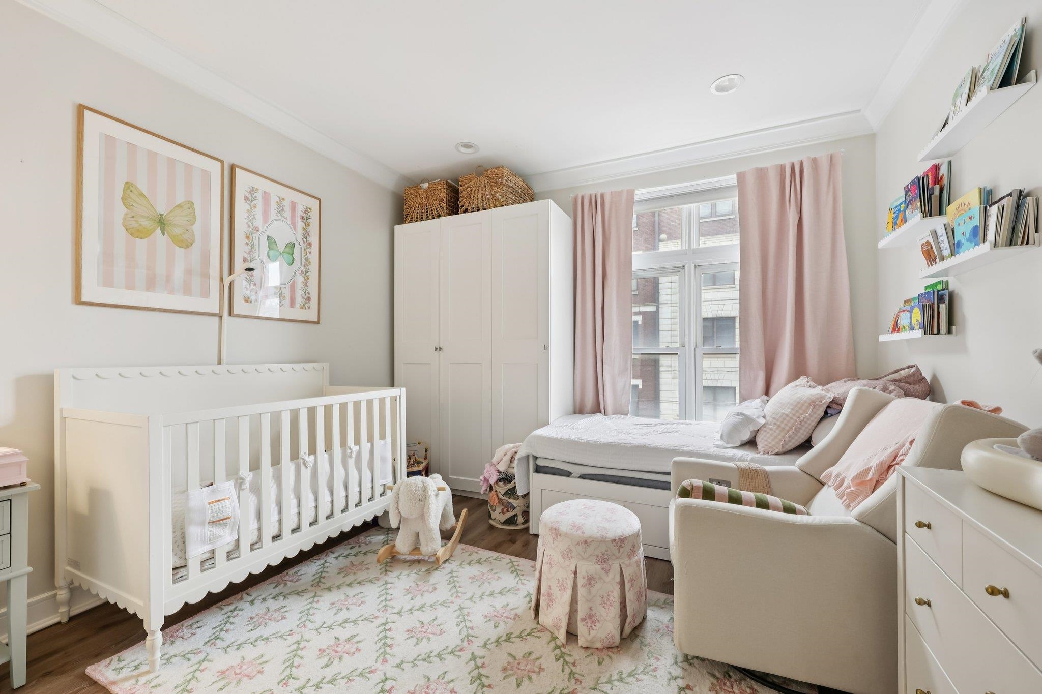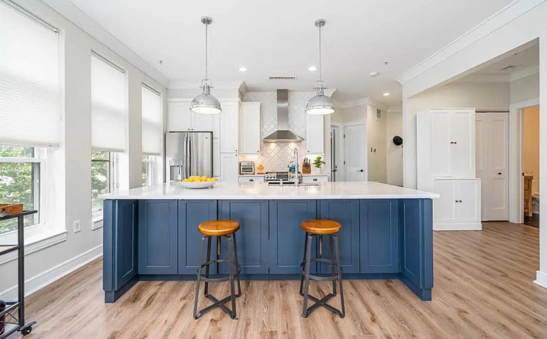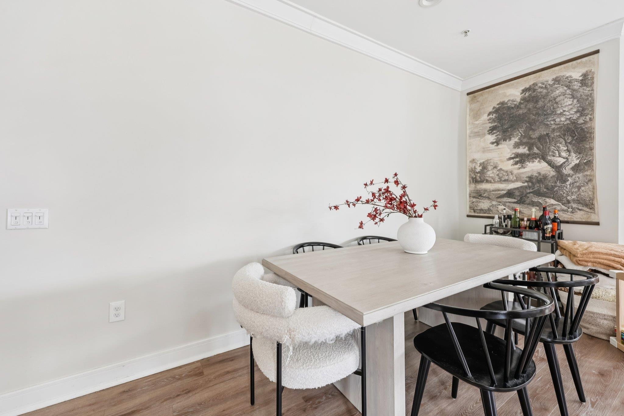 Fully renovated in 2019/20, this exceptional 1,161 SF Upper Grand home is the largest two-bedroom, two-bathroom floor plan in the building. This premiere residence features 17 south- and west-facing windows overlooking Hoboken’s largest park and is filled with all-day sun and beautiful sunsets. The interior showcases premium custom millwork, including 7-foot solid wood doors, modern crown and baseboard moldings, and indestructible NuWood wide-plank flooring. The custom kitchen is a standout, boasting a massive 10-foot island with dual-sided storage, stainless steel appliances, Shaker-style cabinetry with a pantry, quartz countertops, and stylish pendant lighting. The primary suite offers a tranquil escape with a luxurious bathroom featuring timeless stone details. A fun and fashionable second bathroom features a deep soaking tub, custom vanity, and contemporary tilework. Additional upgrades include a recently replaced HVAC system with a Nest thermostat, a water heater, and an LG Laundry Tower. This home purchase includes a full-size garage parking spot (#80). 1300 Grand Street (also known as 1301 Adams Street) is a concrete-and-steel constructed building featuring two lobbies, two elevators, a fitness center, a beautiful courtyard, and a strong HOA. Residents enjoy easy access to the bus, ferry, highways, and Hoboken’s free HOP shuttle to the PATH. The vibrant neighborhood features playgrounds, Trader Joe’s, a seasonal farmer’s market, a dog park, and numerous shops and restaurants. The North End of the Mile Square is where everything is happening.