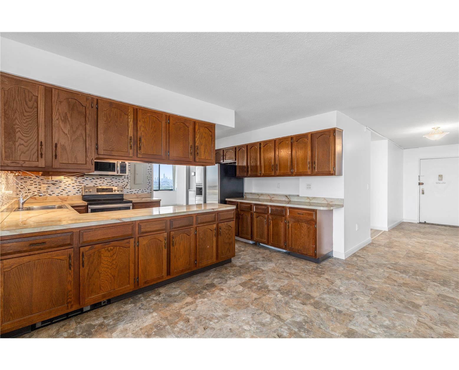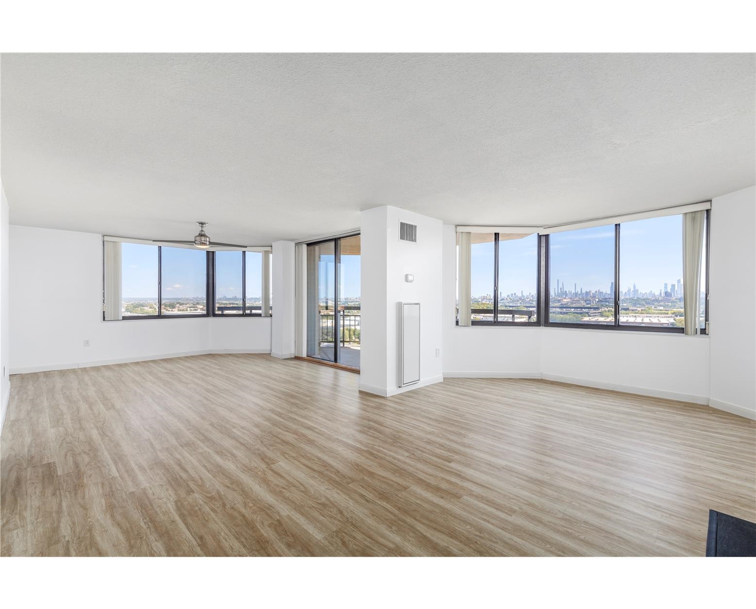 Welcome to this spacious 2 bedroom, 2 full bathroom condo at Harmon Cove Towers with exceptional NYC views! Offering approx. 1706 sq ft of living space, the unit features an eat in kitchen, dining room and large living room with wood burning fireplace. Condo includes in-unit laundry, ample closet space and hardwood flooring throughout. Enjoy two private balconies with extensive NYC skyline views. Elevator building with one assigned covered parking space. Amenities include 24-hour security, outdoor pool, tennis and basketball courts, gym with locker room and sauna, playroom, recreation room, and more!