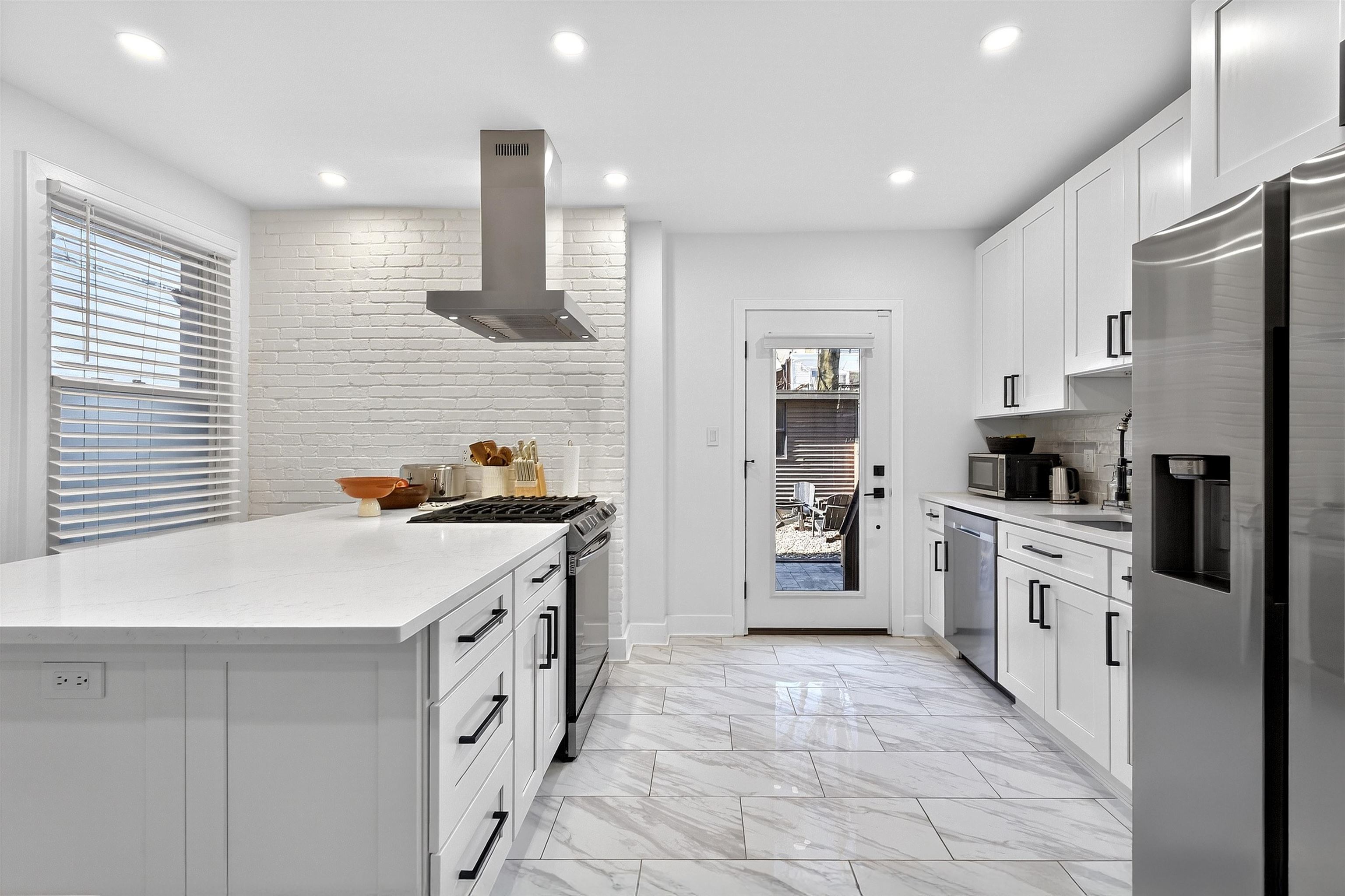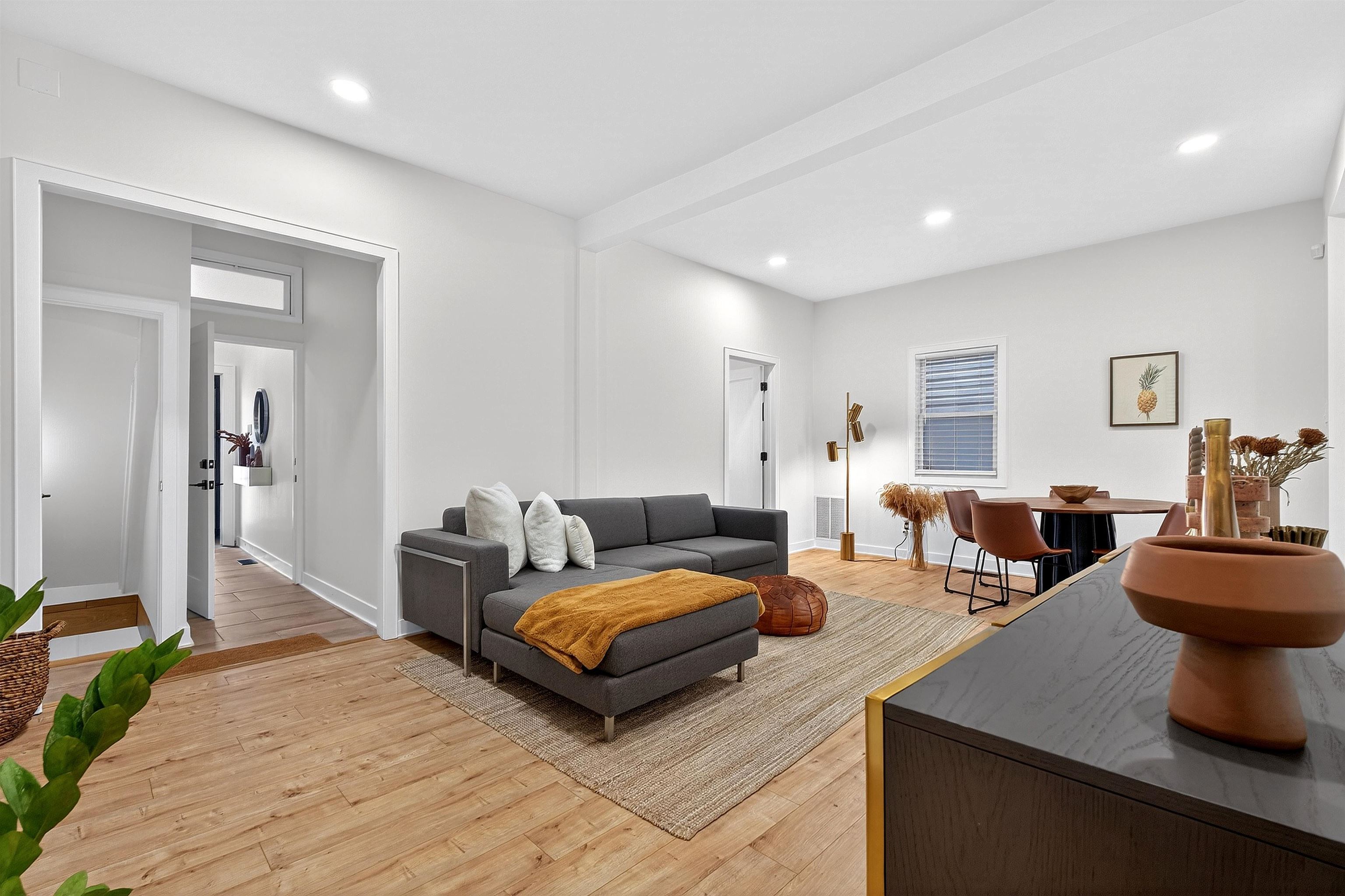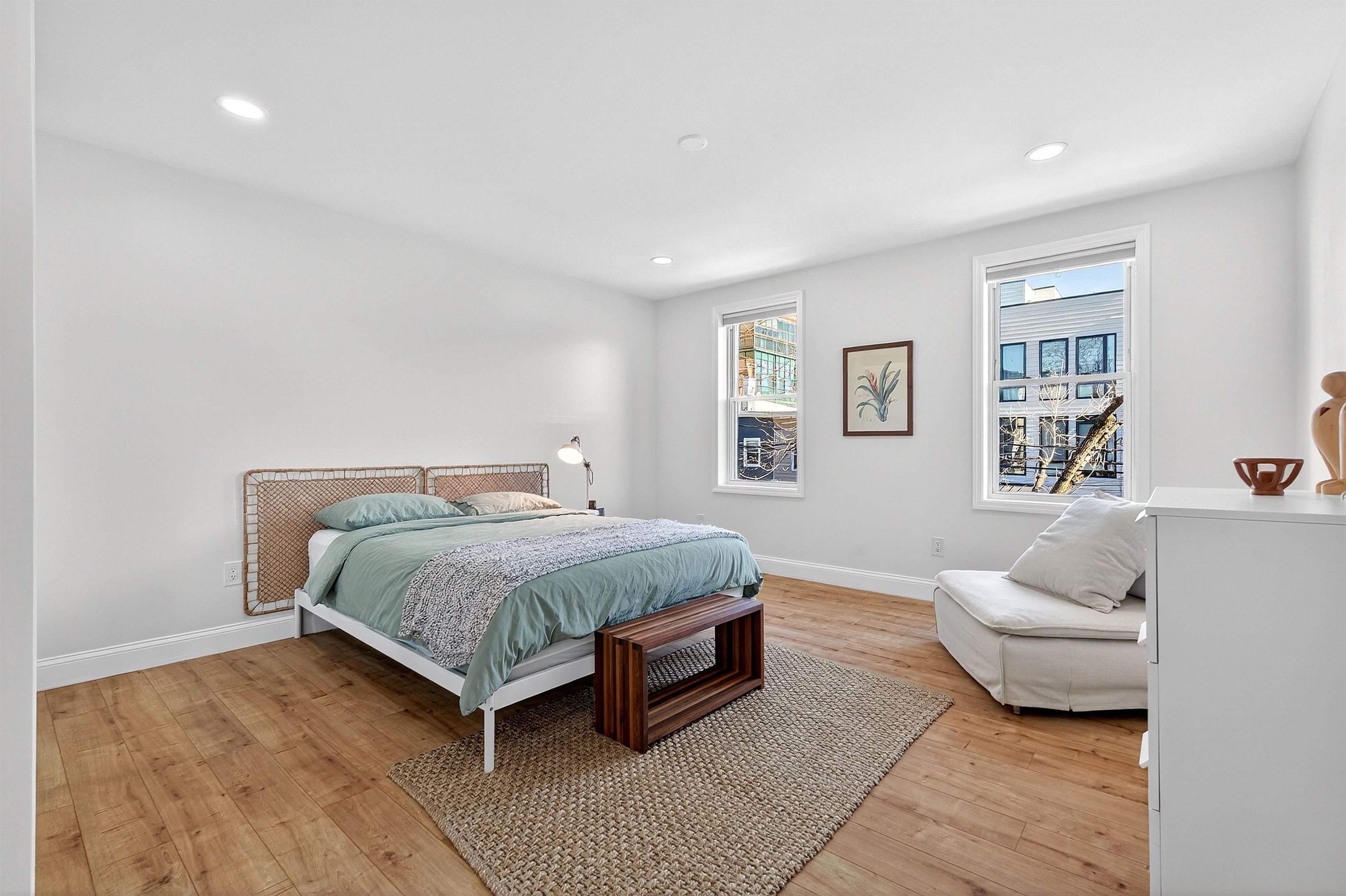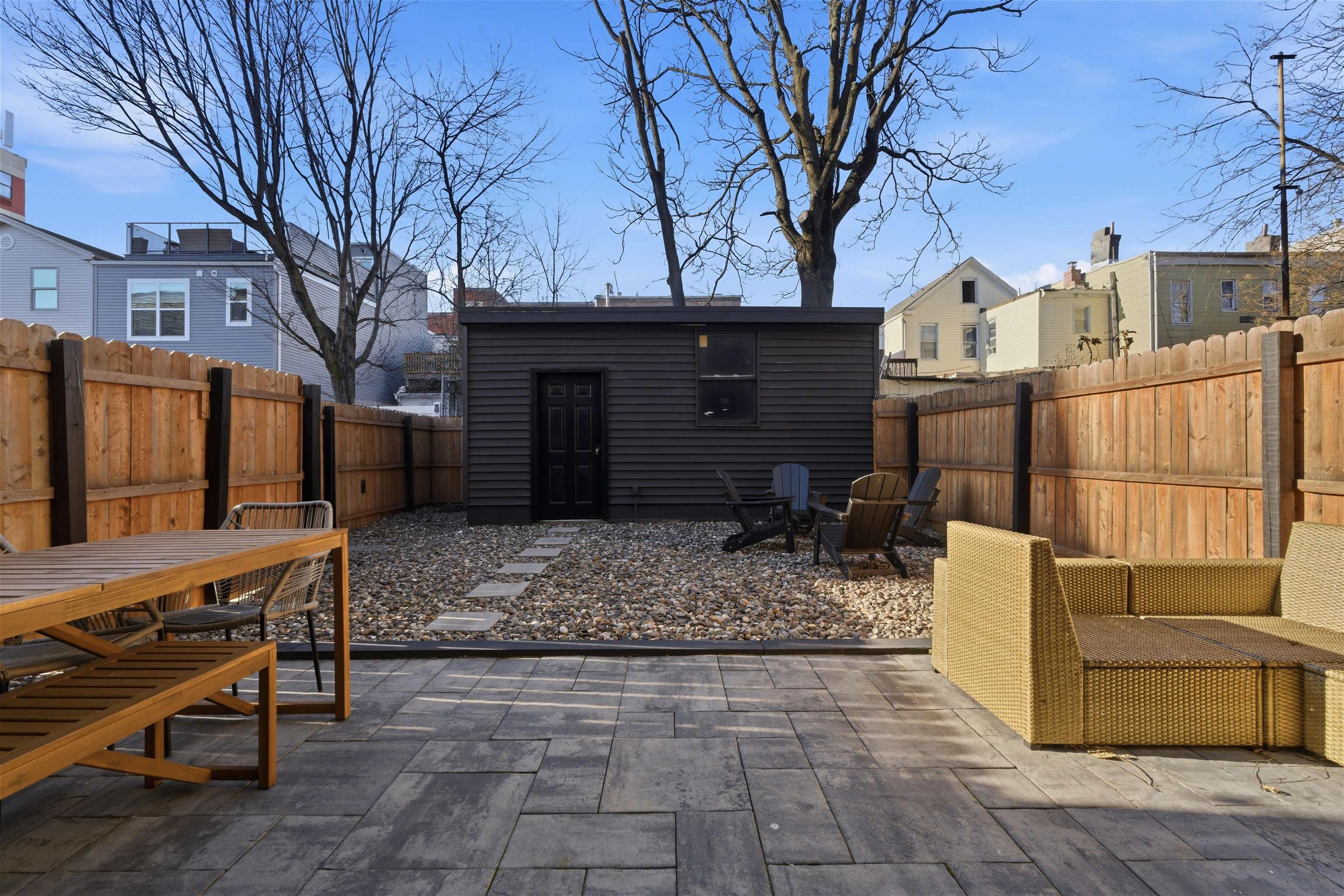 Welcome to 117 Webster Avenue in Jersey City Heights, a pristine and expansive single family home, fully renovated in 2022, with 5 bedrooms and 4 full bathrooms over 3,500 sq ft of living space. This home boasts driveway parking and a beautifully landscaped backyard. A charming vestibule and historic staircase welcome you to the first floor where a spacious living room flows into the beautiful kitchen, with a large island and backyard access, perfect for hosting indoor/outdoor gatherings. A massive bedroom and full bathroom complete the first floor. Up the stairs you’ll find another living/dining room, a bonus kitchen, 2 spacious bedrooms, and another full bathroom. The third floor is home to a showstopping primary suite featuring two bedrooms, ample closet space, and a breathtaking open glass shower, allowing natural light to bathe the room. The fully finished basement is home to the 4th full bathroom with full–sized laundry, a home gym, and ample storage. Additional features include a bonus office space, an electric car charger in the driveway, two zone central A/C, a shed in the yard, and an active Airbnb license. Located in the coveted Riverview Arts neighborhood of Jersey City Heights, you’ll be mere blocks from the steps to Hoboken and the 2nd Street Light Rail, bus routes, restaurants, and businesses on Franklin Street and Palisade and Central Avenues, and beautiful Riverview Park. The Riverview Farmers Market and Jazz Festival kick off in May. Enjoy lunch at Alessio’s, Matcha from Jane’s and become regulars at The Franklin and Busy Bee Organics. Enjoy all the Heights has to offer. Welcome home!