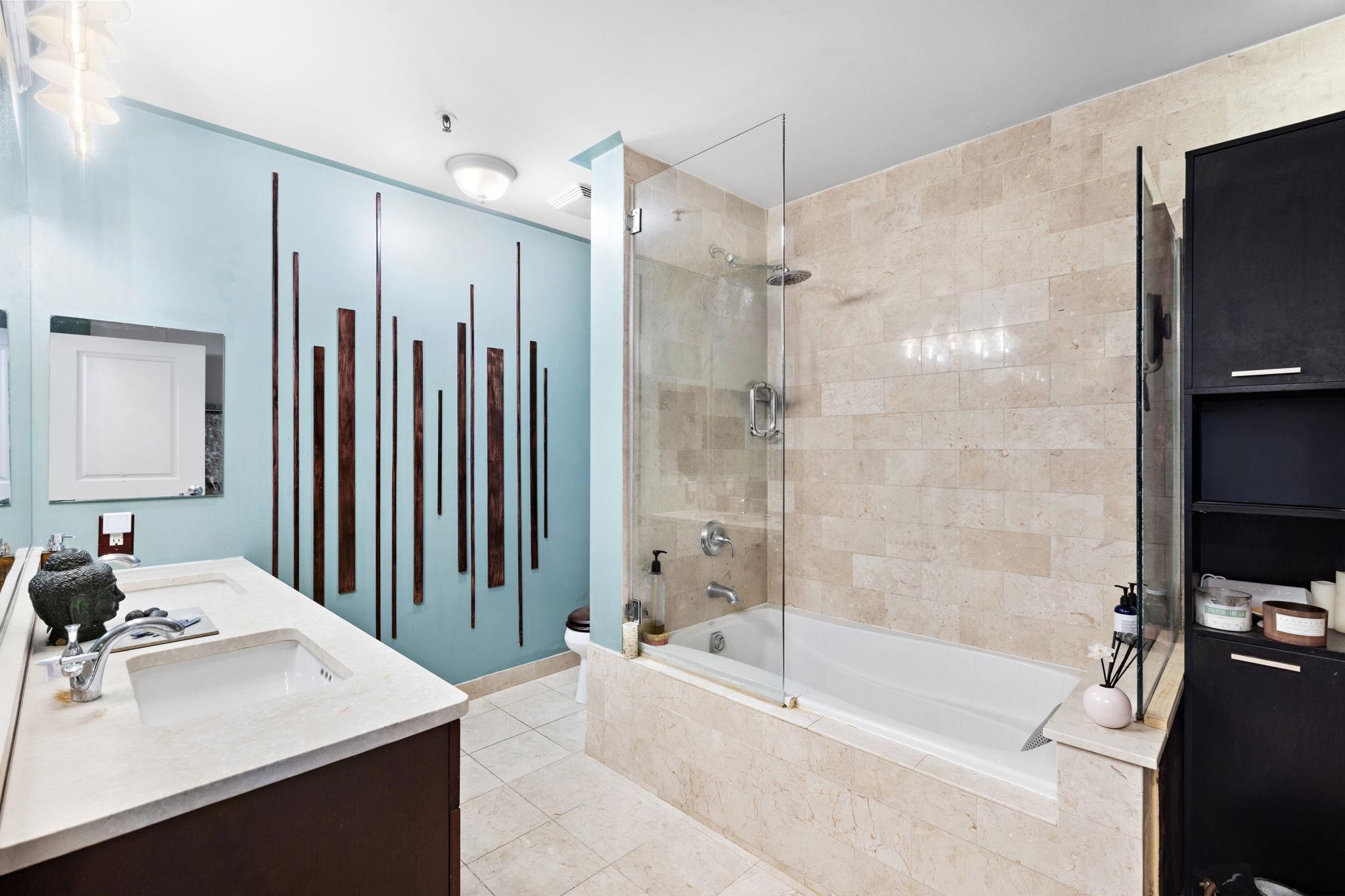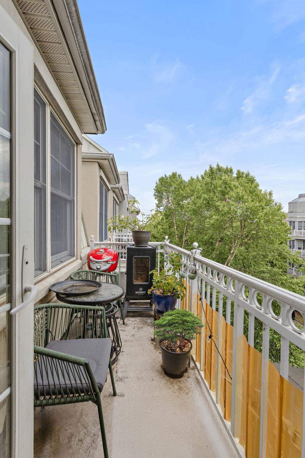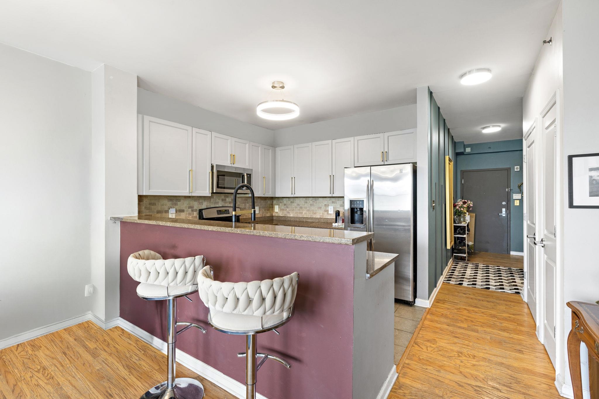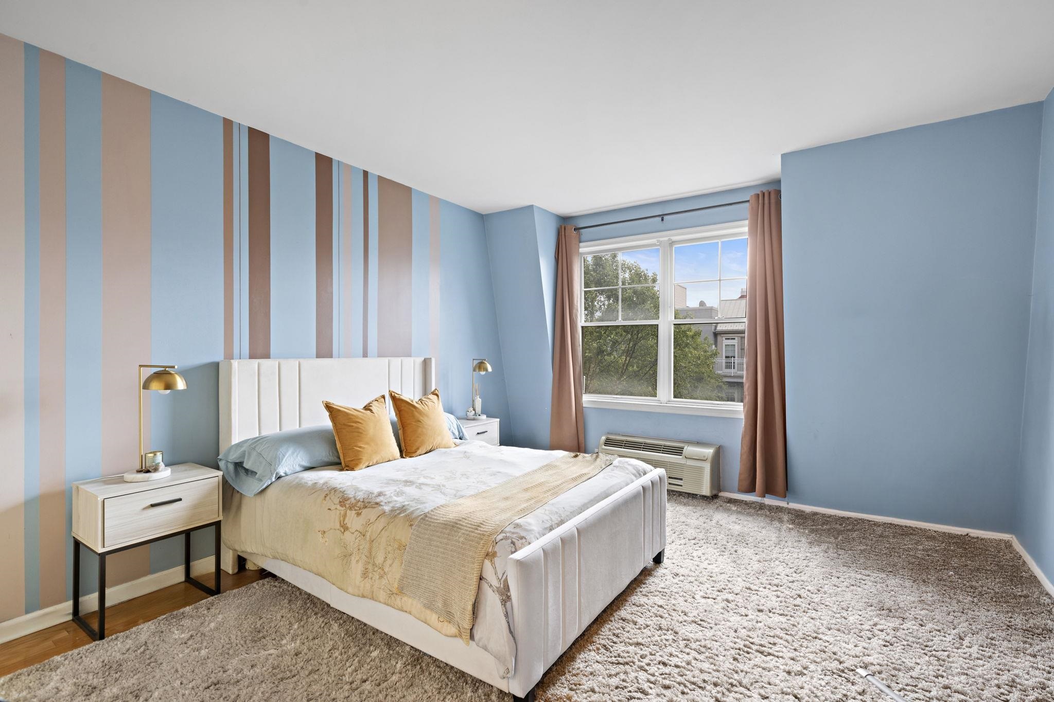 Rare top-floor Port Liberté condo with Statue of Liberty views, higher ceilings, and a unique bay window. Bright south-facing 2BR/2BA home offering approximately 1,230 sq ft of living space and a private balcony with unobstructed views and no neighbors above. The spacious living and dining area is filled with natural light and enhanced by the distinctive bay window pop-out, creating additional space rarely found in the building. The primary suite includes an en-suite bath and generous closet space, while the second bedroom is ideal for guests or a home office. Located in the sought-after waterfront community of Port Liberté, residents enjoy a resort-style lifestyle with canals, marina views, landscaped grounds, and waterfront walking paths. Amenities include two swimming pools — including an infinity pool overlooking the New York City skyline — fitness center, tennis courts, and playgrounds. Gated community with security, on-site shops, and resident perks including discounts at nearby restaurants and the neighborhood golf course. Convenient transportation options include shuttle service to PATH, ferry access to NYC, and quick access to major highways. One of only four bay-window units in the building.