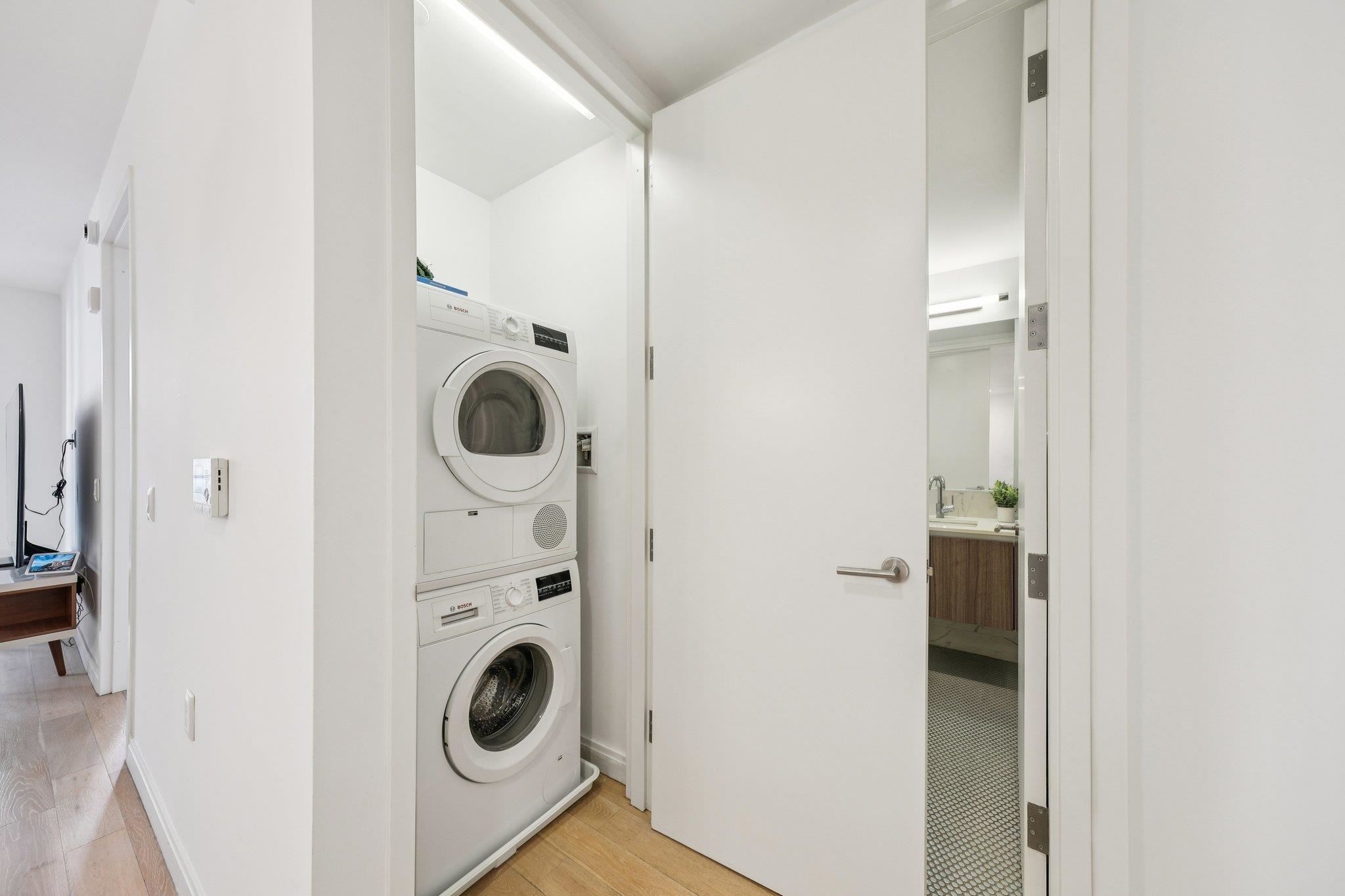 Discover sophisticated city living in this bright and spacious one-bedroom plus den residence at The Oakman, one of Downtown Jersey City’s premier luxury condominiums. A private terrace extends your living space outdoors, offering the perfect retreat for morning coffee. Inside, every detail has been thoughtfully crafted, from the wide-plank white oak floors to the custom Italian Pedini cabinetry. The gourmet kitchen is equipped with high-end appliances by Bertazzoni, Bosch, and Miele, while sleek fixtures from Kohler and Hansgrohe add a refined touch. Oversized windows fill the home with natural light, creating an airy, comfortable atmosphere that feels both modern and welcoming. Residents of The Oakman enjoy resort-style amenities including a rooftop pool with BBQ grills, a state-of-the-art fitness center, children’s playroom, resident lounge with fireplace, library, and convenient bike and cold storage. A 24-hour concierge and on-site garage parking (available for a fee) complete the full-service experience. Located just three blocks from the Grove Street PATH, The Oakman offers an easy commute to Manhattan and immediate access to Jersey City’s best restaurants, cafés, and shops. With an abatement in place through 2036, this home combines luxury, convenience, and exceptional value in the heart of Downtown Jersey City.