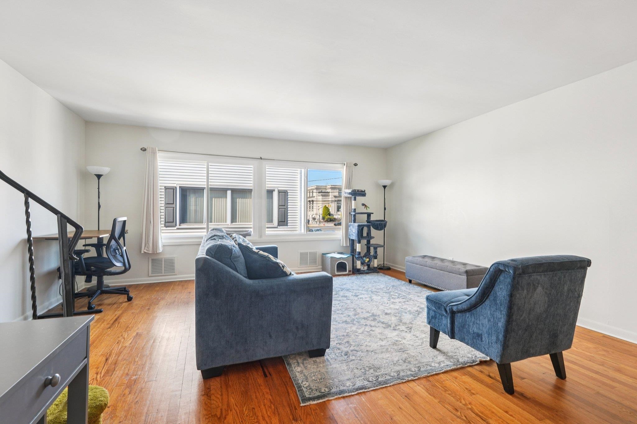 Welcome home to this spacious and exceptionally well-maintained 3-bedroom townhouse in Midtown Bayonne! Enjoy the benefits of significantly less maintenance than a single-family home while offering just as much—or even more—living space. This home features 3 bedrooms and 3 bathrooms (1 full and 2 half baths). The ground floor offers an amazing flex space that can be used as a family room, secondary living area, home office, storage solution, or more. The main level is filled with natural light from the front windows and features a combined living room, dining, and kitchen area—perfect for everyday living and entertaining. The home also boasts beautiful hardwood flooring and all brand-new windows, improving both comfort and energy efficiency. The top floor includes three generously sized bedrooms, each with large closet spaces, along with ample hallway and additional storage throughout the home. Central air conditioning provides year-round comfort. The ground level offers both front and rear entry and exit, providing convenient access through the landscaped front walkway or from the rear—just steps from your own parking space. Residents can also enjoy two shared outdoor common areas, perfect for relaxing or spending time outside. Located directly across the street from the Bayonne Public Library, this home is ideally situated near transportation, shopping, and the everyday conveniences of Midtown, making commuting and errands easy. A wonderful opportunity to own a comfortable, move-in-ready home in a prime Bayonne location—don’t miss your chance to make it yours!