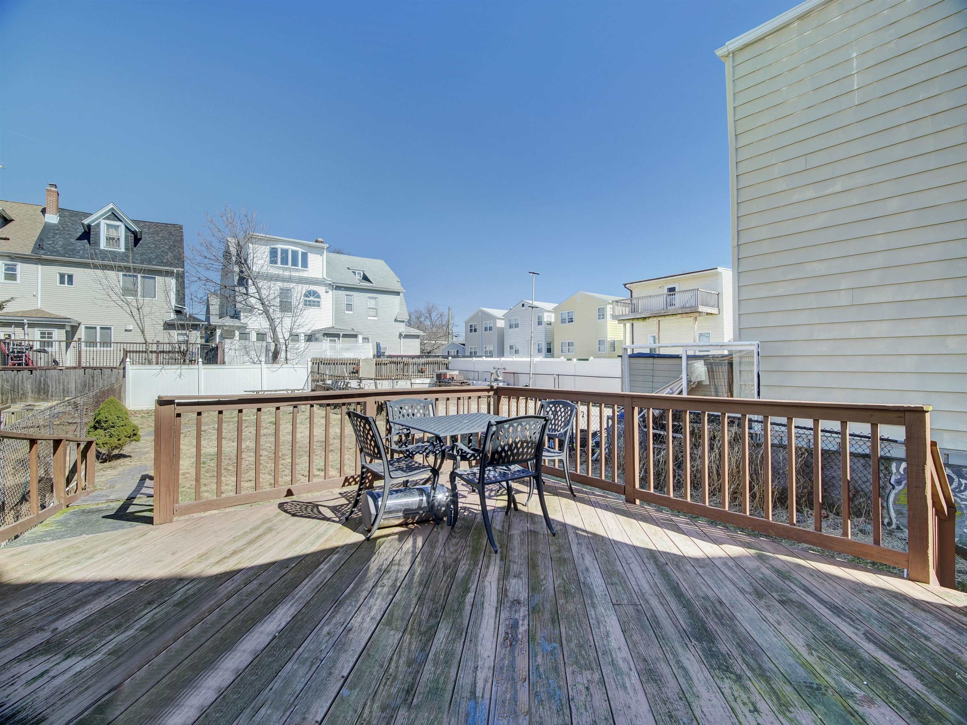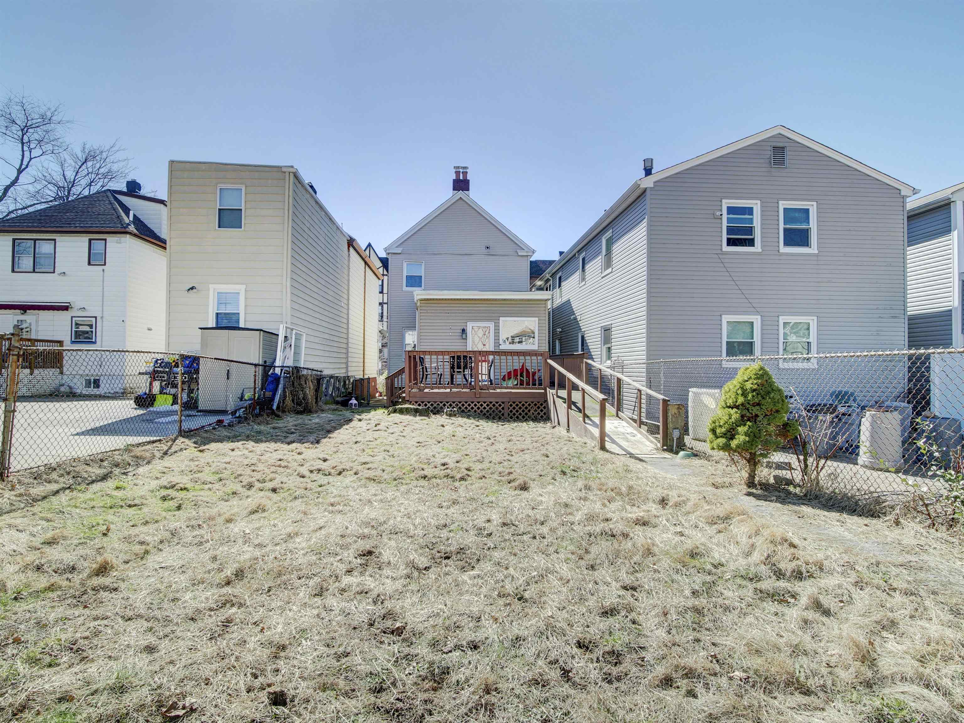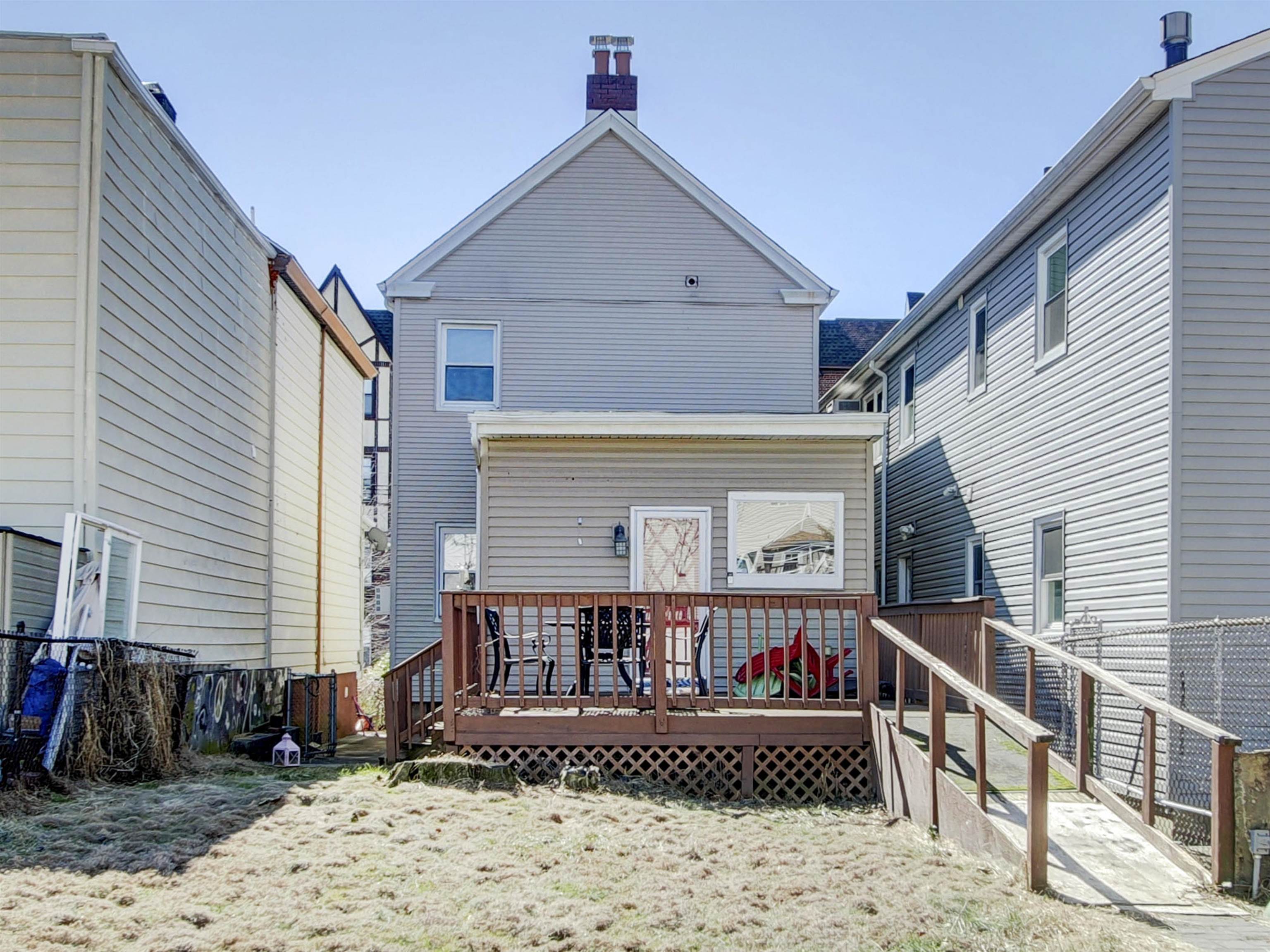 Detached single family home with 2 bedrooms and one bath in desirable location in Bayonne! Bring your vision and handyman to turn this great bones property into your own. Roof is approximately 4-5 years old. 2 car tandem parking in driveway. Home is situated on oversized lot with spacious deck and backyard for entertainment. Veterans Park and 34th Street Light Rail Station nearby, with additional transportation to JSQ PATH, NYC, schools, restaurants and shopping. Estate Sale--Home is being SOLD AS IS, including all appliances.