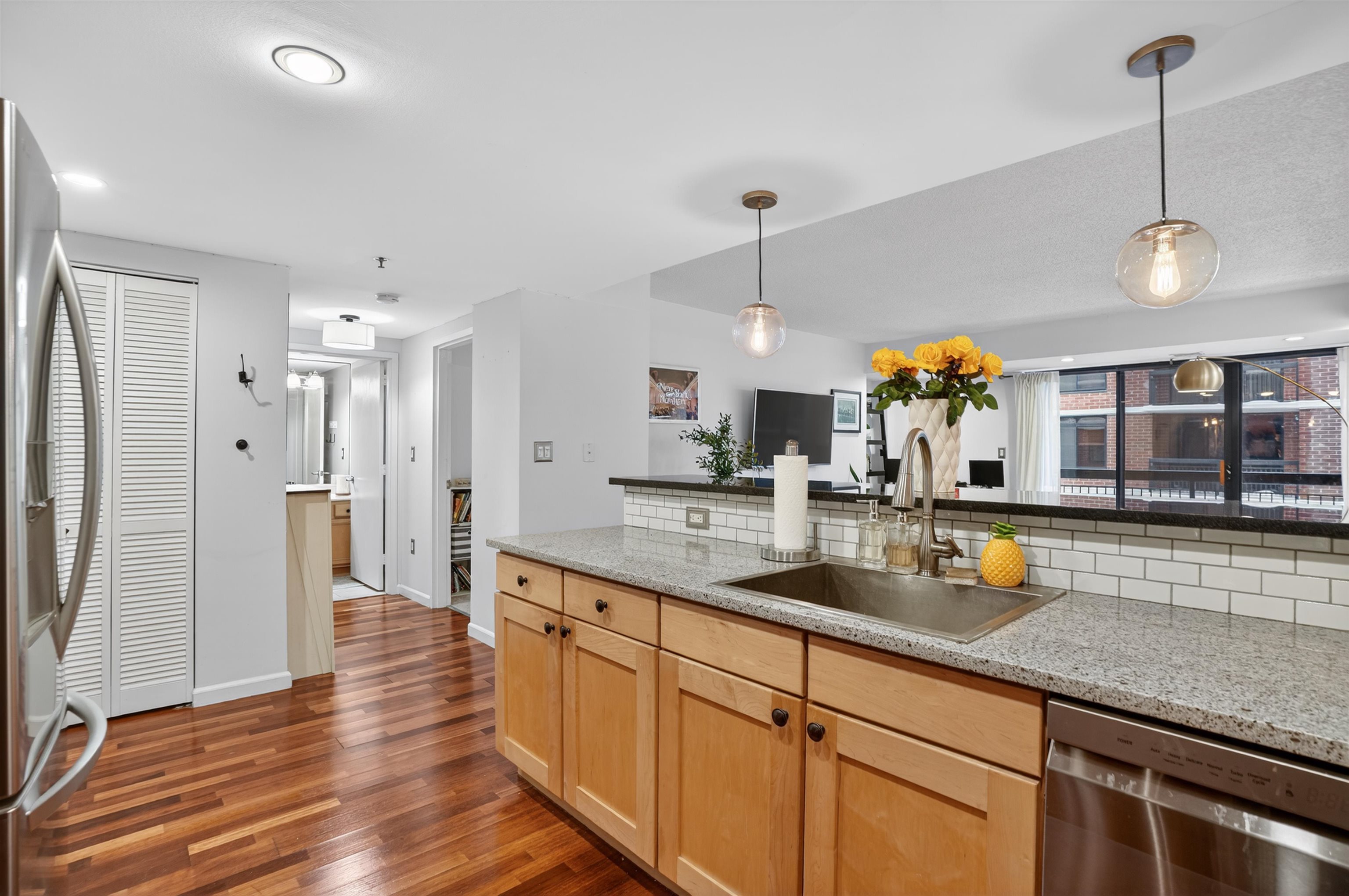 Welcome to this beautifully maintained 2-bedroom, 2-full-bath condominium located in the prestigious Sky Club building in the heart of Hoboken. This thoughtfully designed residence features spacious bedrooms with separate full bathrooms positioned on opposite sides of the unit, offering ideal privacy and functionality. The open-concept layout showcases hardwood floors, a modern kitchen with stainless steel appliances and a breakfast bar, and the convenience of an in-unit washer and dryer. Step outside to your private balcony, great for added privacy. Sky Club offers 24-hour concierge service and a complimentary shuttle to and from the PATH, making commuting effortless. Residents also have access to the on-site health club and pool for an additional fee. Rental parking is available for an additional fee. Enjoy the convenience of having the newly opened "With Love Valentina" restaurant located right downstairs and connected to the building, perfect for morning coffee, brunch, or casual dining just steps from your door. Ideally situated in an extremely convenient location, just steps from the light rail, schools, parks, a public parking garage, shops, restaurants, bars, and more, this home offers exceptional comfort and convenience in one of the city's most vibrant neighborhoods. Building amenities include 24-hour doorman, package room, and reservable community room. HOA fee ($685/mo) includes building and minor in-unit maintenance. Parking available on-site with reserved/non-reserved options (starting at $350/mo). Basement storage lockers available for transfer (approx. $1,200/year).