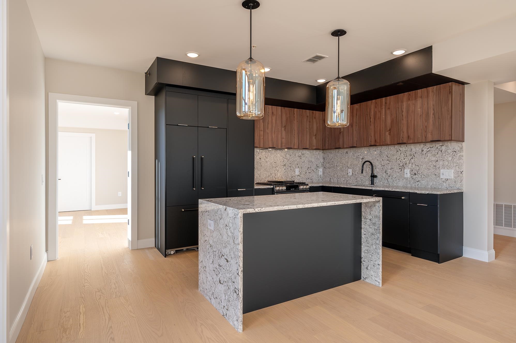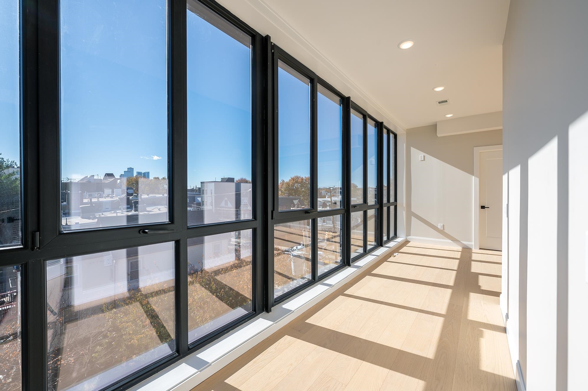 Discover an exceptional new collection of homes where historic character meets modern design. Rising up to four stories, these thoughtfully crafted residences capture the energy and sophistication of city living while offering a serene retreat at home. Enjoy the convenience of a full-service elevator building with a secure lobby, intercom access, available on-site heated garage and handicap-accessible parking, and EV charging stations. Just three blocks from the Hoboken Light Rail, residents enjoy effortless access to Manhattan and beyond. Inside, every detail has been considered—from European floor-to-ceiling windows and wide-plank white oak flooring to Gyp-Crete soundproofing that ensures quiet and comfort. Select homes include private balconies, dens, or roof decks designed for seamless indoor-outdoor living. This unit includes a private balcony and your own private roof deck of 147 Sq Ft. The interiors reflect a mid-century modern aesthetic with timeless craftsmanship, highlighted by granite waterfall islands, European cabinetry, Kohler fixtures, GE Café and Fisher & Paykel panel-door appliances, smart mirrors, and imported glass lighting. Open-concept kitchens flow into airy living spaces, creating the perfect backdrop for sophisticated urban life. Private roof decks with full kitchens provide a refined setting for entertaining, complete with surround sound and green roof features. For those seeking style, convenience, and connection, these residences reimagine Jersey City Heights living with an inspired blend of design, comfort, and modern amenities. This home represents one of three, 1 bedroom plus den and balcony, plus private roof deck. Available On -Site Garage Parking (heated) w/ HC & EV options.