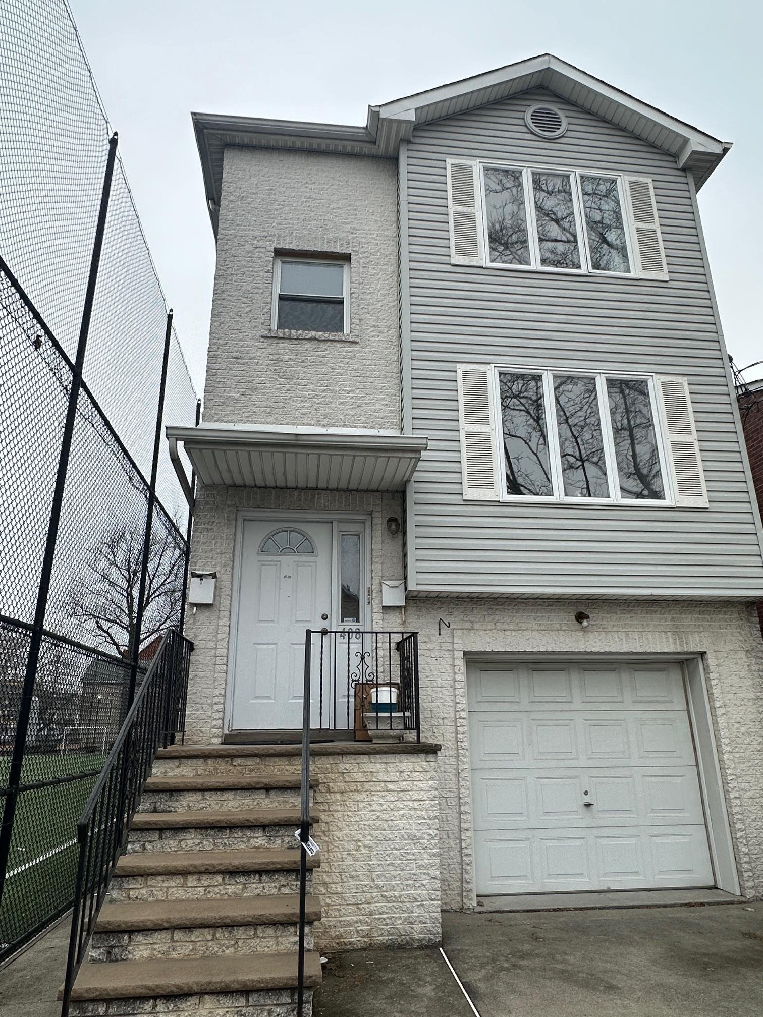 Great opportunity to own a Two family house at the desirable area in Harrison. Each unit features a large living room, open kitchen, dining area, a primary suite, 2nd bedroom with a full bath. Finished ground level has separate entrance. Feature, large family room, bedroom, full bath, kitchenette. Attached one car garage with two more parking space. Next to Harrison soccer court next door and basketball court and library behind the house. Minutes to the path station. walking to shops, school, restaurants. This house has 3 separate furnaces, total 5 bedrooms, 5 full baths. two sets of washer and dryer. Perfect for multi-generational owner occupy or investment income property. House will be vacated when closing. Tenant lease to end of May, please give 24 hour notices. The first time showing might only to 2nd Floor unit and common area. Open House: Sunday, MAR.15, 1-4pm
