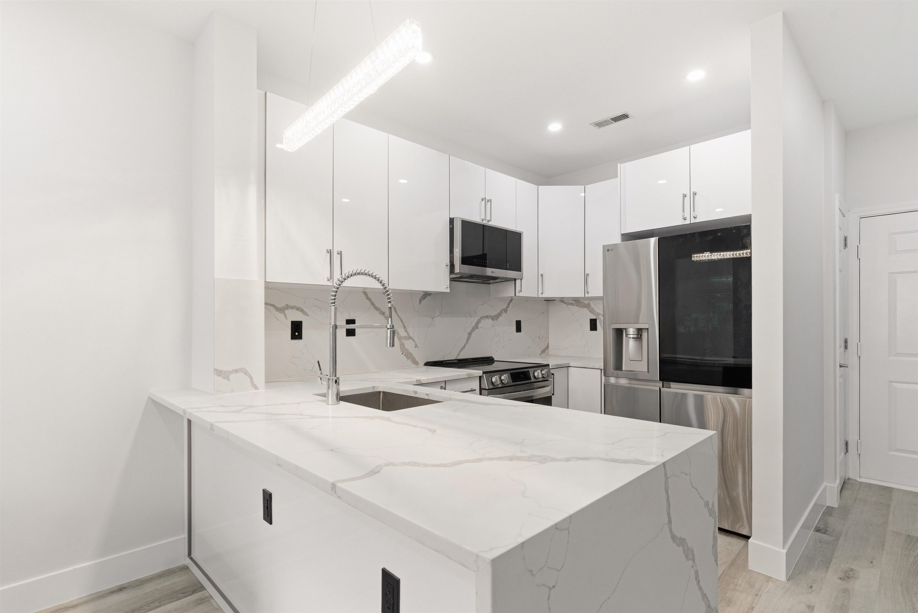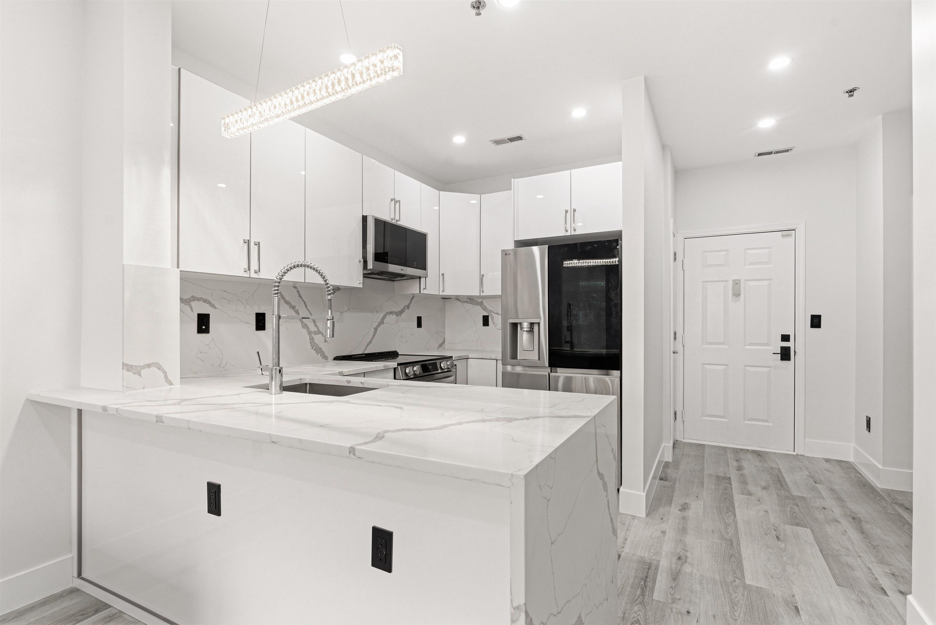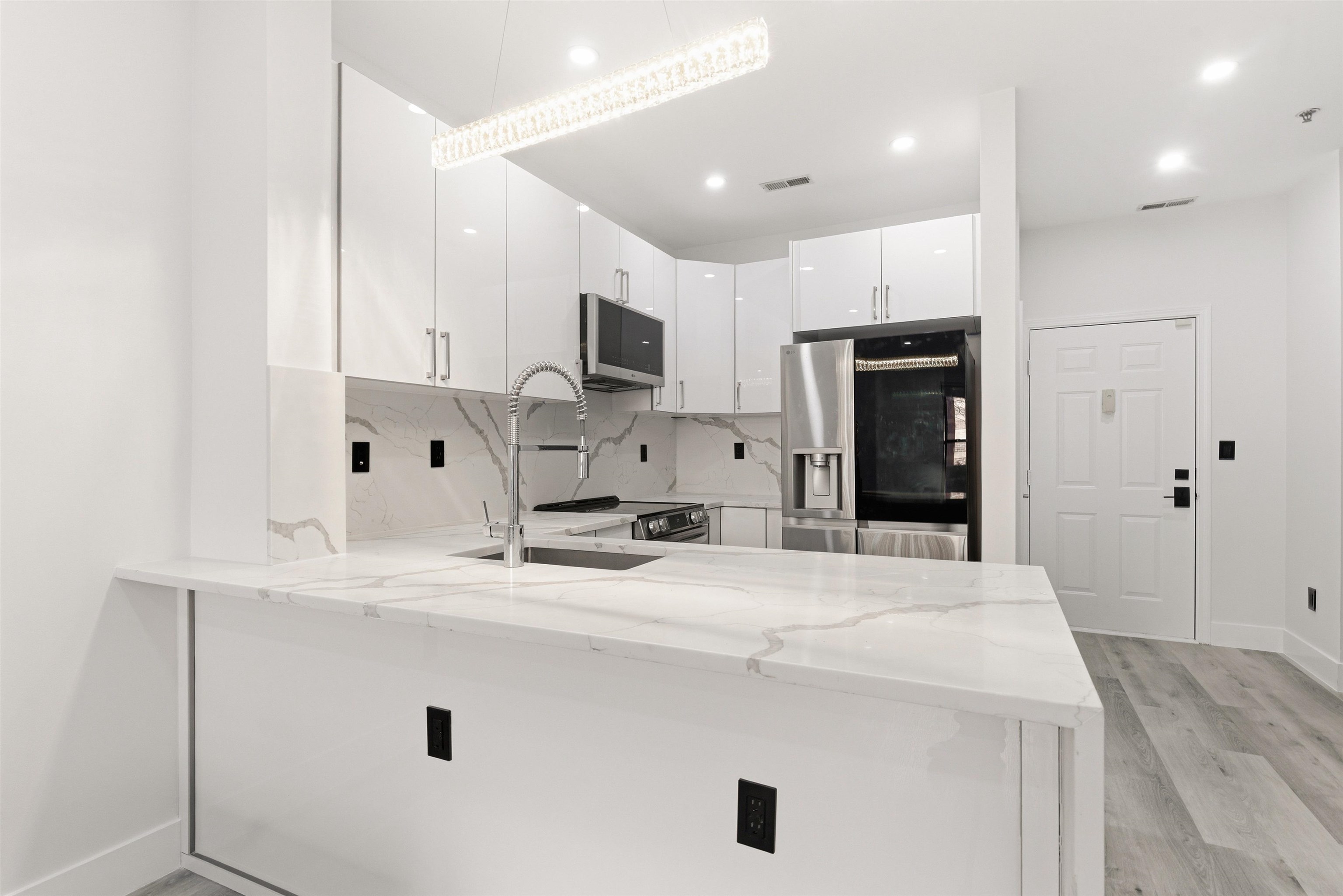 Welcome to this beautifully renovated 1-bed, 1-bath condo offering 767 square feet of modern comfort and style. Thoughtfully updated throughout, this move-in ready home features a brand-new kitchen with sleek cabinetry, new appliances, and contemporary finishes. The open living area is enhanced by recessed lighting, new outlets, light switches and stylish new flooring, while the fully remodeled bathroom offers a fresh shower, modern vanity, and added storage. One outdoor parking space is included. Enjoy peaceful moments on your private balcony overlooking the serene interior courtyard. Set within a full-amenity community with 24/7 concierge service, residents can enjoy an outdoor pool, jacuzzi, cinema room, fitness center, indoor basketball court, yoga room, conference room, two party rooms, guest parking, and EV charging stations. HOA fee includes water, gas, sewer, cable, and internet. Conveniently located near transportation to New York City, as well as parks, shopping, and dining. With every detail thoughtfully updated, this move-in ready condo is the perfect chance to become a homeowner and leave renting behind!