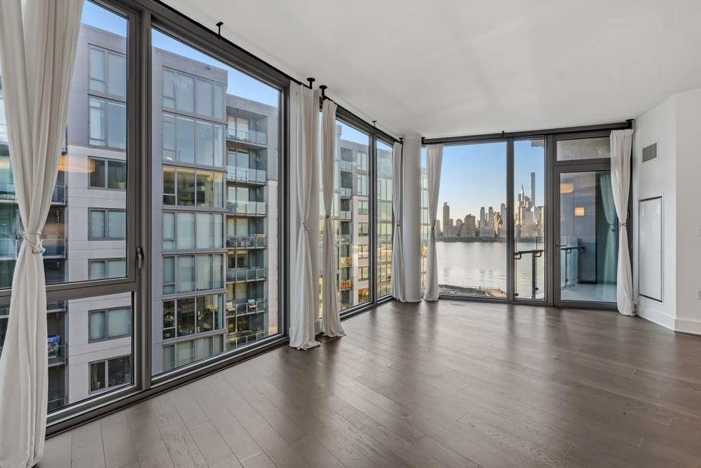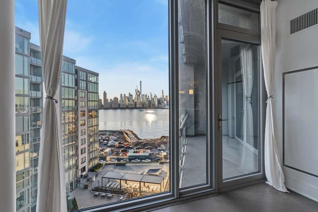 Welcome to Residence #1015 at 9 Avenue at Port Imperial, a stunning 2-bedroom + den home with breathtaking Hudson River and Midtown views. Floor to ceiling windows fill the space with natural light, highlighting a spacious living and dining area ideal for entertaining. The versatile den is perfect for a home office or guest space, while the modern kitchen features sleek cabinetry, stone countertops, and premium appliances. Located along the vibrant Port Imperial Waterfront, residents enjoy luxury waterfront living with convenient access to the NY Waterway Ferry, Hudson–Bergen Light Rail, and easy commuting to Manhattan.