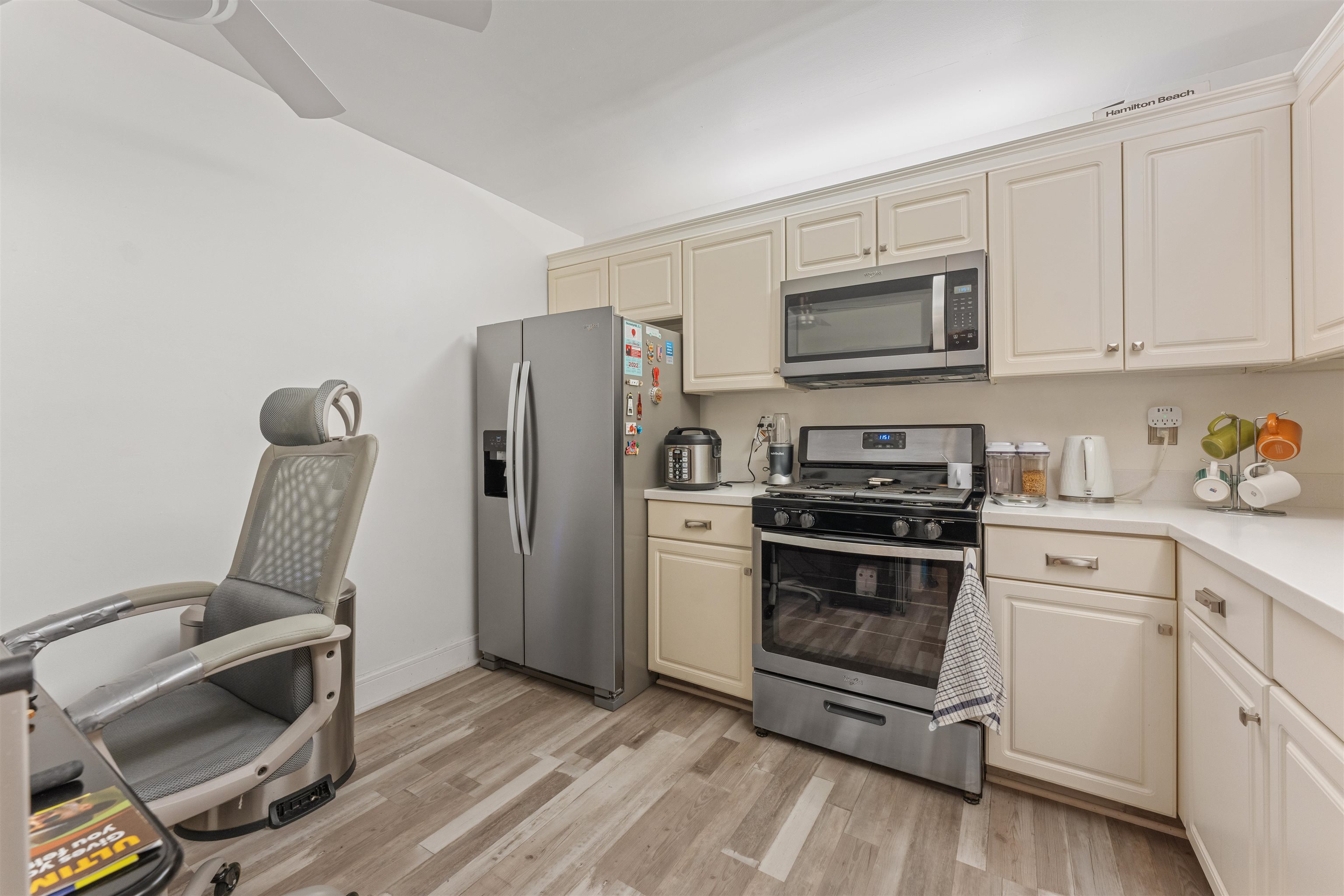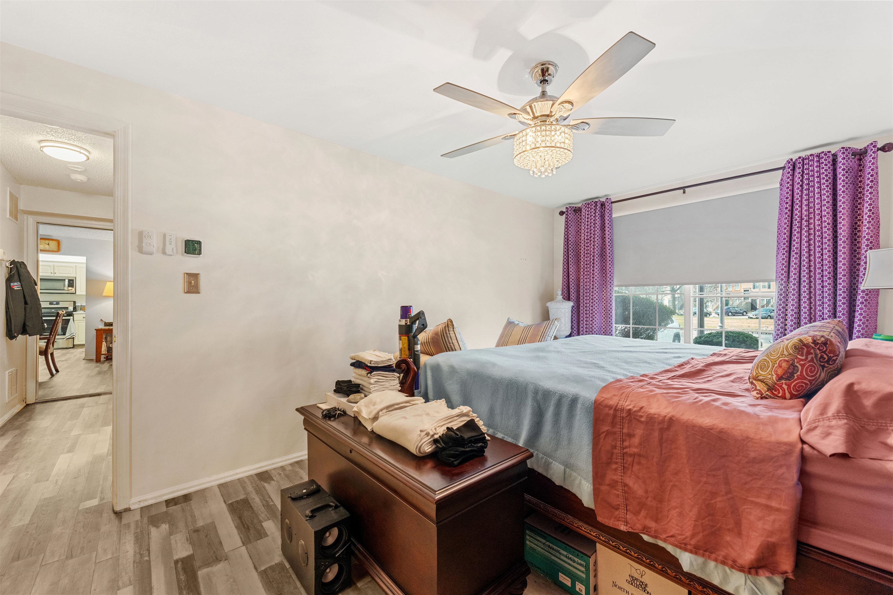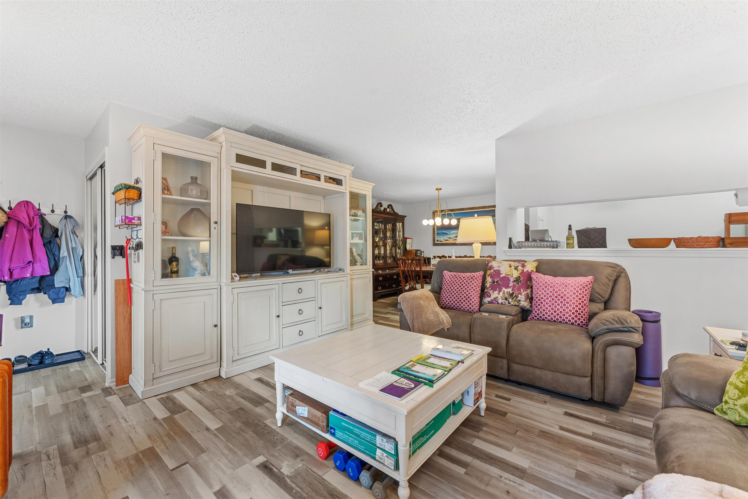 This beautifully maintained 2-bedroom, 2-bath garden unit offers comfort, style, and thoughtful upgrades throughout. The home features luxury vinyl laminate flooring across the entire unit and a high-efficiency washer and dryer for everyday convenience. The HVAC system includes an Aprilaire humidifier, and a new water heater adds peace of mind. All closets have been professionally organized by Closet Factory, maximizing storage and functionality. The kitchen and bedrooms include ceiling fans, while the primary bedroom and living room feature remote-controlled shades for added comfort and ease. A bright, move-in-ready home with modern improvements, designed for comfortable living and effortless enjoyment.