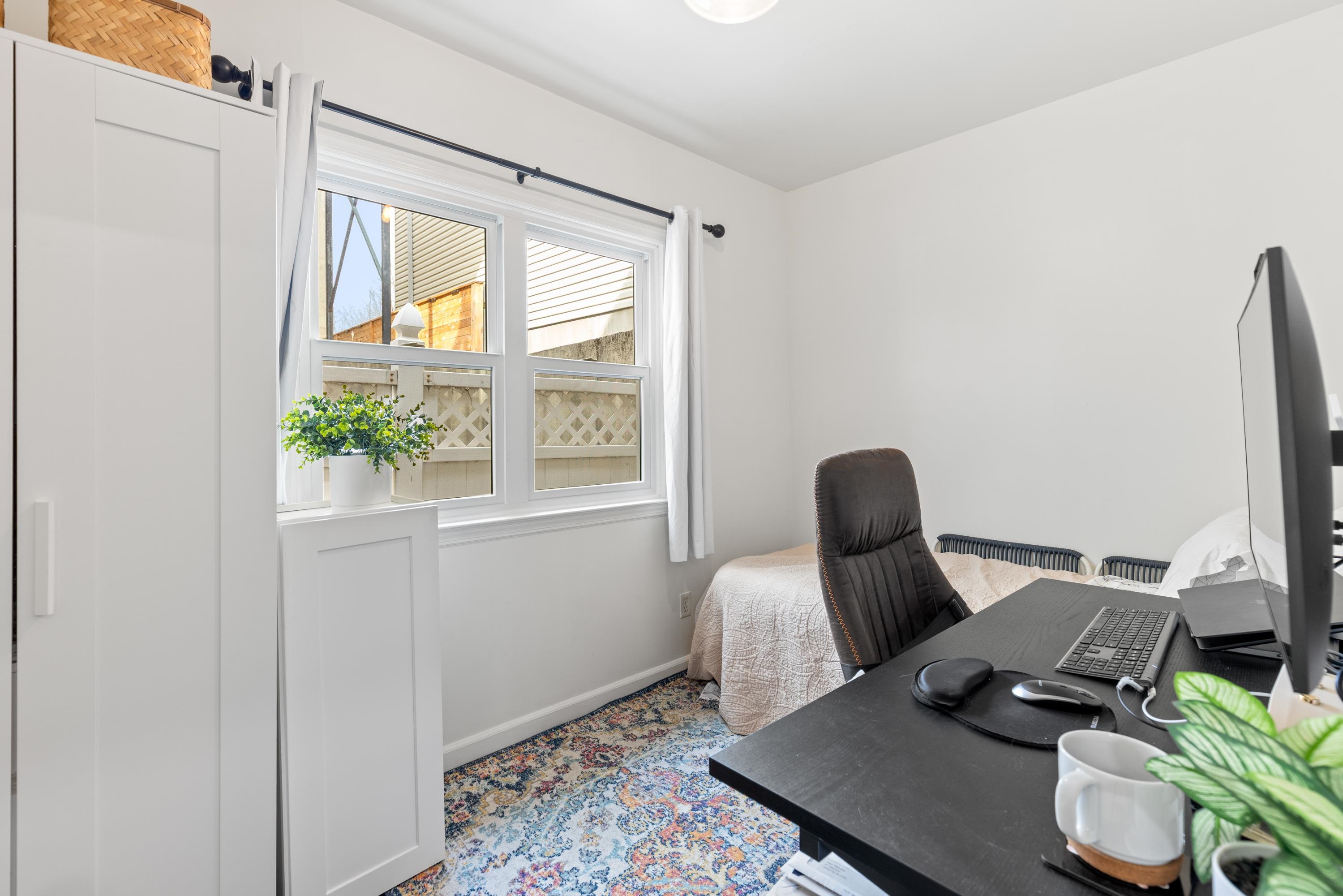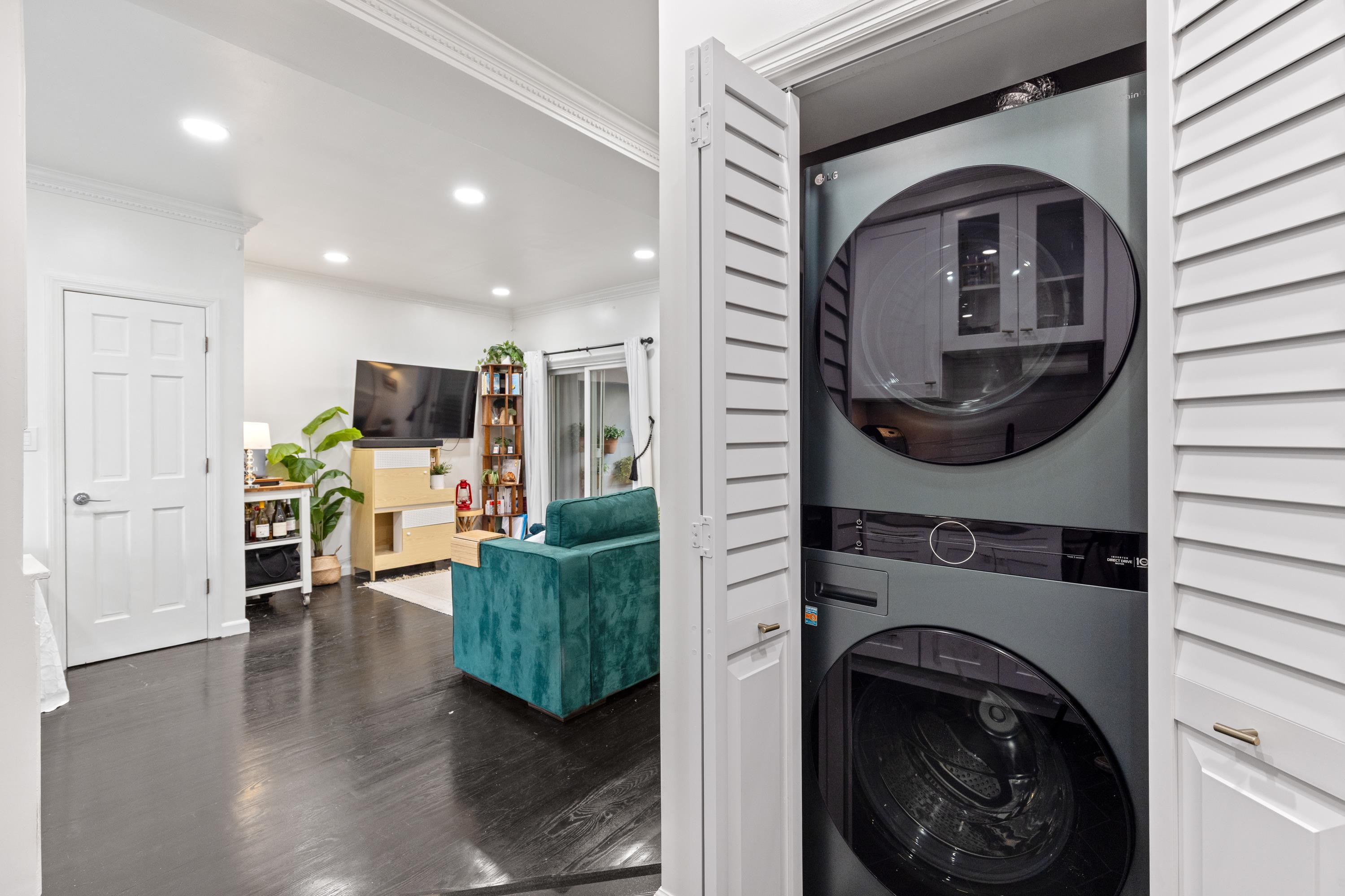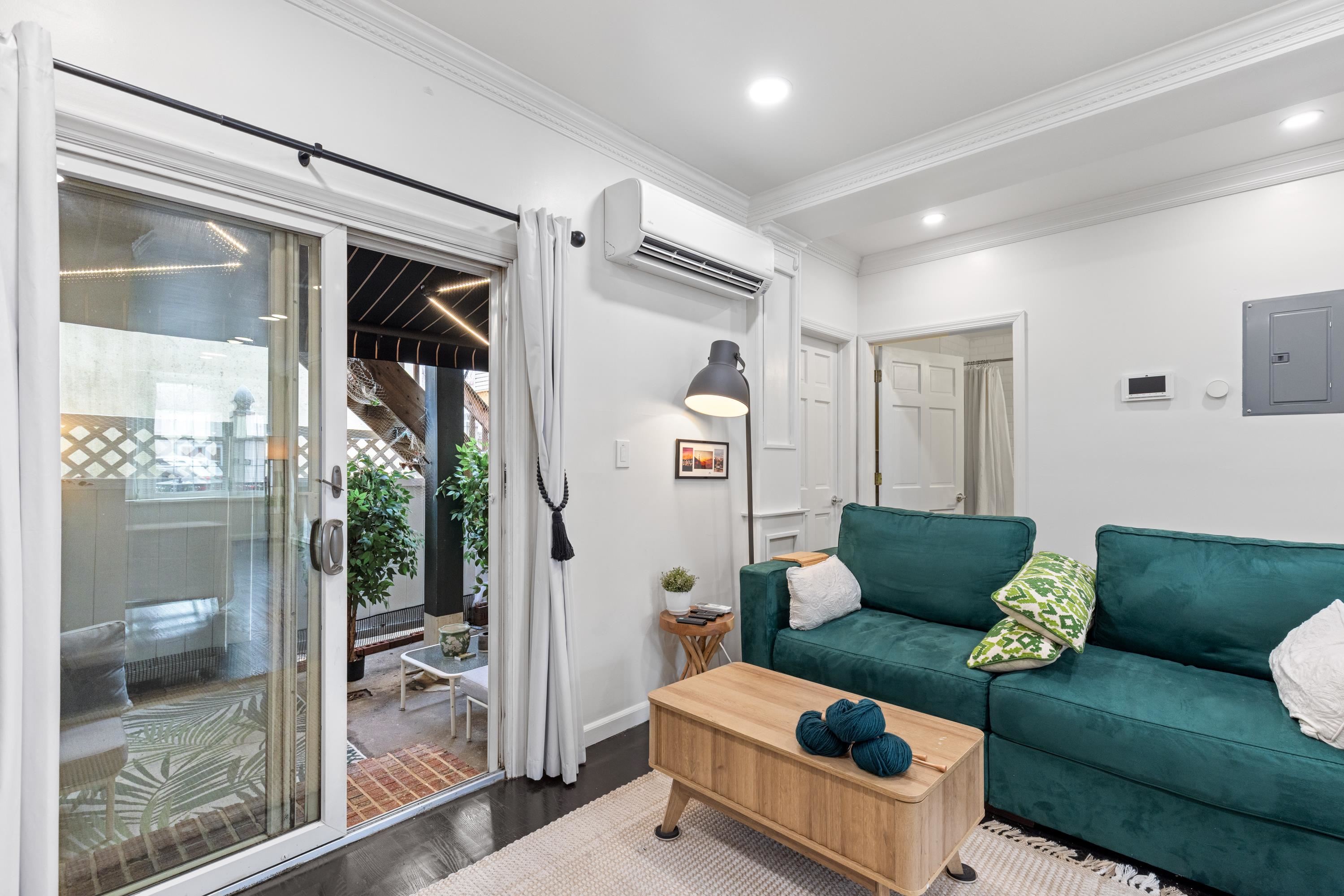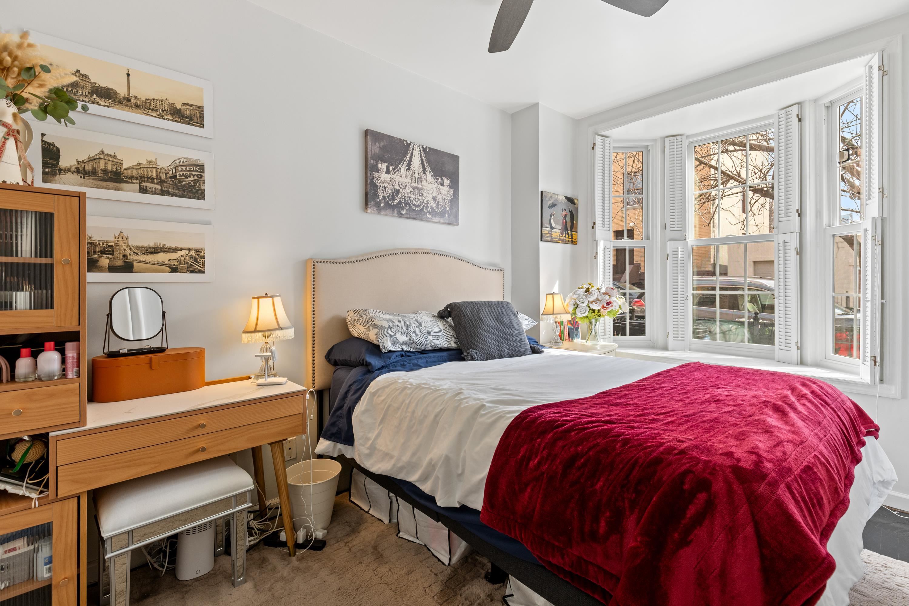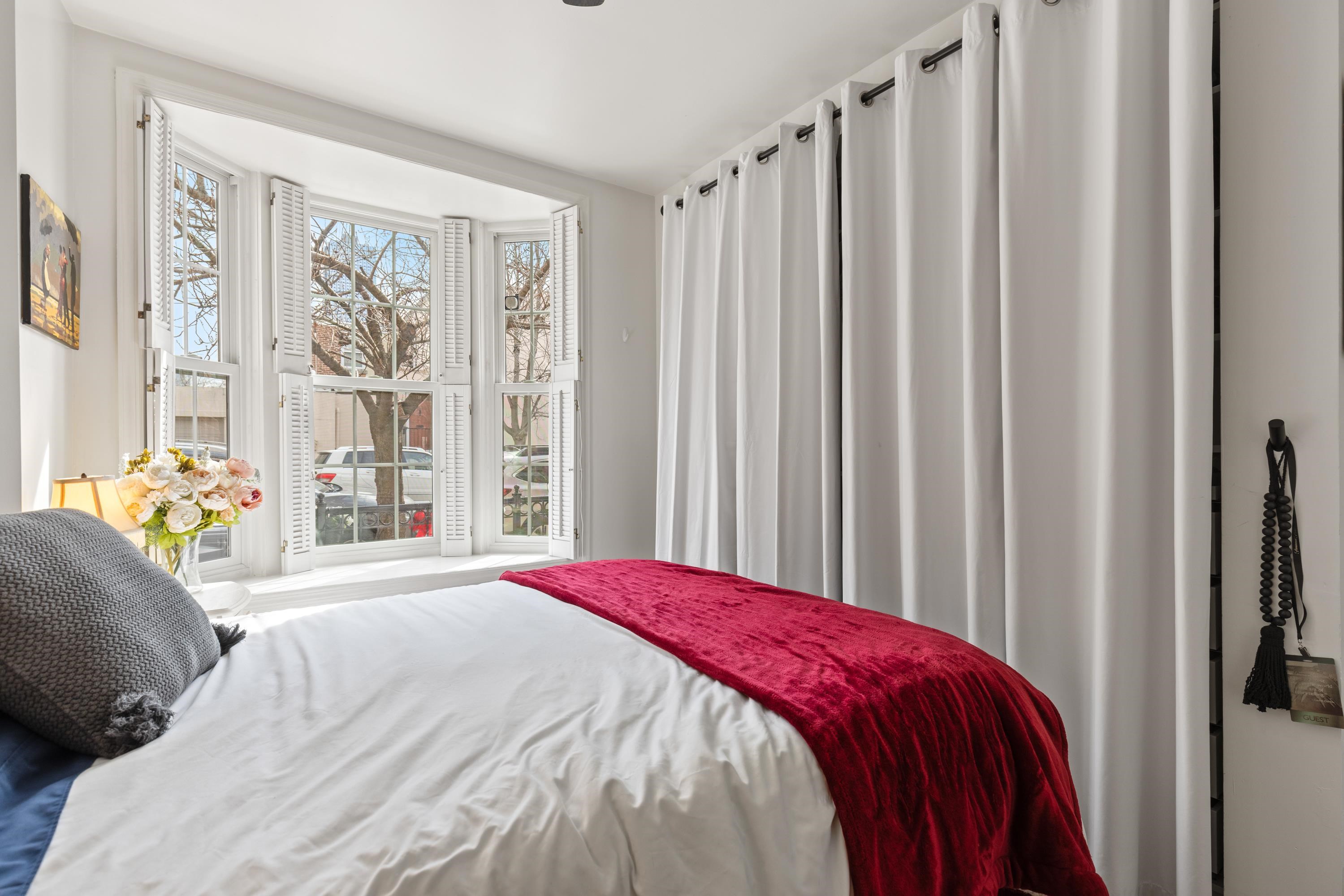 Private patio living in the sought-after Hamilton Park neighborhood — this beautifully renovated two-bedroom home blends modern upgrades, classic architectural charm, and an unbeatable Downtown Jersey City location just moments from the Grove Street PATH. Situated on the first floor of a well-maintained boutique three-unit, pet-friendly building, this thoughtfully designed residence offers approximately 851 square feet of comfortable living space along with a private covered patio ideal for outdoor dining, entertaining, or relaxing. The home opens into a bright and inviting living and dining area highlighted by beautiful bay windows that fill the space with natural light while adding classic architectural character. Crown molding, recessed tech-enabled LED lighting, and dark-stained hardwood floors create a warm and sophisticated atmosphere throughout the main living spaces. Sliding glass doors extend the living area outdoors to a private covered patio, complete with a retractable awning and integrated lighting that allows for comfortable evening enjoyment. The recently renovated kitchen is a standout feature of the home, designed with both style and functionality in mind. It showcases quartz countertops, white shaker-style cabinetry with full-height storage, a sleek slab-style backsplash, under-cabinet lighting, brass hardware accents, tech-enabled stainless steel appliances, and striking black hexagonal tile flooring. The layout provides generous workspace and storage while maintaining a clean and modern aesthetic. Both bedrooms are well-proportioned and thoughtfully positioned within the home. The primary bedroom features a charming bay window and a custom closet system providing excellent organization and storage. The second bedroom offers exceptional flexibility and works perfectly as a guest room, nursery, or dedicated work-from-home office—an increasingly valuable feature for today’s buyers. The bathroom has also been tastefully renovated with classic white subway tile and a Carrara marble-top vanity, creating a timeless and elegant space. Additional features include efficient mini-split heating and cooling, recessed LED lighting, ceiling fans, an in-home washer and dryer, and a large under-stair storage closet providing valuable additional space rarely found in similar Downtown residences. Smart home enhancements include keyless entry, recessed LED lighting, LG kitchen appliances, and a home security system for added convenience and peace of mind. For added buyer confidence, the seller will provide a one-year home warranty through Assurant at closing. Perfectly positioned on a quiet residential block within the Harsimus Cove neighborhood, the home is just moments from the beloved?Hamilton Park, known for its tennis courts, dog runs, playgrounds, and vibrant community events. The location also offers easy access to the lively dining scene surrounding the?Newark Avenue Pedestrian Plaza, where local favorites include Maxwell Alley, The Archer, San Patricios, the beloved ramen spot Ani Ramen House, and neighborhood café The Hive. Commuting to Manhattan is effortless with the nearby?Grove Street PATH Station?providing direct service to Midtown and the World Trade Center via the?PATH or the 126 NJ Transit Bus at Hamilton Park via Hoboken to NY Port Authority. Combining private outdoor space, modern upgrades, architectural charm, and an unbeatable Downtown Jersey City location, this home presents an exceptional opportunity to enjoy one of the most vibrant and sought-after neighborhoods in the region.
