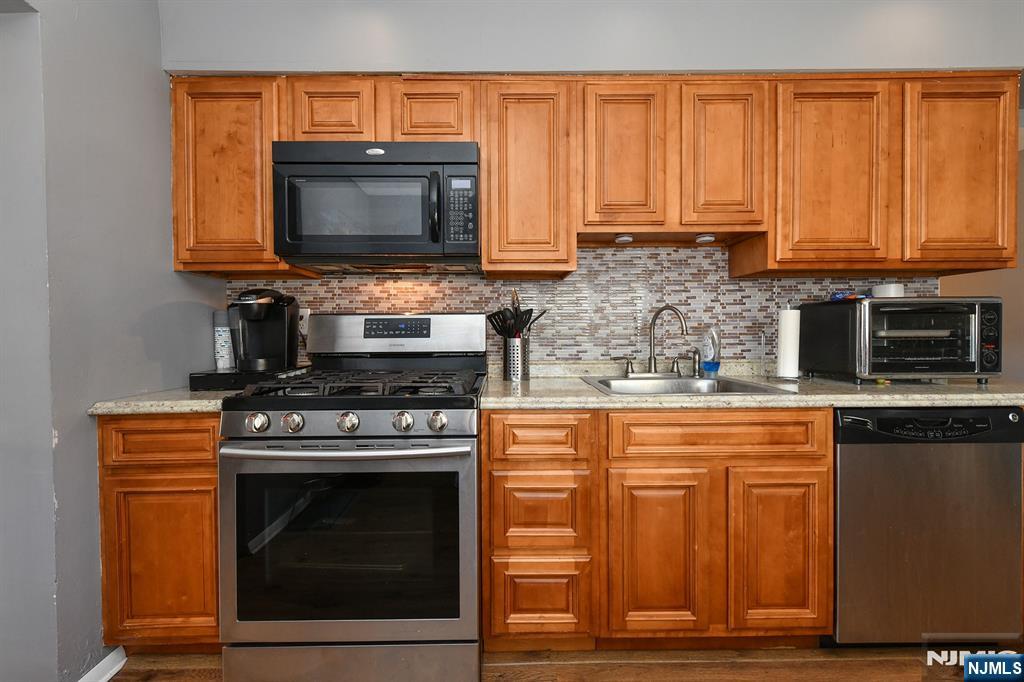 Welcome to this inviting three-level Mother-Daughter style home. Nestled on a quiet dead-end street, this property sits on an oversized 7,000+ sq ft lot (50 x 142), offering both space and privacy. Main level features a comfortable living room, eat-in kitchen, two bedrooms, a full bath, laundry for added convenience, and hardwood floors throughout. A mudroom with direct access to the backyard makes daily living effortless. Ground level offers incredible versatility with a summer kitchen, family room, one bedroom, full bath, and its own laundry area- ideal for guests or a private in-law suite. Third floor includes two additional bedrooms, providing ample space for everyone. Enjoy modern comforts with recessed lighting, central air, and forced hot air heating, plus valuable upgrades including a brand-new roof with solar panels, newer furnace, and newer water heater. Step outside to a spacious, beautifully divided yard with two separate entertaining areas, perfect for gatherings or outdoor relaxation. The oversized driveway accommodates up to four cars plus a garage, offering plenty of parking for visitors. Located close to schools, parks, major highways, NYC transportation, and just minutes from American Dream, this home offers low taxes, convenience, and comfort all in one exceptional package. An incredible opportunity to own a truly versatile and well-maintained home in a prime location!