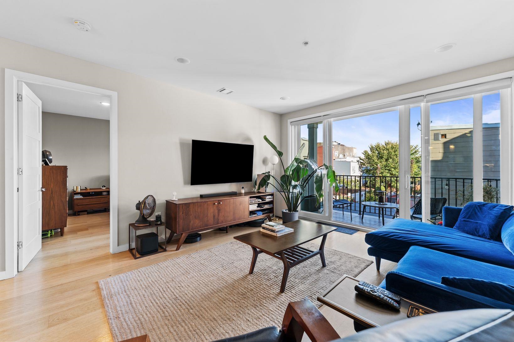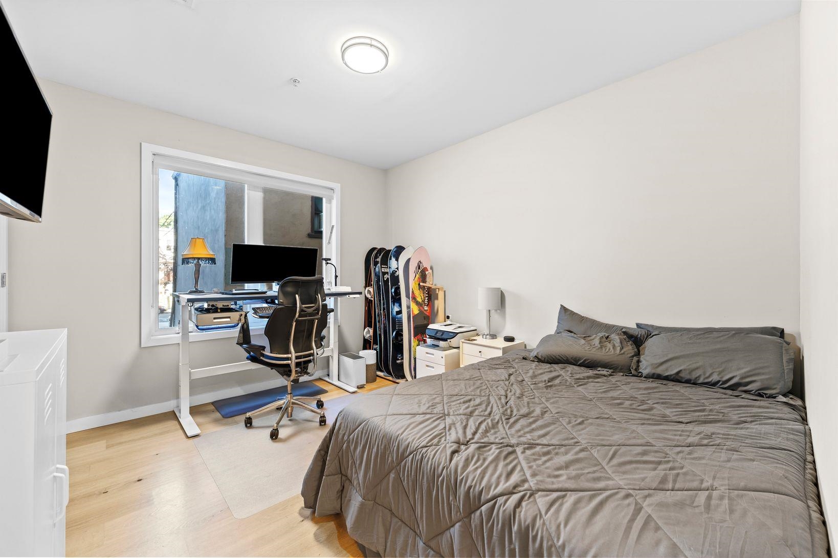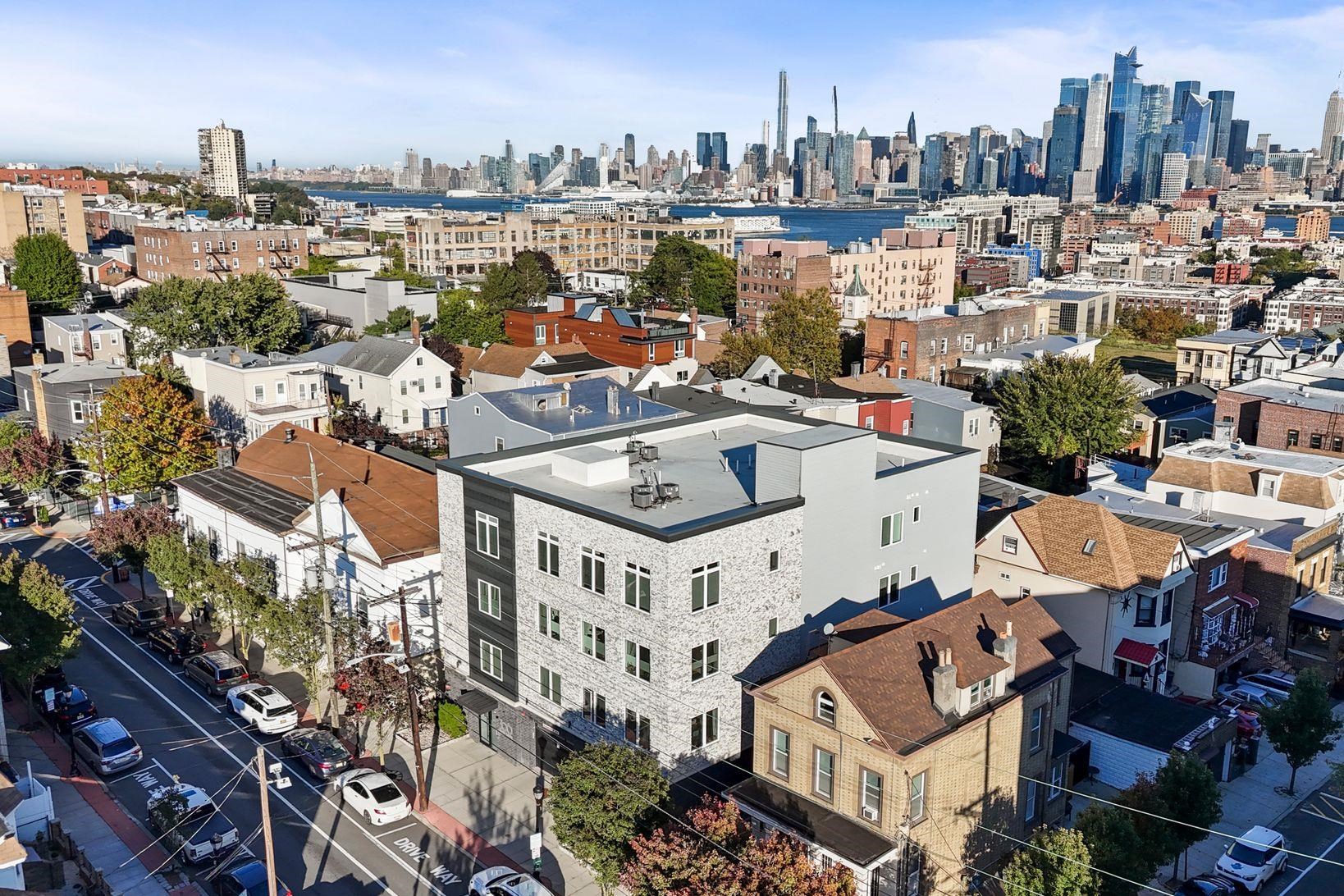 Bright & spacious 2 bedroom, 2 bathroom condo in modern 2019 constructed boutique condo building which features garage parking, elevator access and a large shared yard & patio. This second floor unit features luxury finishes throughout with wide-plank wood flooring, designer kitchen & bathrooms, central AC, in-unit laundry, Ring security cam & system, large windows, a large private balcony and more! Large open living room has plenty of room for a dining table and opens up to the kitchen, which features quartz countertops, stainless steel appliances, and a beautiful waterfall peninsula, offering plenty of counter space. Primary bedroom includes an en suite with a double vanity, glass enclosed shower and a rain shower head. Second bedroom is spacious and includes a walk-in closet with an infrared sauna. Situated on the border of Hoboken and Jersey City Heights, the neighborhood is known for its rich cultural heritage, vibrant arts scene, walkable streets, local shops, restaurants, parks, and sweeping views of the Manhattan skyline from atop the Hudson Palisades. Washington Park’s multi-million dollar renovation includes 10 tennis courts, 2 pickleball courts, basketball courts, a large playground, a splash pad, dog park, picnic benches, walking trails and more! Commuters will love the quick access to New York City: NJ Transit buses provide frequent service to Port Authority in 20 - 30 minutes. You’re also just a couple of blocks to the 9th St Light Rail, which can get you to the PATH train or to downtown Hoboken / Jersey City. For drivers, Route 495 and the Lincoln Tunnel make car commutes into Manhattan a breeze. Whether you’re seeking urban convenience, cultural vibrancy, or an affordable alternative to Manhattan / Hoboken living without sacrificing space or comfort, this home delivers with style, location, and unbeatable access to everything the area has to offer.