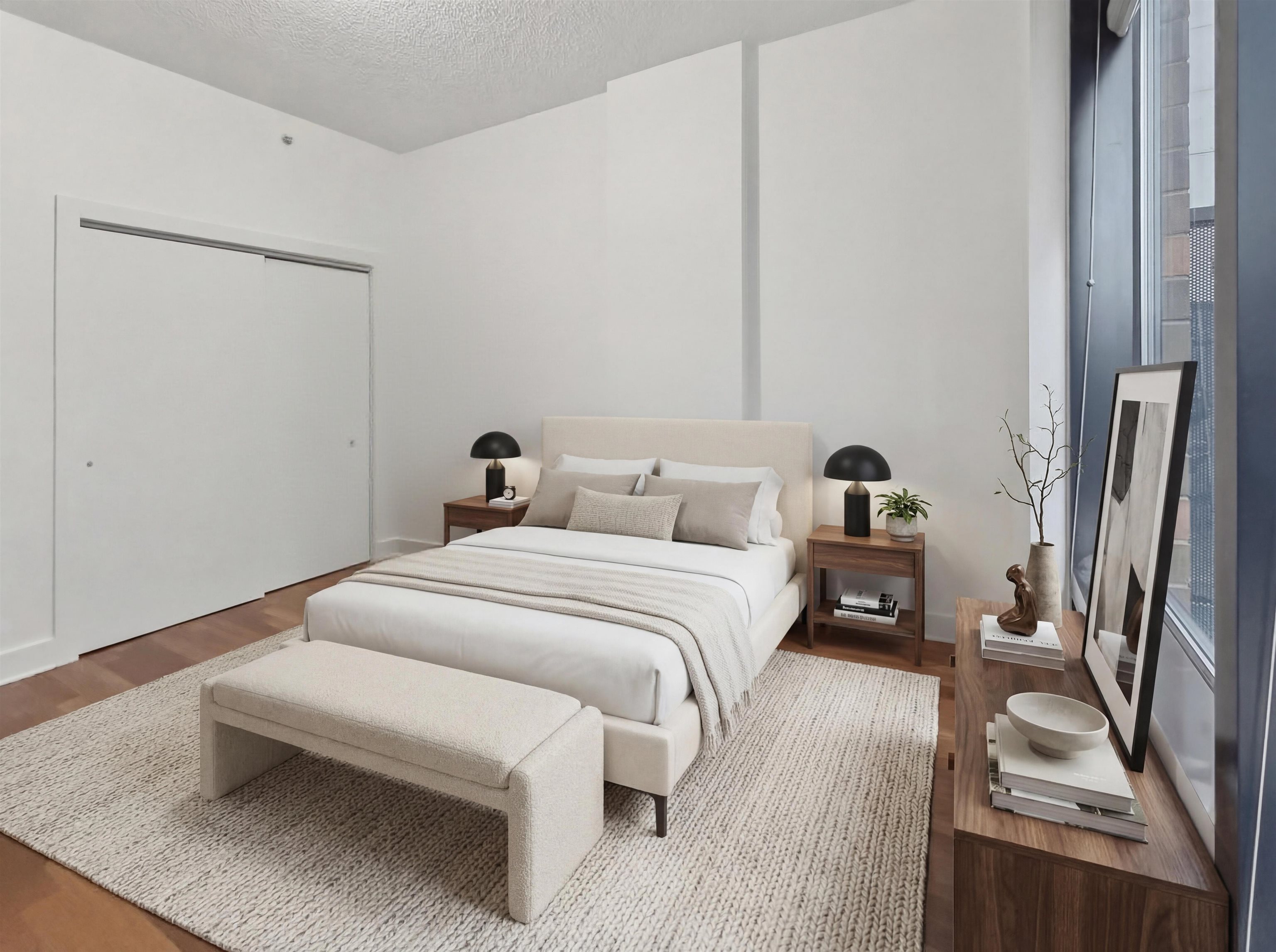 Spacious one bedroom with high ceilings and balcony at the fabulous Waldo Lofts elevator building situated in the historic Powerhouse Arts District of Downtown Jersey City. This well laid out apartment offers an updated kitchen and bath, breakfast bar, dining area, floor to ceiling windows, large balcony, dishwasher, central air, gleaming HW floors, in-unit washer dryer and ample storage space. Luxury elevator building with onsite fitness center, unique gallery lobby and bike storage. Daycare, supermarket and pilates and yoga studio just next door. Located a few blocks from the Grove Street path, farmers market, coffee house, restaurants, shops and the scenic waterfront. Basic internet included. This home checks all the boxes! Available for immediate move-in. Pets considered on a case by case basis. 1.5 security deposit. Some of the photos are virtually staged.
