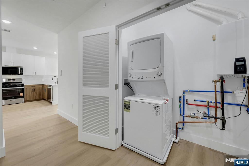 Welcome to Lyndhurst's newest residences @255 Ridge Road- commuters delight with new train station 10 min away and bus to NYC across the street! This "Lafayette" unit boasts 910 sq ft, 9' ceilings and consists of Living room dining room combo, den, King size bedroom with walk in closet with shelving and organizers, laundry closet and large bathroom. Gourmet kitchen has quartz countertops, tiled backsplash, stainless steel appliances-microwave, dishwasher, gas stove and refrigerator, private covered balconies, Washer and gas dryer included, high efficiency gas heat and central ac, gas tankless hot water heater, luxury plank flooring, operable Andersen Windows, window shades, tiled baths with U shape vanity drawer and lighted mirrors, LED lighting. Shelving in guest and linen closets. Maximum of 2 occupants. Choice of FIOS or Comcast as internet and TV provider. Parking available starting at $200 per space per month, storage units in basement available starting at $85 per month. Pet policy- max 2 pets combined weight of 50lbs at $50 per month per pet- breed restrictions apply. Non smoking building-no smoking of any kind-including "medical" in unit or on property. Landlord requires rental application, proof of ability to pay and acceptable full credit report (score of 720 or higher). Shoprite mall and stores just around the corner!
