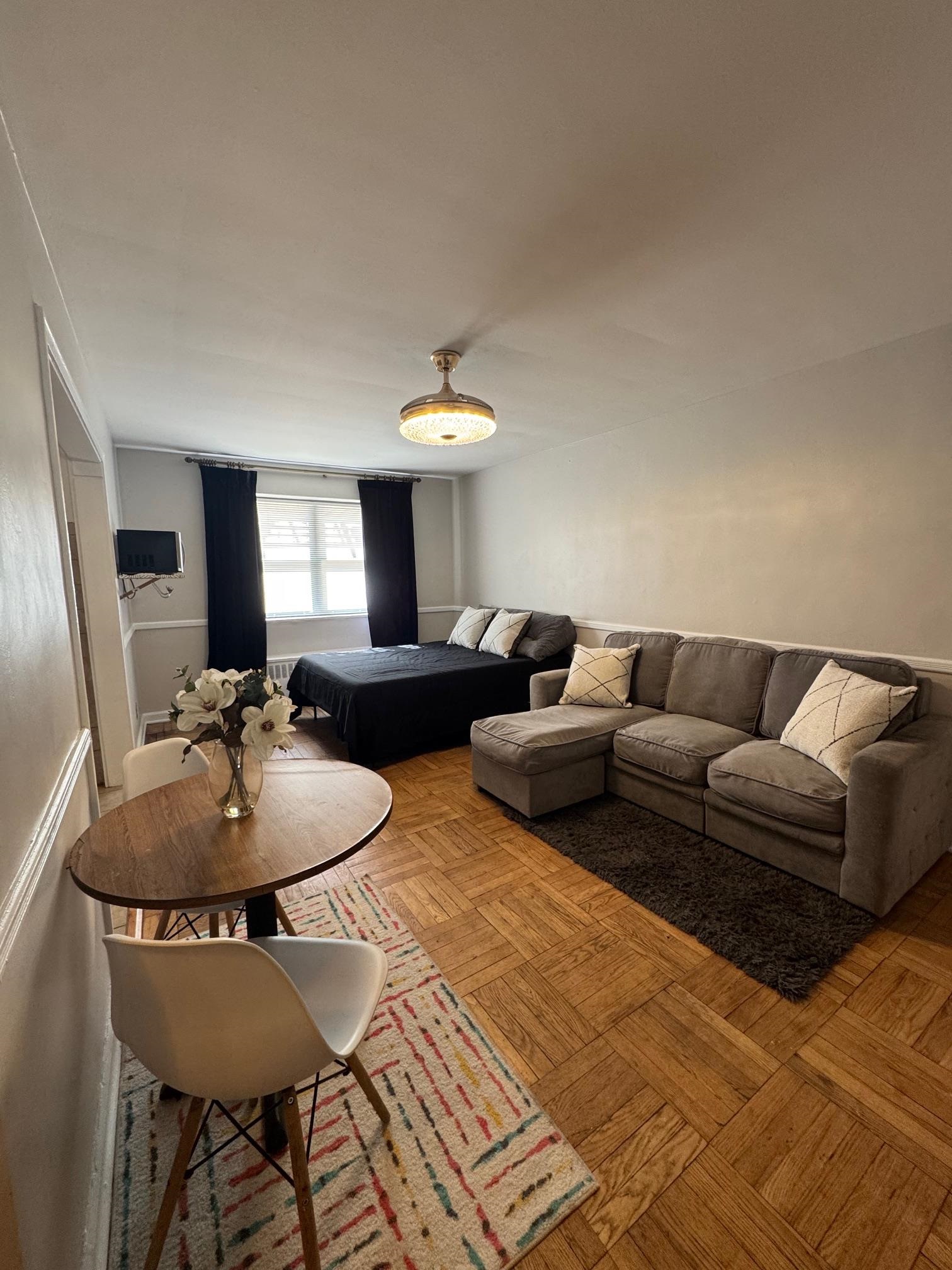 Updated studio condo in a prime Jersey City location just blocks from Journal Square PATH, offering an easy commute to Manhattan. Located in an elevator building, this bright residence features new windows, original hardwood flooring, a modern kitchen, and a renovated bath, creating a clean, move-in ready space. The studio offers a spacious open layout with a large living and sleeping area, along with two oversized closets providing excellent storage. The building features elevator access, on-site laundry facilities, and a shared outdoor courtyard. An assigned garage parking space is available for an additional fee. Ideally located near St. Peter’s University, parks, shopping, dining, and multiple bus lines, with quick access to Journal Square PATH for a convenient NYC commute.Enjoy low monthly HOA fees of $377, which include heat and hot water, along with low estimated annual taxes of approximately $3,537, helping keep monthly carrying costs affordable. This is a great opportunity for a first-time buyer, commuter, or investor seeking value in one of Jersey City’s most connected neighborhoods
