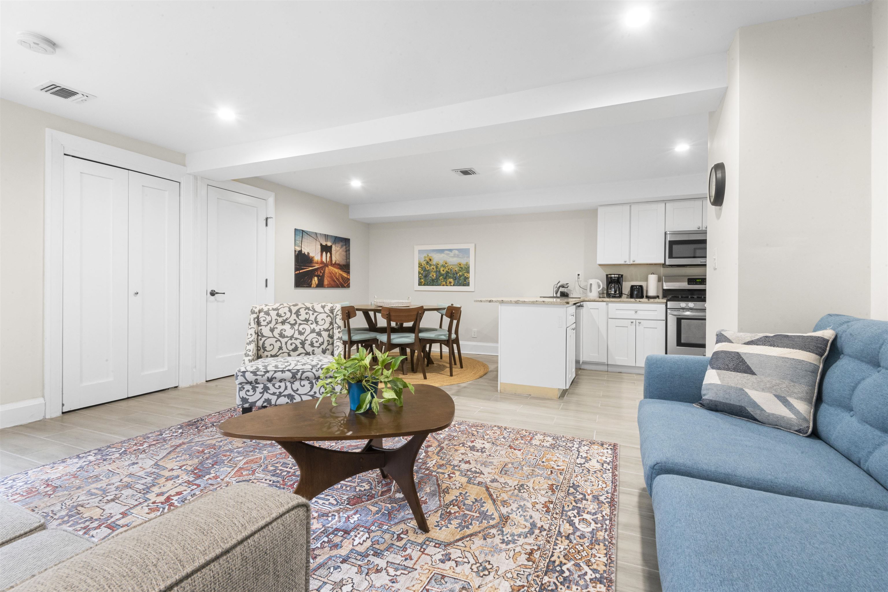 Positioned just off Boulevard East and a block from James Braddock Park in the highly sought-after Woodcliff section of North Bergen, this oversized legal two-family home offers exceptional scale, flexibility, and lifestyle appeal. The owner’s residence is thoughtfully designed across two expansive levels. The main floor features a generously sized chef’s kitchen, formal dining room, spacious living room, guest bath, and a well-appointed primary suite with its own bath. Upstairs, you’ll find a second living area, three full bedrooms plus a den, and two additional full bathrooms—an ideal layout for both everyday living and entertaining. Vaulted ceilings and abundant closet space enhance the sense of openness throughout. The second unit, located on the lower level, offers a comfortable two-bedroom, one-bath configuration—perfect for rental income or extended family. Outdoor living is equally compelling, with a private backyard for gatherings and a unique rooftop space atop the two-car garage boasting stunning Manhattan skyline views. Additional highlights include a three-zone A/C system, central vacuum, dedicated laundry room, attic storage, and convenient access to NYC transportation just half a block away. Close proximity to shopping, dining, Hoboken, and major commuter routes completes the package. A rare opportunity to own a versatile, high-capacity home in one of North Bergen’s premier locations.