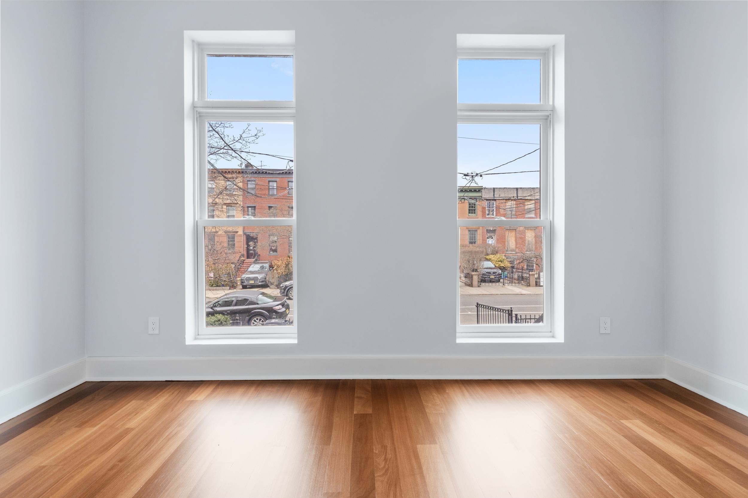 Nestled on the tree-lined and storied Doctor's Row, this beautifully converted brownstone condo offers the perfect blend of classic charm and modern comfort. With rich cherry wood floors, the home exudes warmth and character from the moment you step inside. The thoughtfully designed split-bedroom layout offers rare privacy, with two full bathrooms and generous living spaces that feel both open and intimate. The window kitchen fills the heart of the home with natural light, making everyday moments feel special. Practicality meets luxury with a private driveway parking spot (a true Jersey City treasure), plus the convenience of an in-unit washer/dryer. No shared laundry rooms, no parking headaches — just easy, effortless living. And the location? Simply unmatched. Stroll to Hamilton Park, browse the boutiques and cafés lining the Newark Avenue Pedestrian Plaza, or hop on the Grove Street PATH for a quick commute to Manhattan — all within minutes. Set on one of downtown Jersey City's most desired and picturesque streets, this home places you in the center of a vibrant, historic neighborhood that truly has it all.