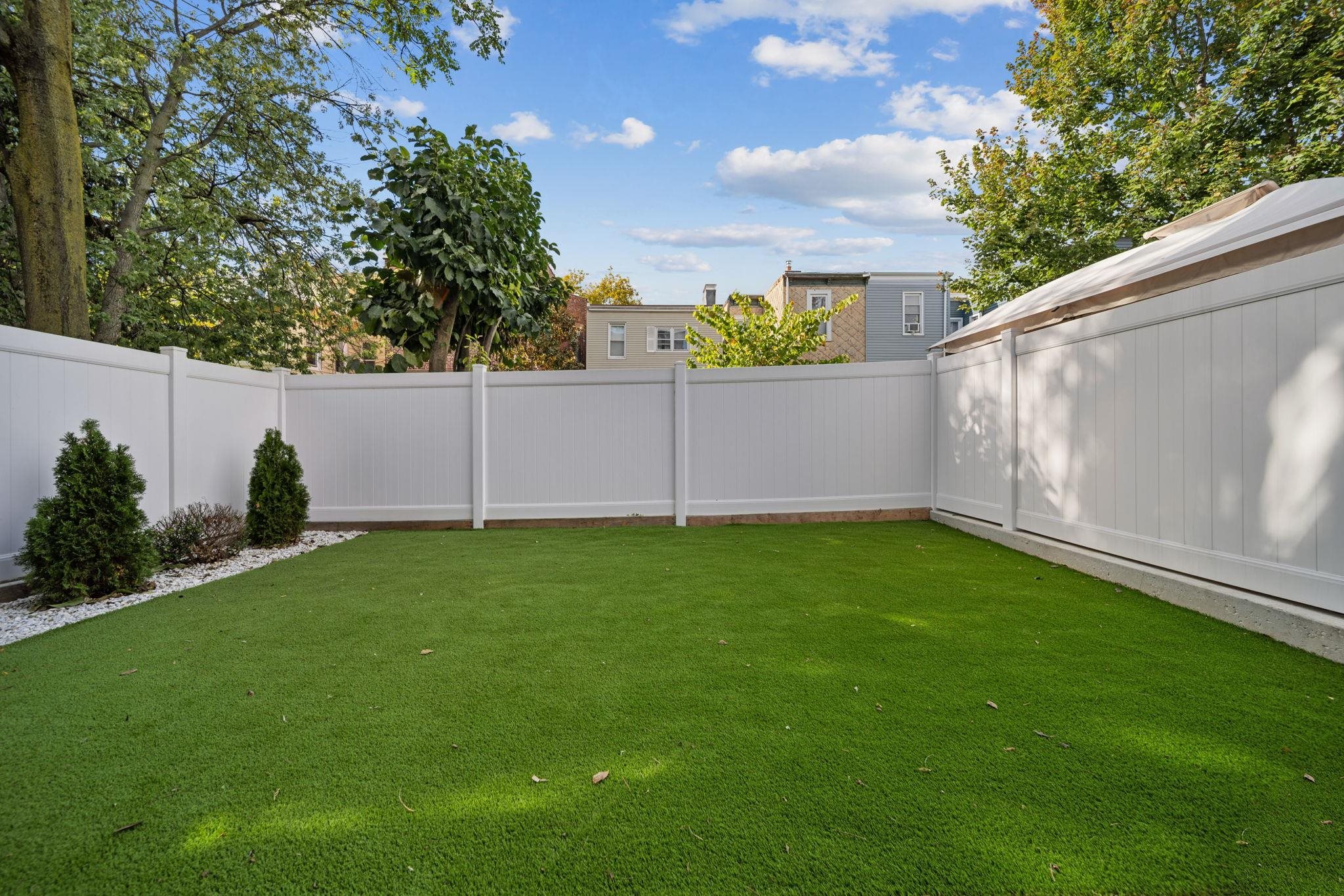2-YEAR FREE PARKING. RATE BUY DOWN WITH RATES AS LOW AS 4.875%. Terms and eligibility apply-- please inquire for details. MOMENTS FROM CONGRESS ST LIGHT RAIL STATION AND RIVERVIEW FISK PARK. Welcome to 373 New York Avenue, Jersey City — Blue Chip Properties’ most iconic and sought-after project to date. This stunning 3-bedroom, 2-bathroom duplex home is located in the highly desirable New York Avenue enclave, known for its close proximity to the 9th Street Light Rail, Riverview-Fisk Park, Hoboken, and the gourmet dining scene of Palisade Avenue. Designed with timeless interior finishes, high-end fixtures, and meticulous craftsmanship, this residence also offers cutting-edge modern technology for elevated daily living. The main entrance opens to a grand open-concept dining and living area with soaring ceilings, oversized Andersen energy-efficient windows, abundant natural light, and a statement-making realistic flame fireplace. The chef’s kitchen is outfitted with designer two-tone cabinetry, Thermador appliance package with paneled refrigerator and dishwasher, 5 burner range, and heating drawer. The oversized double waterfall quartz island showcases luxurious West Elm accent lighting, along with porcelain backsplash with a convenient Pot Filler, and an externally vented hood. Flowing seamlessly from the kitchen is your entertainment zone featuring a wet bar with custom cabinetry, backlit designer backsplash, and wine fridge. The primary suite is a serene retreat featuring custom warm wood-tone millwork, bedside pendant lighting, a walk-in closet with built-ins. Sliding glass doors open directly to the private backyard, blending indoor comfort with outdoor living. The spa-like ensuite bath showcases modern natural tones, an oversized double vanity, soaking tub, warm pendant lighting, and a luxurious shower with multiple Kohler body sprays and rainfall showerhead. The two additional bedrooms include custom-finished closets and share a beautifully appointed full bath with double vanity and floor-to-ceiling tiles. A separate laundry room with top-of-the-line washer and dryer completes the main level. This fully equipped smart home includes a Google Nest doorbell, security cameras, Google Smart Hub, smart thermostat, touchscreen light switches, dimmers, and more — all seamlessly controlled via smartphone, along with a security camera system. The home is completed with Blue Chip Properties’ signature exterior facade and professional landscaping. Property includes a 10-year builder’s warranty. Square footage is approximate. Offsite parking is available, inquire further.
