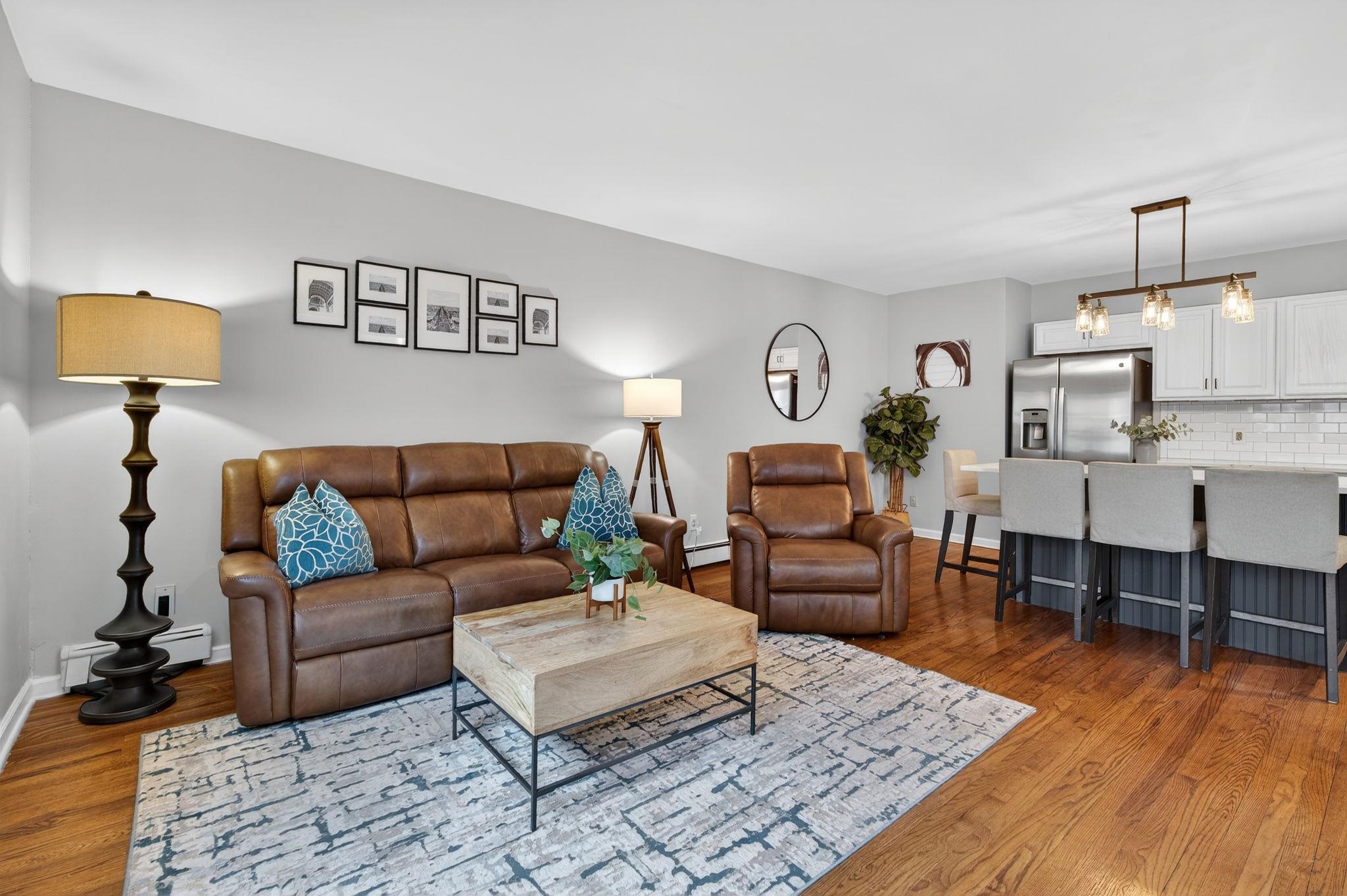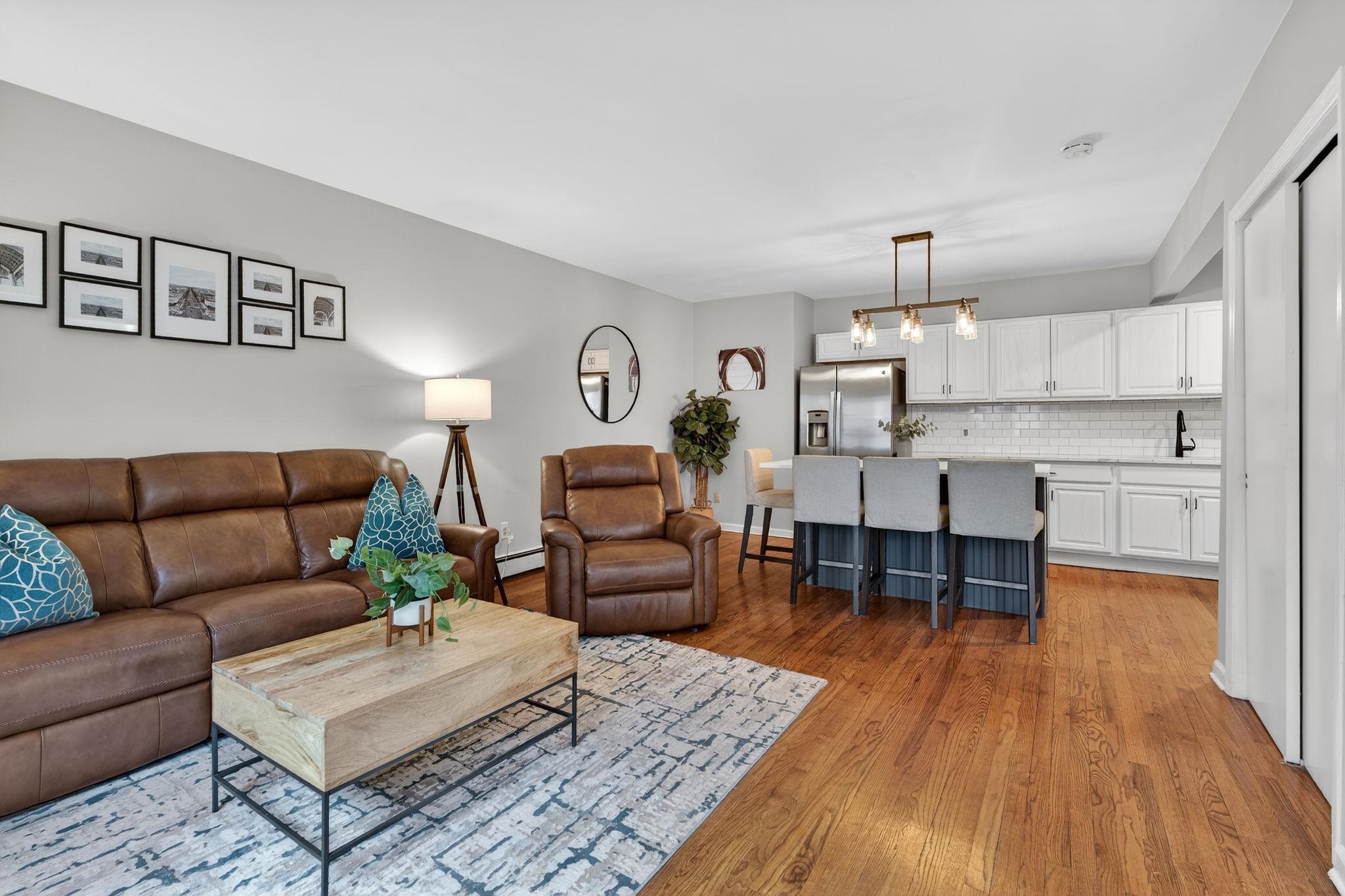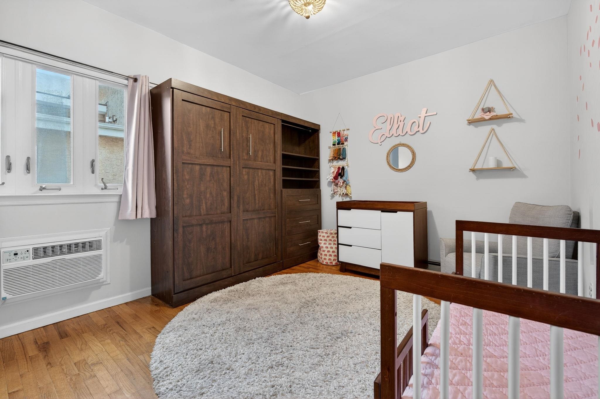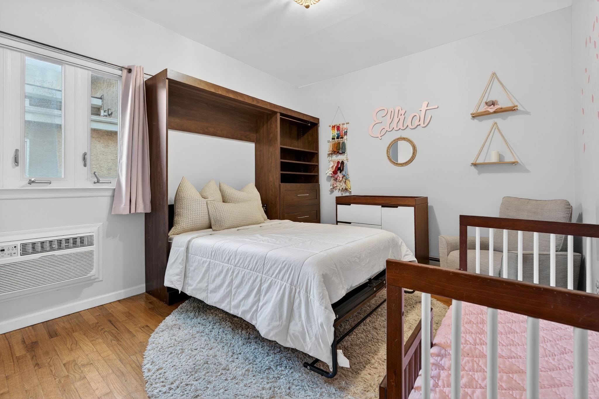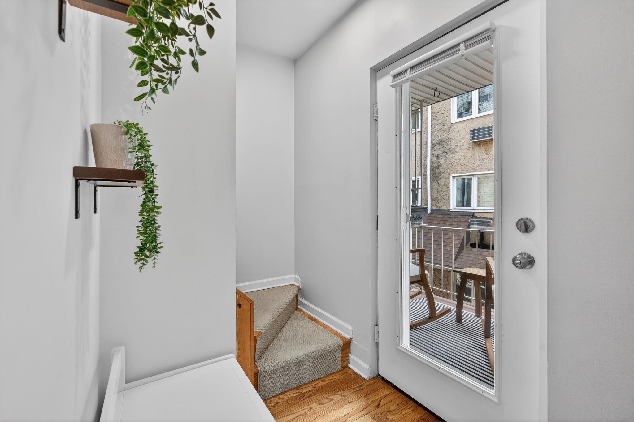 Welcome to 556 1st Street #4, a beautifully maintained two bedroom, one bath duplex home offering 1143sqft and a private terrace located in downtown Hoboken. This spacious and thoughtfully designed residence offers the perfect combination of comfort, functionality, and the vibrant lifestyle that makes Hoboken one of the most desirable communities to plant roots in. Upon entering, you are welcomed by an open and airy living area creating a warm and inviting atmosphere ideal for both everyday living and entertaining. The kitchen is designed with both form and function in mind, featuring ample cabinetry, generous counter space, and modern updated appliances that make cooking and hosting effortless. Whether preparing a quiet meal at home or entertaining guests, the layout flows seamlessly into the living area, allowing for easy interaction and comfortable living. The bedrooms can be found on the second level are generously sized and provide peaceful retreats, each offering closet space and flexibility for a variety of lifestyle needs, including the possibility of a home office or guest space. The second bedroom offers a beautiful built in Murphy bed for added convenience and guest sleeping and added storage solutions. Updated bathroom is designed with clean finishes and functionality, providing both comfort and ease. Additional highlights of the home include hardwood flooring throughout, in-unit laundry room, on demand hot water heater and a private terrace that overlooks the common courtyard. This home offers a quiet, private feel while still being positioned within a boutique building that reflects Hoboken’s classic charm. Located on desirable 1st Street, this home places you close to everything including easy access to neighborhood parks, local restaurants, coffee shops, grocery store (coming soon), and the expanding west side retail and dining scene. Commuters will appreciate convenient transportation options to New York City, including nearby bus routes, the PATH train, and quick access to major highways. 556 1st Street #4 presents a fantastic opportunity to enjoy comfortable city living in a thriving Hoboken neighborhood that continues to grow in popularity and value. With its inviting layout, desirable location, and move-in ready appeal, this home is a must-see for buyers seeking a spacious home at an affordable price.