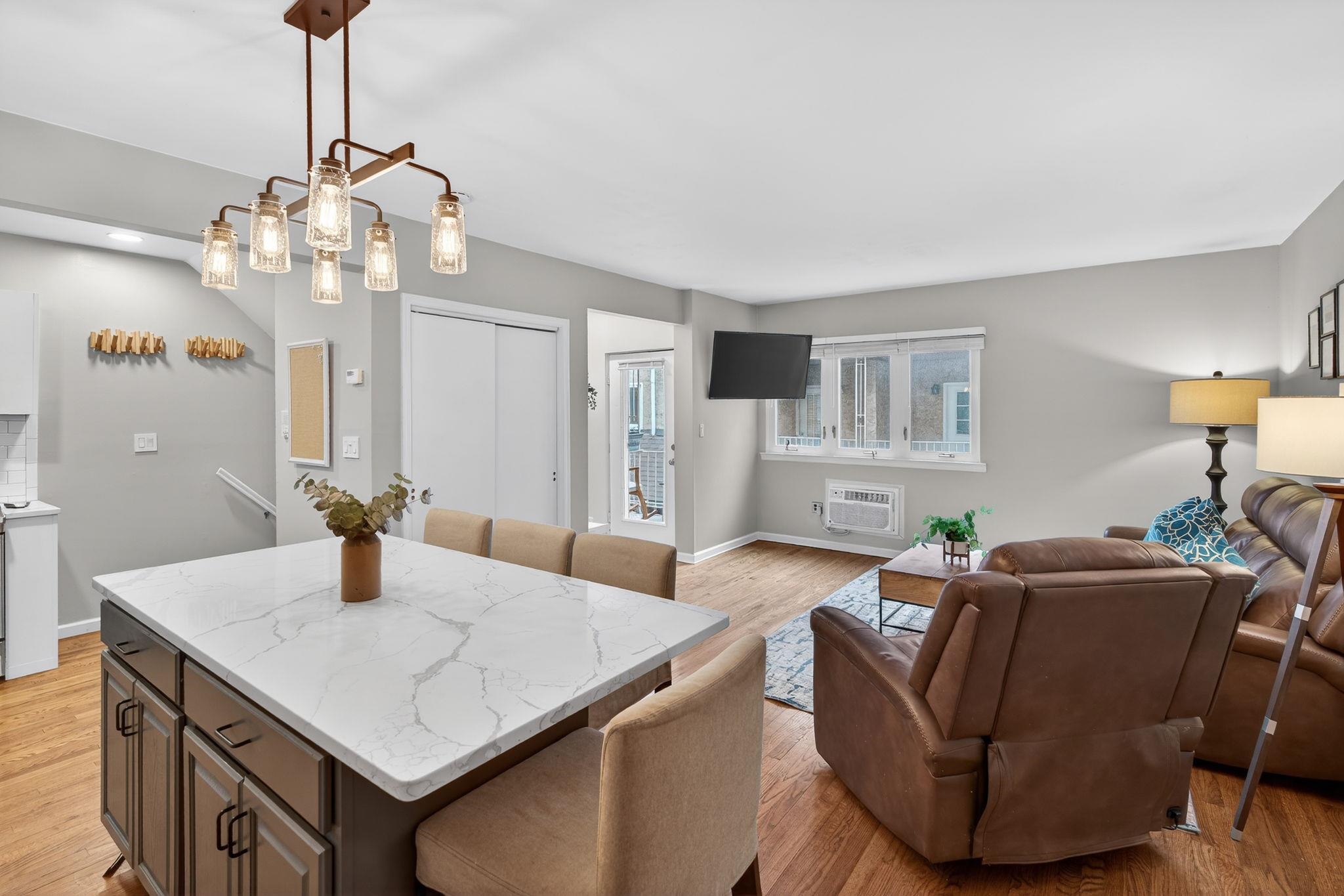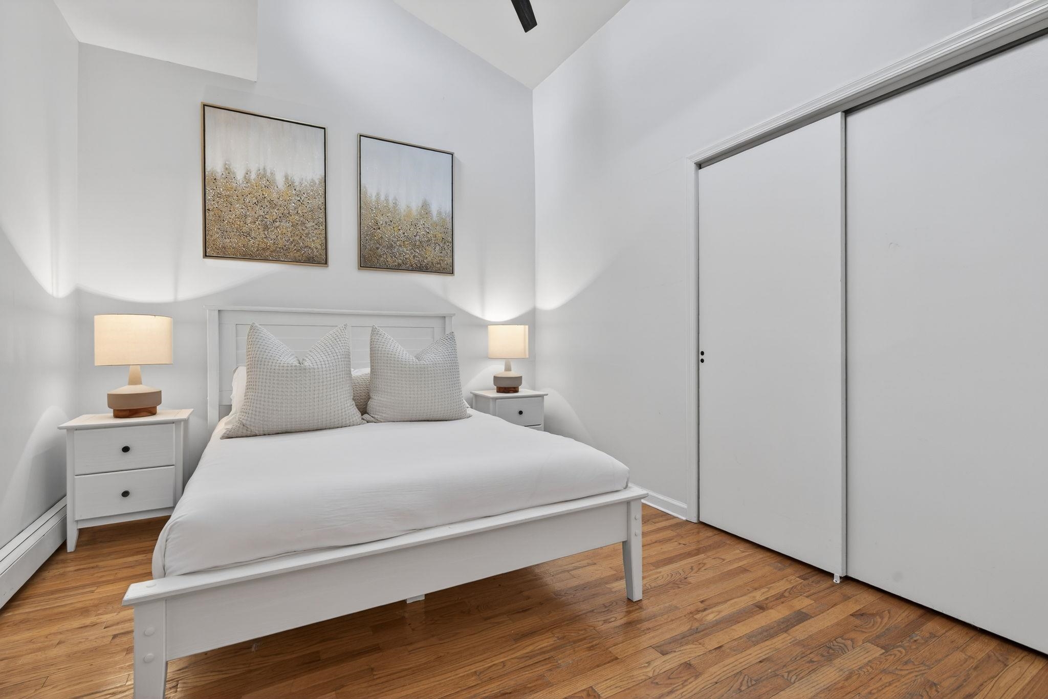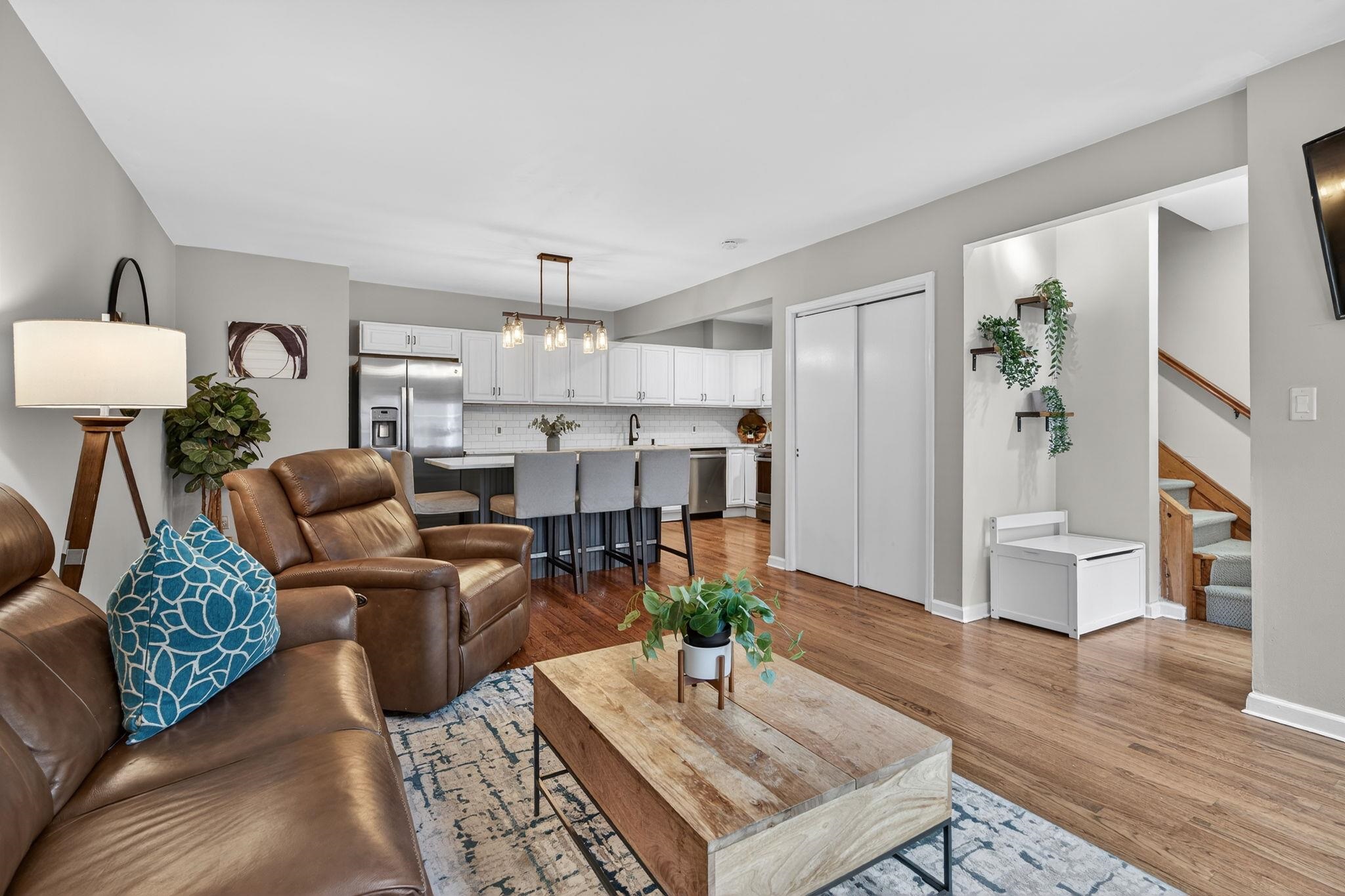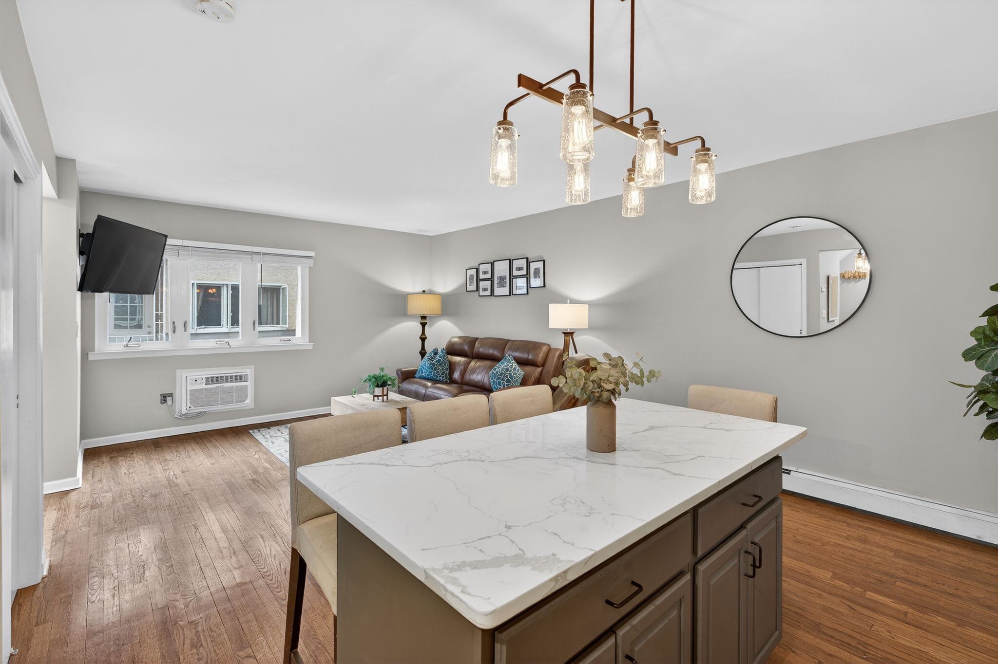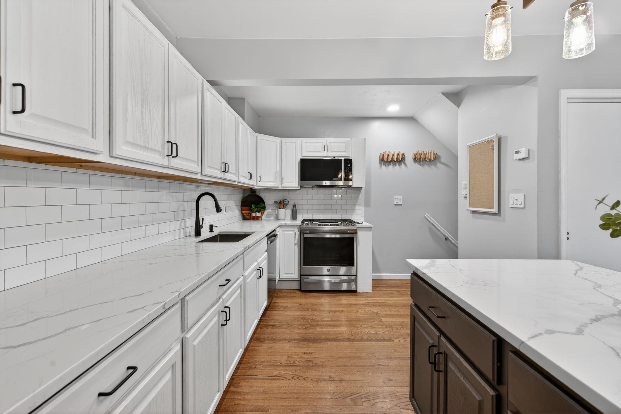 Welcome to 556 1st Street #4, a beautifully maintained two bedroom, one bath duplex home offering 1143sqft and a private terrace located in downtown Hoboken. This spacious and thoughtfully designed residence offers the perfect combination of comfort, functionality, and the vibrant lifestyle that makes Hoboken one of the most desirable communities to plant roots in. Upon entering, you are welcomed by an open and airy living area creating a warm and inviting atmosphere ideal for both everyday living and entertaining. The kitchen is designed with both form and function in mind, featuring ample cabinetry, generous counter space, and modern updated appliances that make cooking and hosting effortless. Whether preparing a quiet meal at home or entertaining guests, the layout flows seamlessly into the living area, allowing for easy interaction and comfortable living. The bedrooms can be found on the second level are generously sized and provide peaceful retreats, each offering closet space and flexibility for a variety of lifestyle needs, including the possibility of a home office or guest space. The second bedroom offers a beautiful built in Murphy bed for added convenience and guest sleeping and added storage solutions. Updated bathroom is designed with clean finishes and functionality, providing both comfort and ease. Additional highlights of the home include hardwood flooring throughout, in-unit laundry room, on demand hot water heater and a private terrace that overlooks the common courtyard. This home offers a quiet, private feel while still being positioned within a boutique building that reflects Hoboken’s classic charm. Located on desirable 1st Street, this home places you close to everything including easy access to neighborhood parks, local restaurants, coffee shops, grocery store (coming soon), and the expanding west side retail and dining scene. Commuters will appreciate convenient transportation options to New York City, including nearby bus routes, the PATH train, and quick access to major highways. 556 1st Street #4 presents a fantastic opportunity to enjoy comfortable city living in a thriving Hoboken neighborhood that continues to grow in popularity and value. With its inviting layout, desirable location, and move-in ready appeal, this home is a must-see for buyers seeking a spacious home at an affordable price.