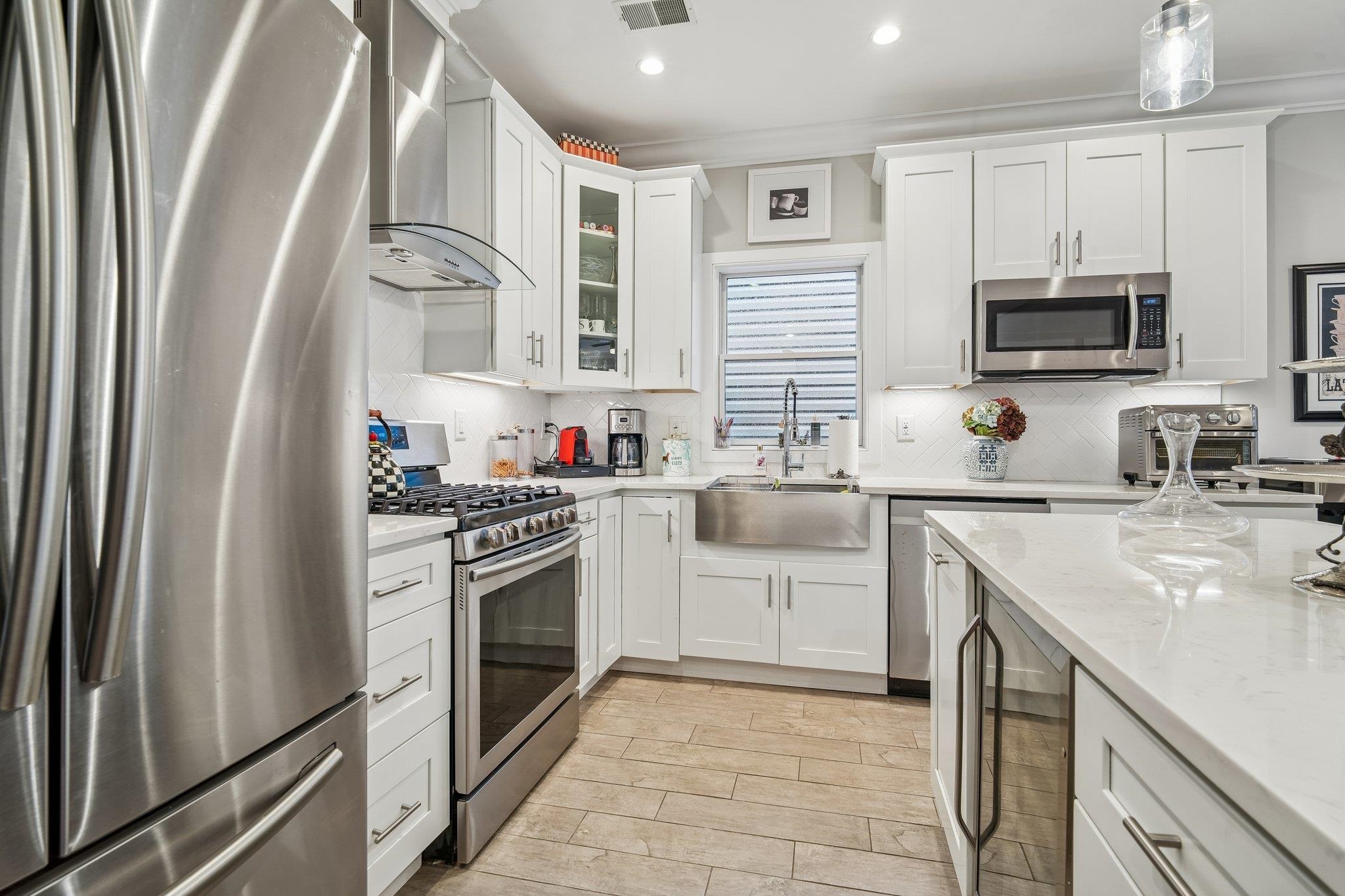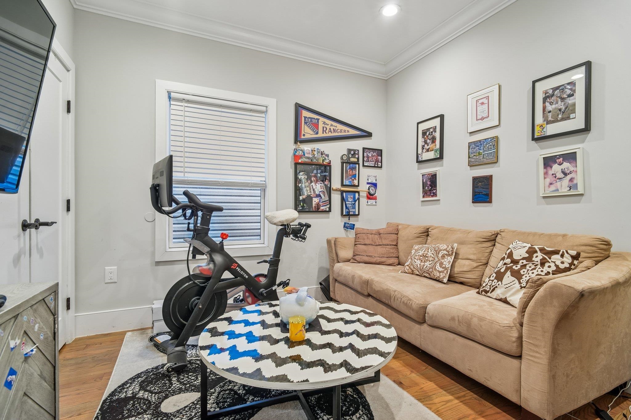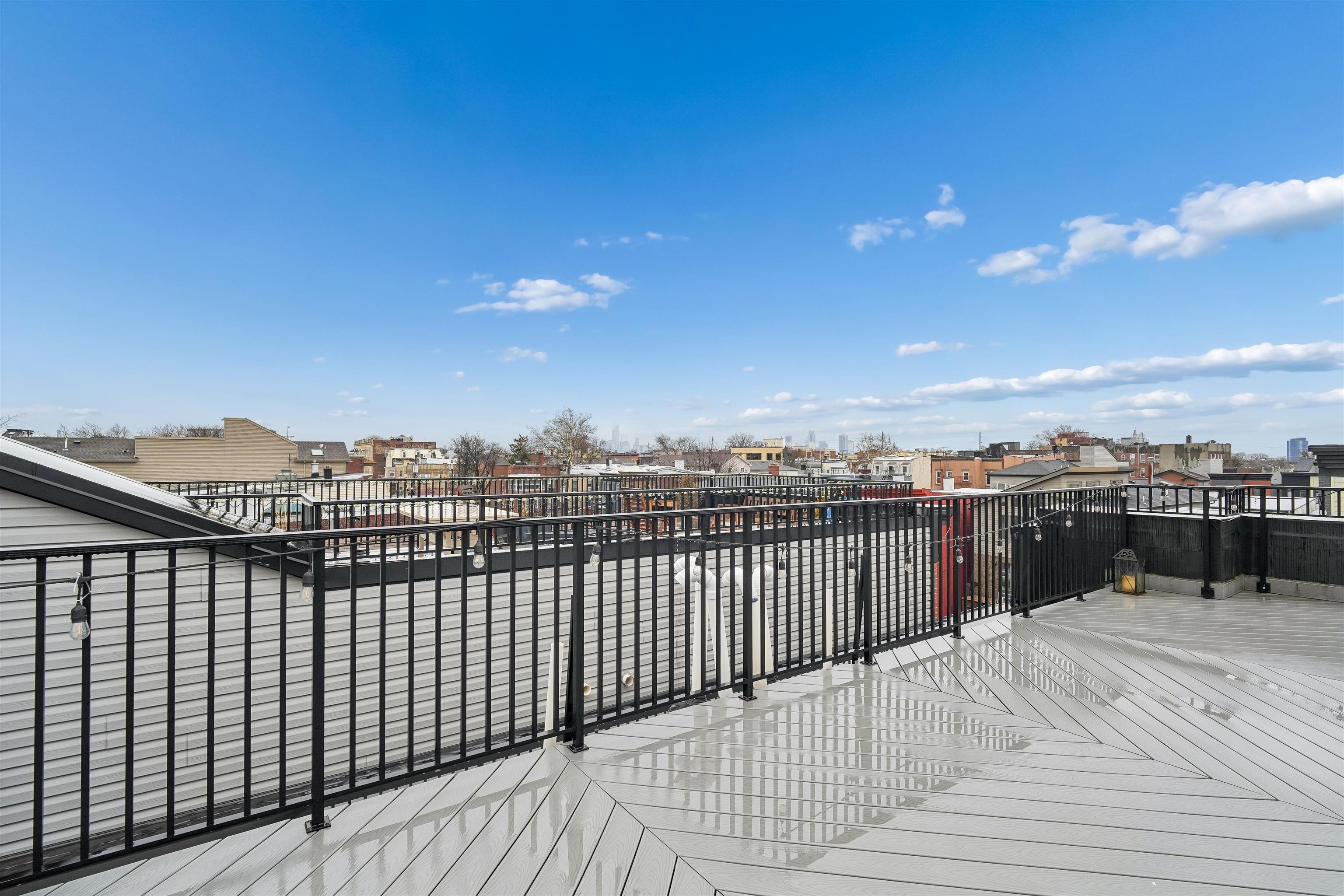 Move right into this stunning condo! Featuring three bedrooms, two baths, parking for two cars, wide crown molding, hardwood floors, custom kitchen and an island with quartz countertops, stainless steel appliances and a wine cooler. Gorgeous spa-like baths with multi jets and shower sprays. Pella transom windows for generous natural light, tankless hot water system, central vacuum, camera security and video intercom door bell. Private 750 square foot rooftop terrace with sound speakers, electric, water and gas line increasing your outdoor enjoyment and eastern NYC view and mountain vistas to the west. Located in JC Heights on a residential city street and low HOA. Conveniently close to NYC transportation, bus to Journal Square PATH or a stroll through the park to the Light Rail Station.