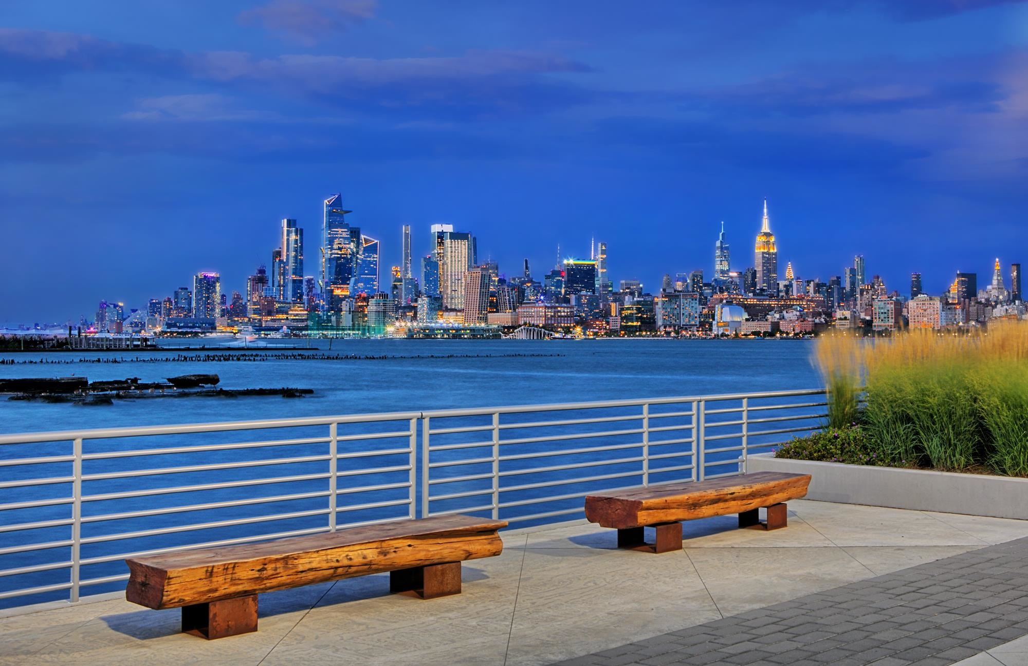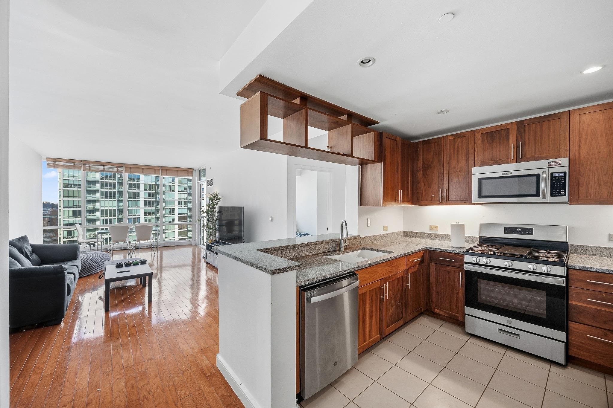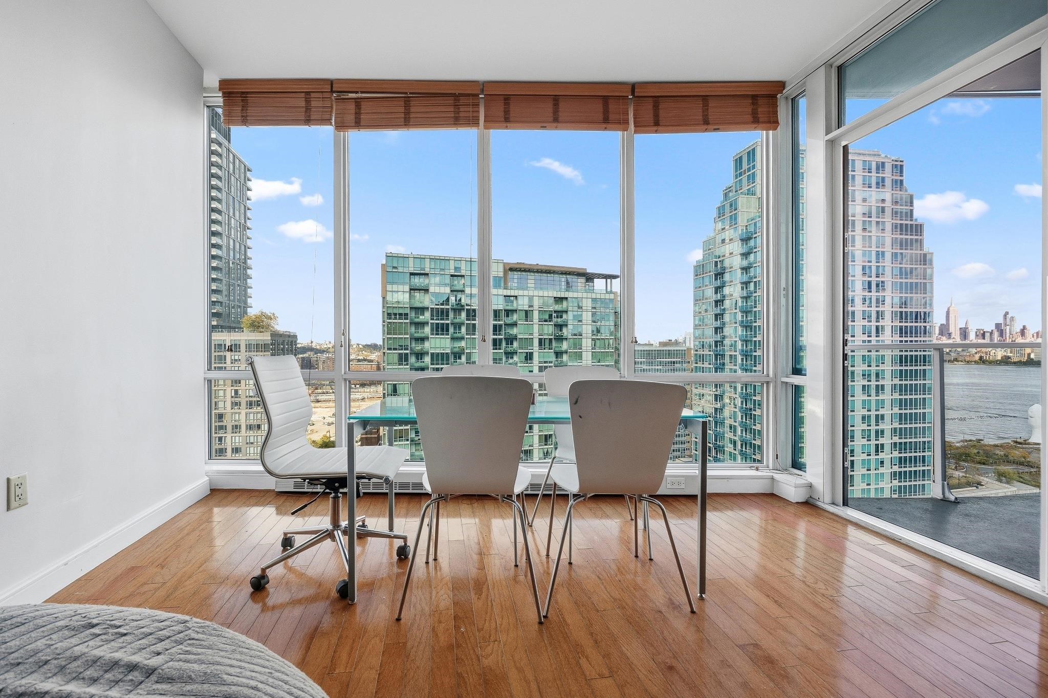 Amazing 2 bed, 2 bath with private balcony and stunning NYC/River views in the luxury community of the Shore Club! Chef’s kitchen includes stainless steel appliances, granite countertops and a breakfast bar. The primary bedroom features a walk-in-closet and a large ensuite bath with a double vanity, shower, and soaking tub. Also included are floor-to-ceiling windows, hardwood floors, in-unit washer/dryer, and central A/C. The luxury community offers 24/7 concierge, a roof top deck and lounge with stunning NYC/River views, conference room, jacuzzi, steam room, sauna, exercise room, and a playroom. Conveniently located near Hoboken & Newport PATH, Morton Williams Supermarket, and mall. Parking is available for an additional fee.