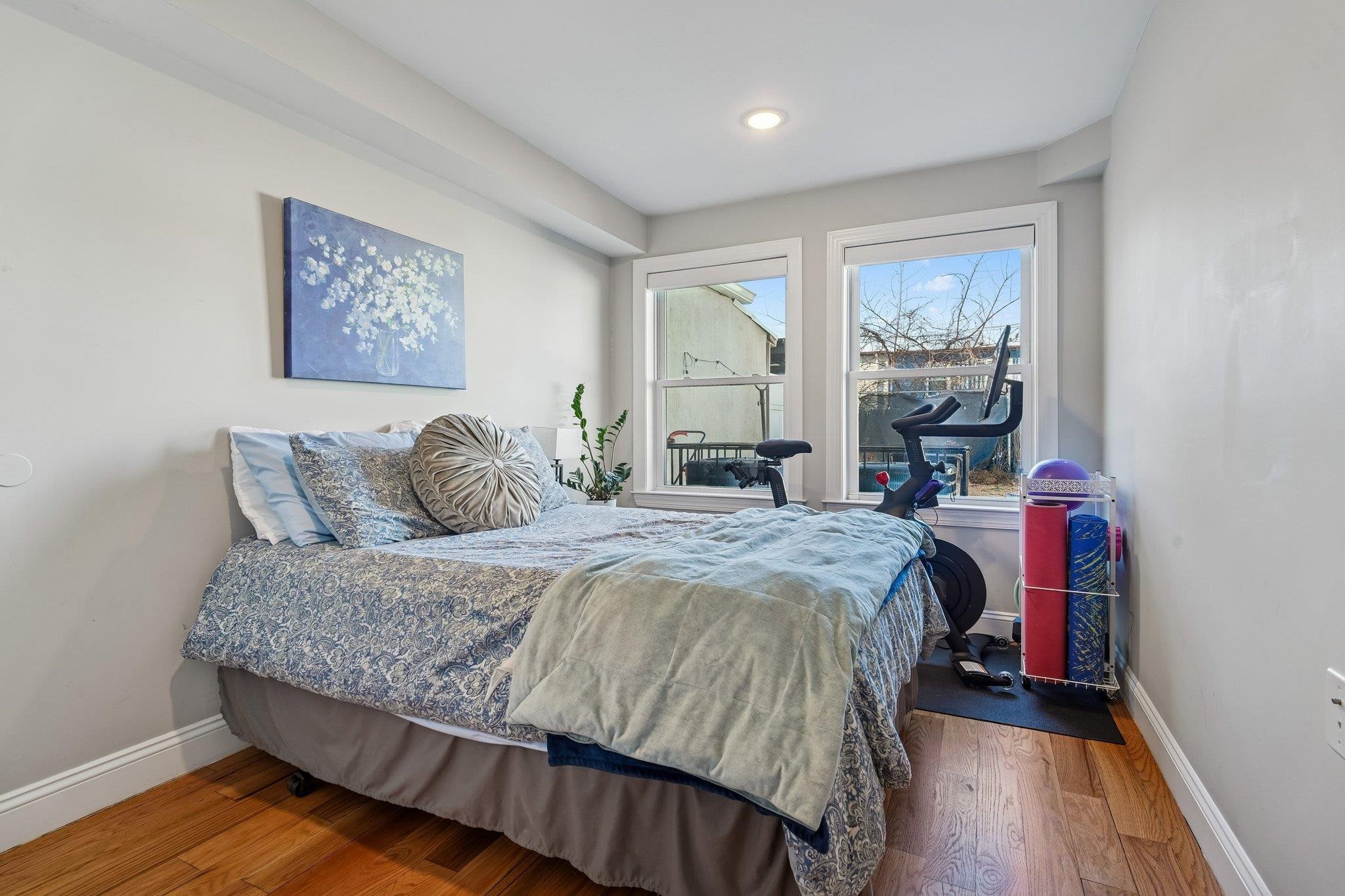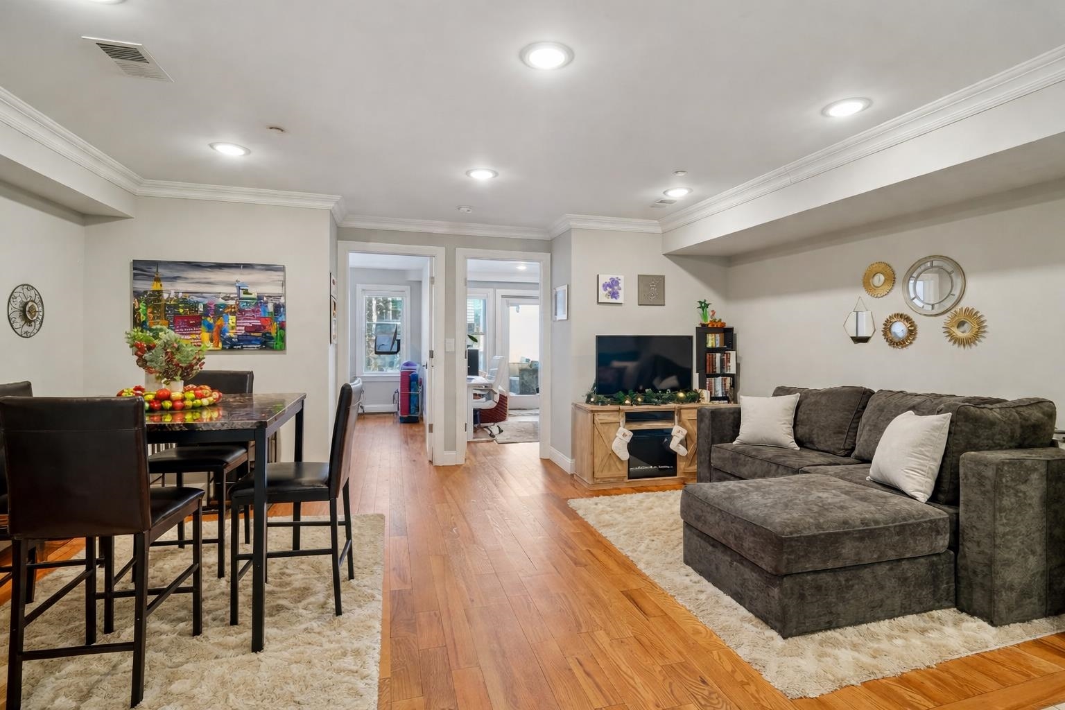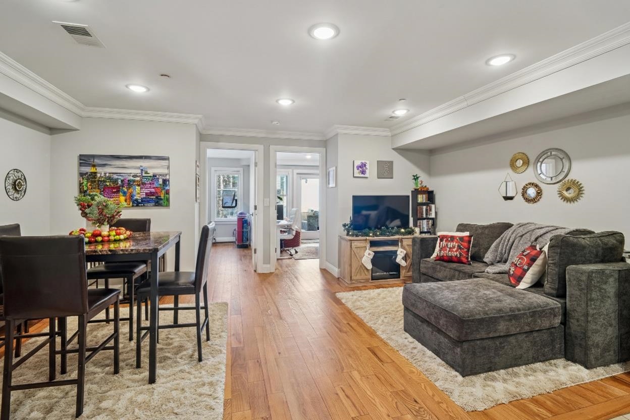 Discover 175 Van Horne St Residence #1, Jersey City NJ, a blend of chique and charming appeal debuts this gorgeous 3-bedroom, 2-bath home in the heart of Bergen-Lafayette, just steps from Berry Lane Park. Featuring a classic brick exterior and thoughtful interior upgrades, the home offers an open layout connecting the living, dining, and kitchen spaces, highlighted by hardwood floors, crown molding, and tray ceilings. The kitchen is equipped with cherry cabinets, quartz countertops on a peninsula island, stainless steel appliances, and a stylish tile backsplash, ideal for both everyday meals and entertaining. The split-bedroom layout provides privacy, with a primary suite on one side and two additional bedrooms on the other, including one with direct access to a private backyard, perfect for relaxing or gatherings, or even bonding with your furry friend. Both bathrooms are generously designed with floor-to-ceiling tile, spacious vanities, and either a shower or soaking tub. Additional conveniences include a dedicated in unit laundry and downstairs storage. With easy access to downtown Jersey City, Light Rail stations for your commute to Manhattan, boutique shops, restaurants, and nearby parks, this home offers the perfect blend of modern comfort and urban convenience. This property qualifies for a special first-time homebuyer program with extremely attractive lending terms for qualified buyers—currently offering a 5.375% rate (APR 5.441%) with no points, no PMI, and no bank fees. Rates are subject to change. This may be the opportunity that earns you the right to call this wonderful place HOME.