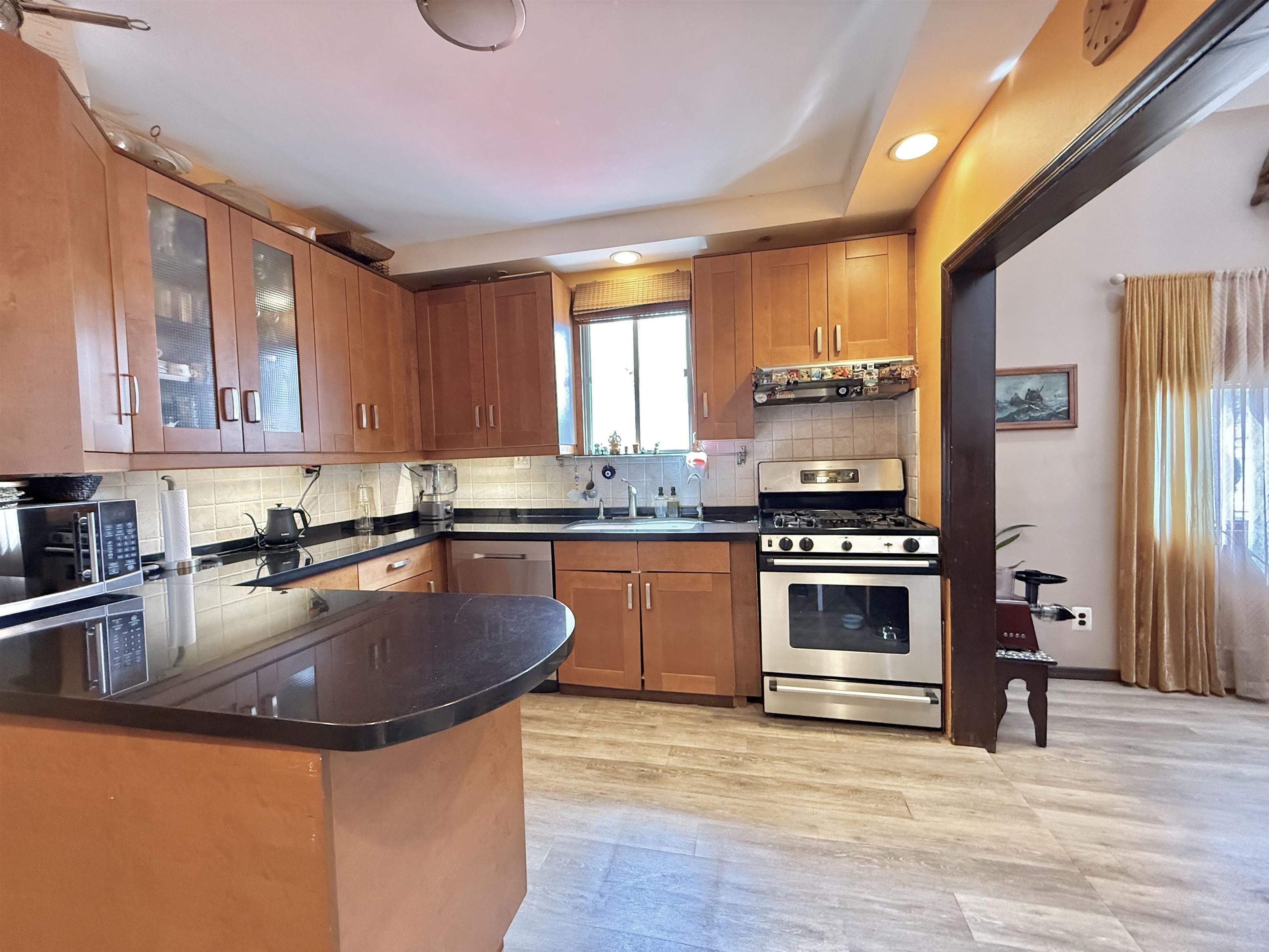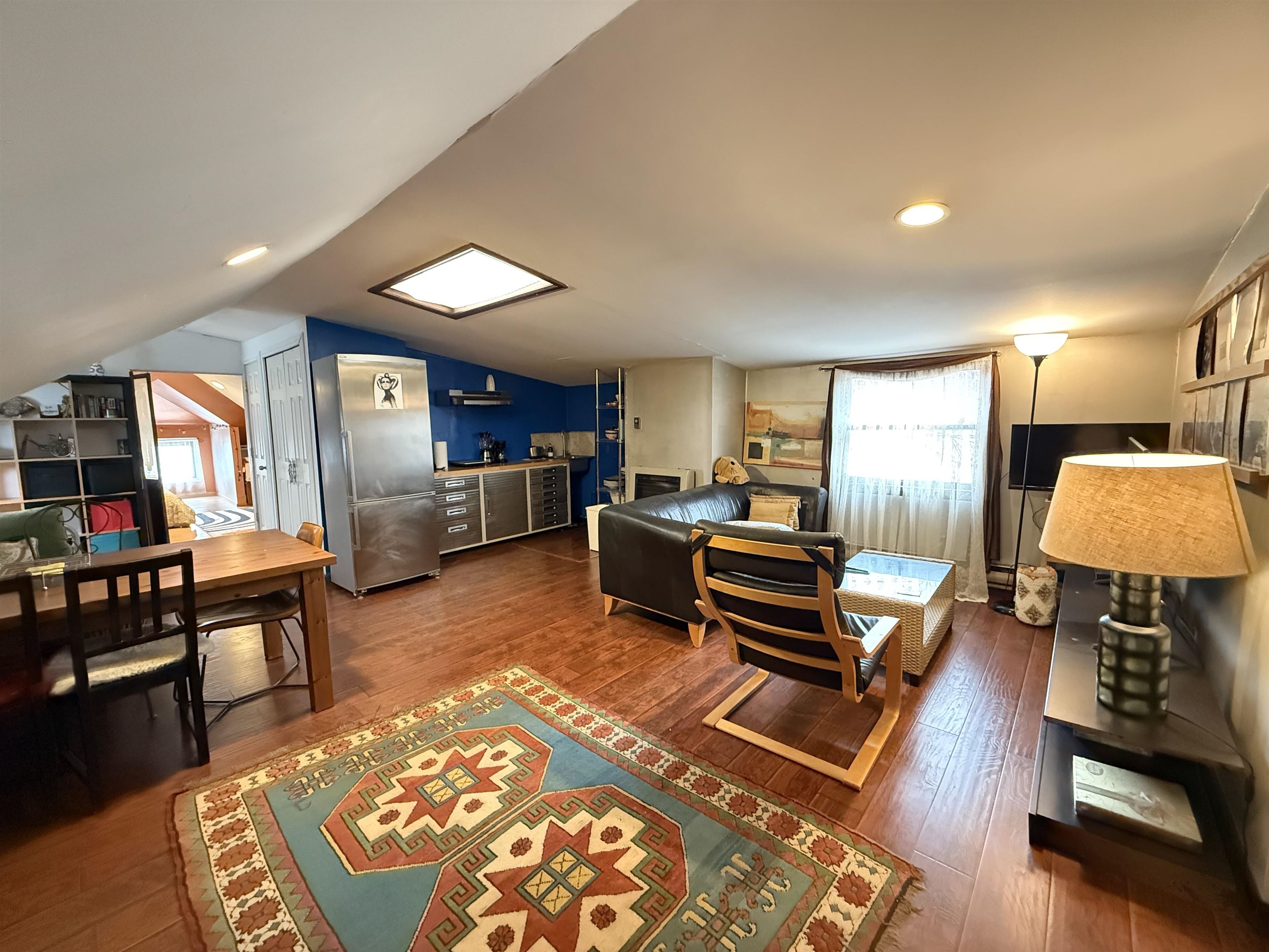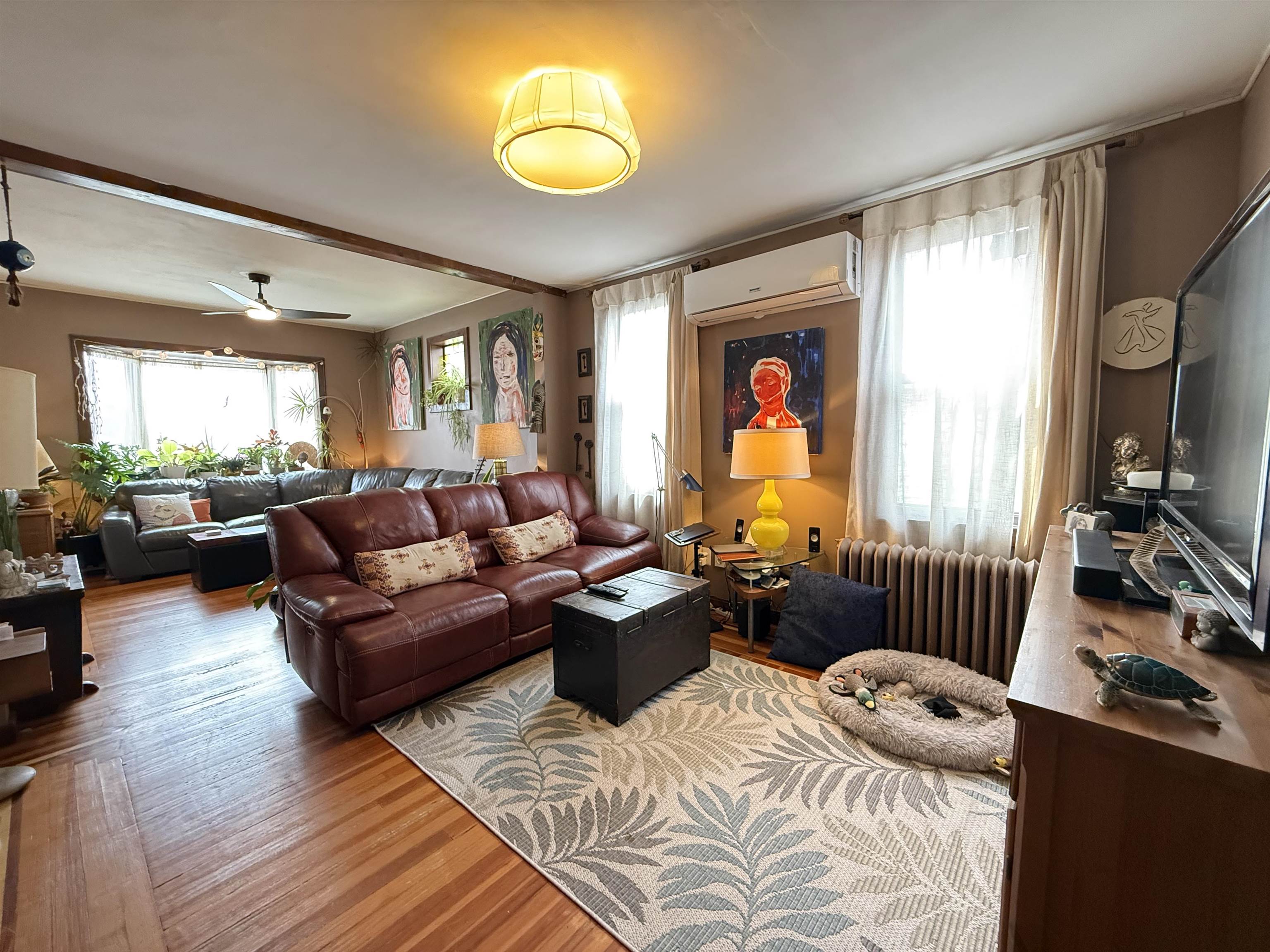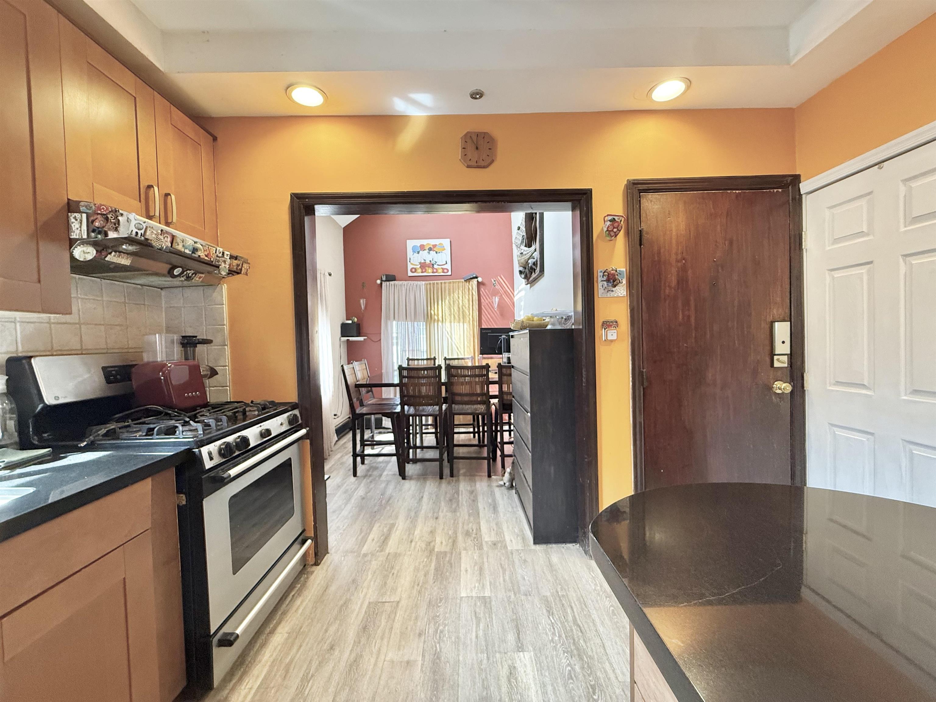Well-maintained 5-bedroom, 4-bath two-family home located in a charming residential neighborhood on a 50 x 100 lot. This versatile property features a long driveway, a shed, and a unique workshop space with its own private exterior entrance, perfect for hobbies, storage, or creative use. The first unit is a spacious duplex spanning the first and second floors. The main level offers a welcoming entrance foyer, generous living and dining rooms, three well-sized bedrooms, an eat-in kitchen, and a full bathroom. The second level includes an additional bedroom, a full bath, and an expansive family room with a dedicated office area, skylight, and direct access to a deck overlooking the private backyard. The second unit features a private rear entrance with a patio and is partially above and below ground level. It offers a comfortable layout with one bedroom, a kitchen, a living/dining area, and a full bathroom, plus a separate bonus room ideal for entertaining or use as a family room, along with an additional full bath. Additional highlights include two separate heating zones and separate gas and electric utilities. Approx. 1,702 sq ft per tax records, with low taxes of just $6,918. Ideally located for commuters, just a short walk to NYC bus transportation and within walking distance to the town center, shops, restaurants, and parks. Enjoy all that Secaucus has to offer, including community recreation facilities, an outdoor pool, and more; an excellent opportunity for investors or owner-occupants. The seller is willing to lease back both units for 12 months after closing at $2,000 per month per unit, providing immediate rental income.