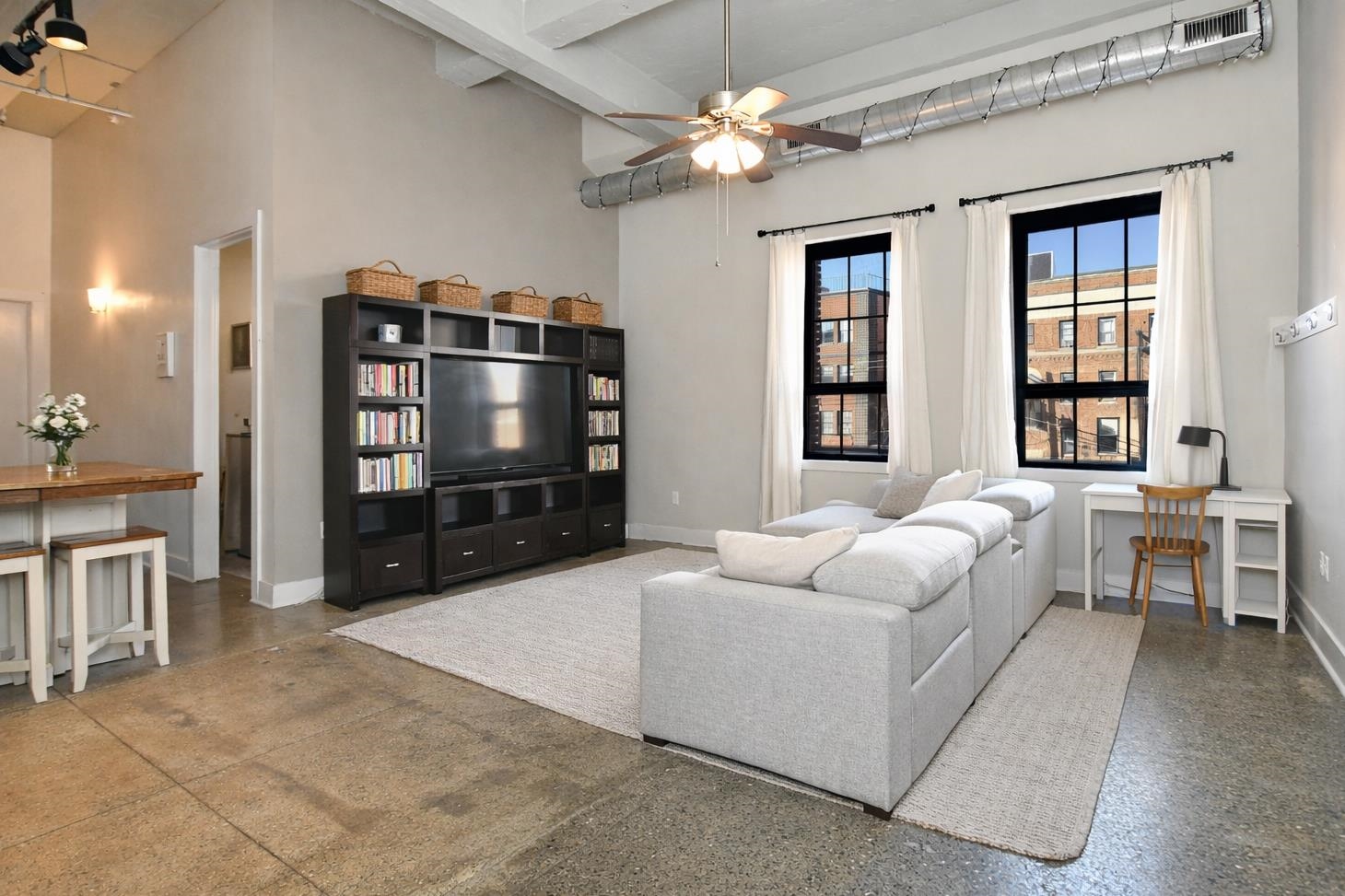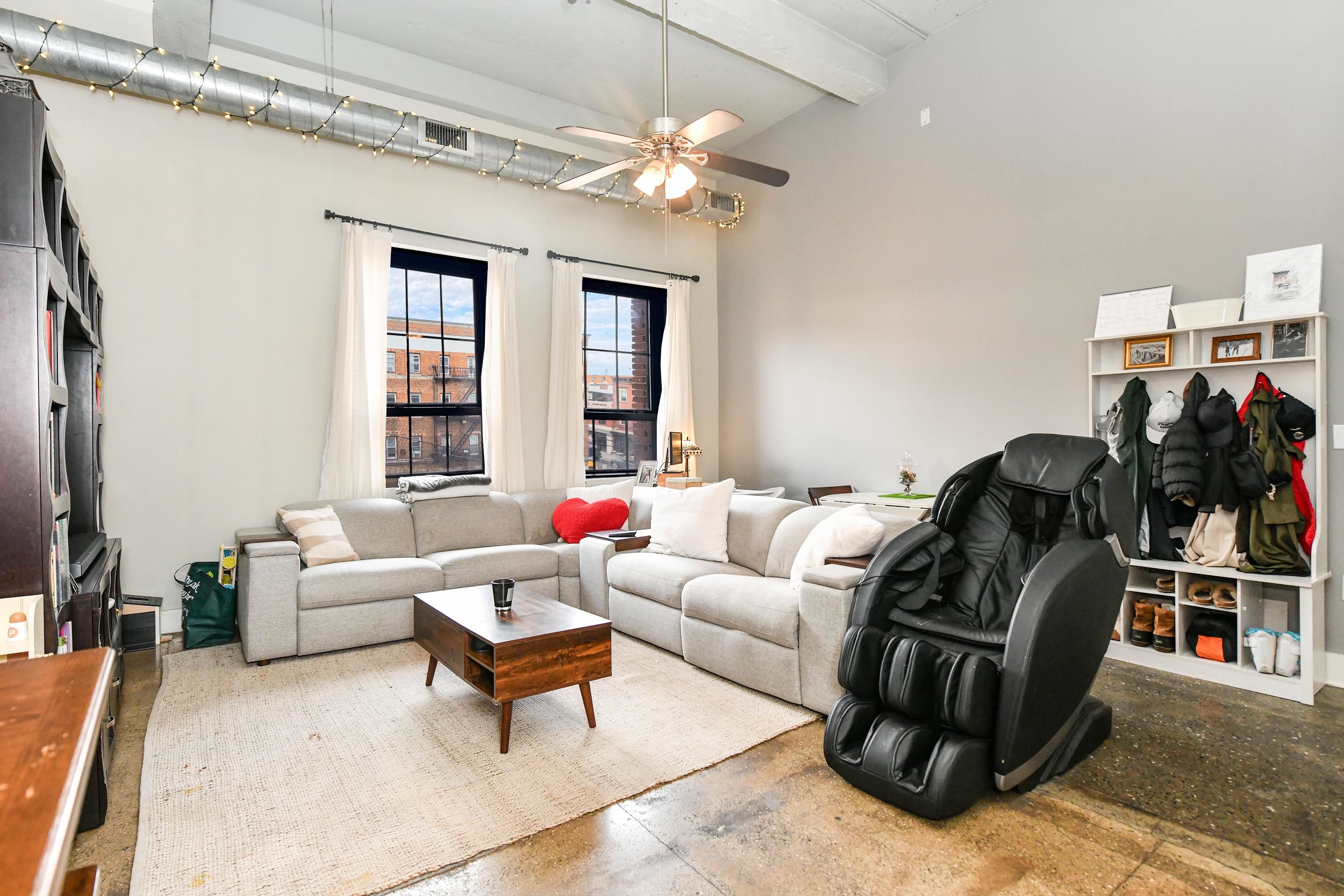Rarely available and truly one-of-a-kind, this sophisticated 938-square-foot 2 bedroom, 1 bathroom loft is located in the iconic Trolley House Lofts,an exclusive boutique building steeped in history as the former Hudson County Rail Headquarters. With only 20 residences, opportunities to own in this distinctive building are exceptionally limited. Set in the heart of Jersey City Heights, this residence seamlessly blends industrial character with modern luxury. Soaring 14-foot ceilings and polished concrete floors create a striking architectural presence, while oversized windows fill the space with natural light. The expansive open-concept layout offers an impressive living and entertaining area, anchored by a beautifully appointed chef’s kitchen featuring quartz countertops, a classic subway tile backsplash, and sleek stainless steel appliances. The primary bedroom is generously sized with ample closet space, offering both comfort and functionality. A versatile second bedroom provides the flexibility to accommodate guests, a private home office, or evolving lifestyle needs. Residents enjoy the convenience of elevator access and laundry facilities on every floor, all within a building that exudes character and charm. Perfectly positioned near shopping, an emerging dining scene, and effortless NYC transportation, this location offers the best of urban living. Benefit from low HOA fees and exceptionally favorable property taxes thanks to a long-term tax abatement in place through July 23, 2032. A rare opportunity to own a distinctive condo in one of Jersey City’s most sought-after and unique buildings.