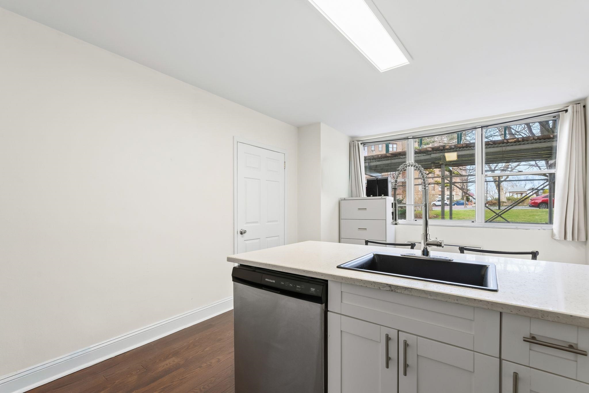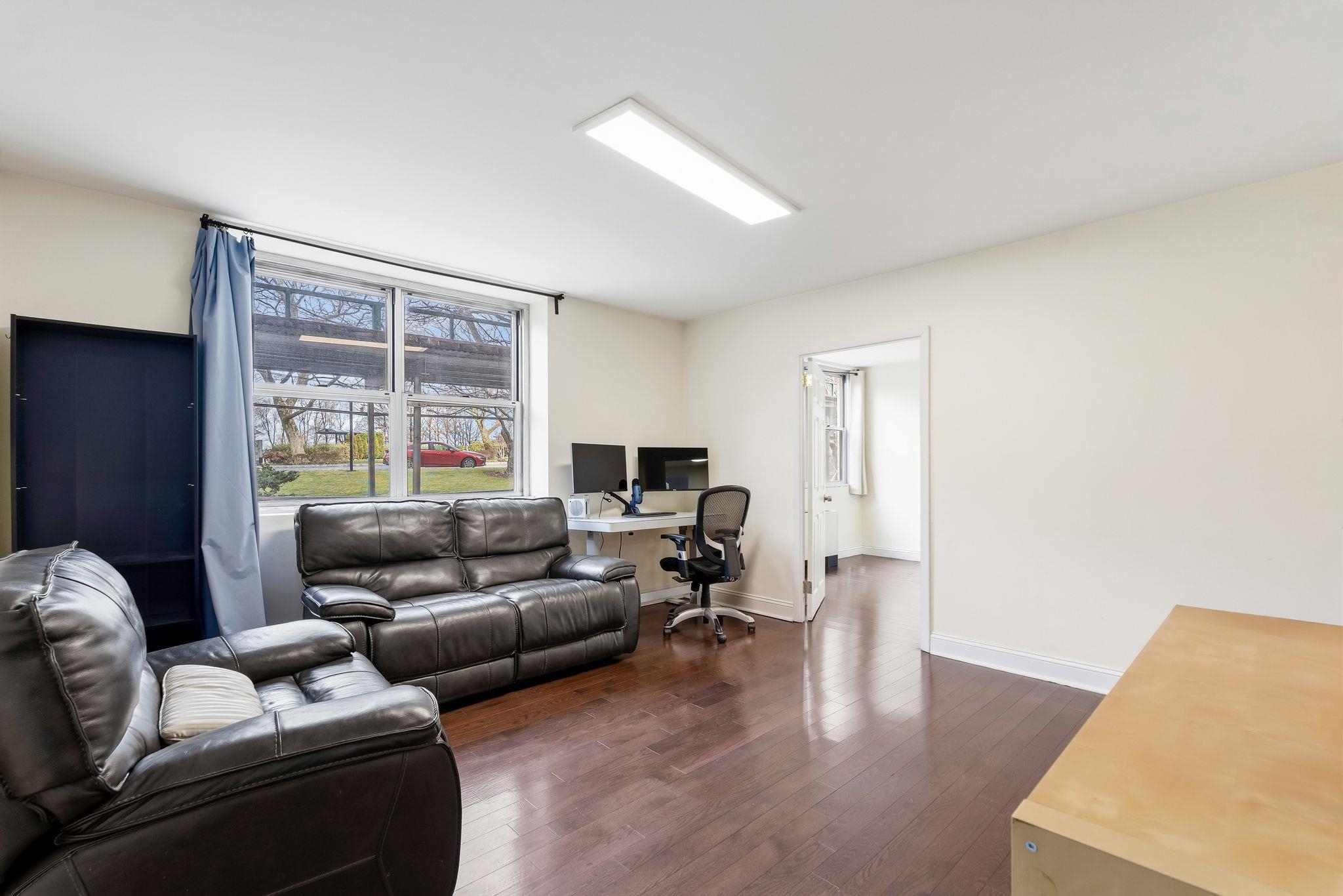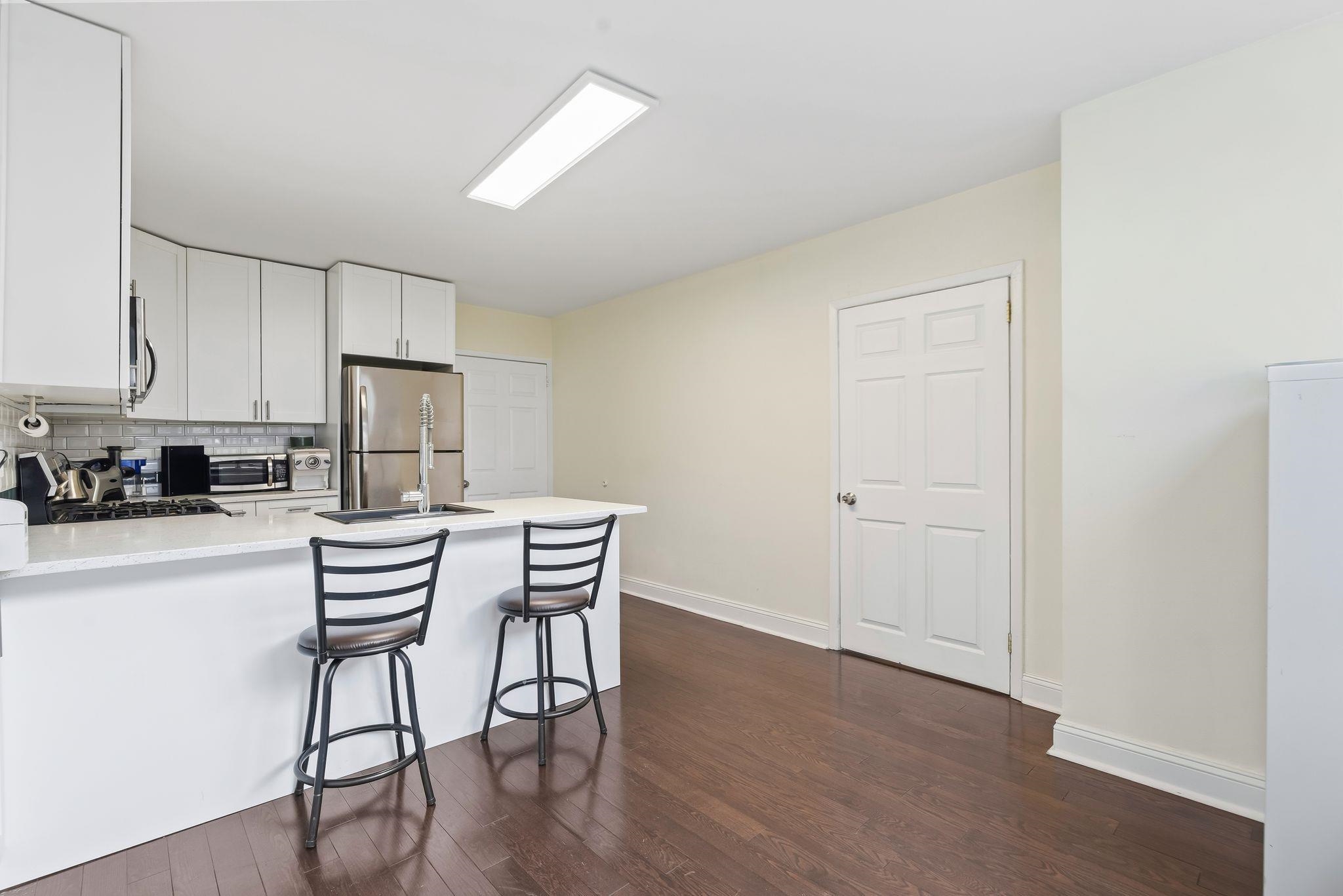 This spacious ground-floor co-op at the prestigious Riviera Towers in West New York offers approximately 775 square feet of bright, modern living space. The residence features an inviting living area with elegant hardwood floors that run throughout the entire unit, complemented by numerous windows that flood the space with natural light. The heart of the home is the newly updated kitchen, which has been thoughtfully designed to include sleek quartz countertops and a full suite of stainless steel appliances. The bedroom is impressively spacious, providing ample room for a king-sized set and additional furniture, while multiple closets throughout the apartment offer excellent storage solutions. Located directly on Boulevard East, Riviera Towers is a premier luxury high-rise that provides an unparalleled lifestyle with 24-hour concierge and valet services for guests. Residents enjoy access to a wealth of on-site amenities, including a refreshing outdoor pool, a well-equipped gym available for an additional fee, and the ultimate convenience of an in-building grocery store and laundry facilities. This location is a commuter's dream, offering immediate access to NYC buses and Jitneys, as well as a dedicated shuttle to the Port Imperial Ferry. With all utilities—heat, air conditioning, water, gas, and electric—included in the monthly maintenance, and a vibrant neighborhood full of great restaurants just steps away, this home perfectly balances luxury and ease.