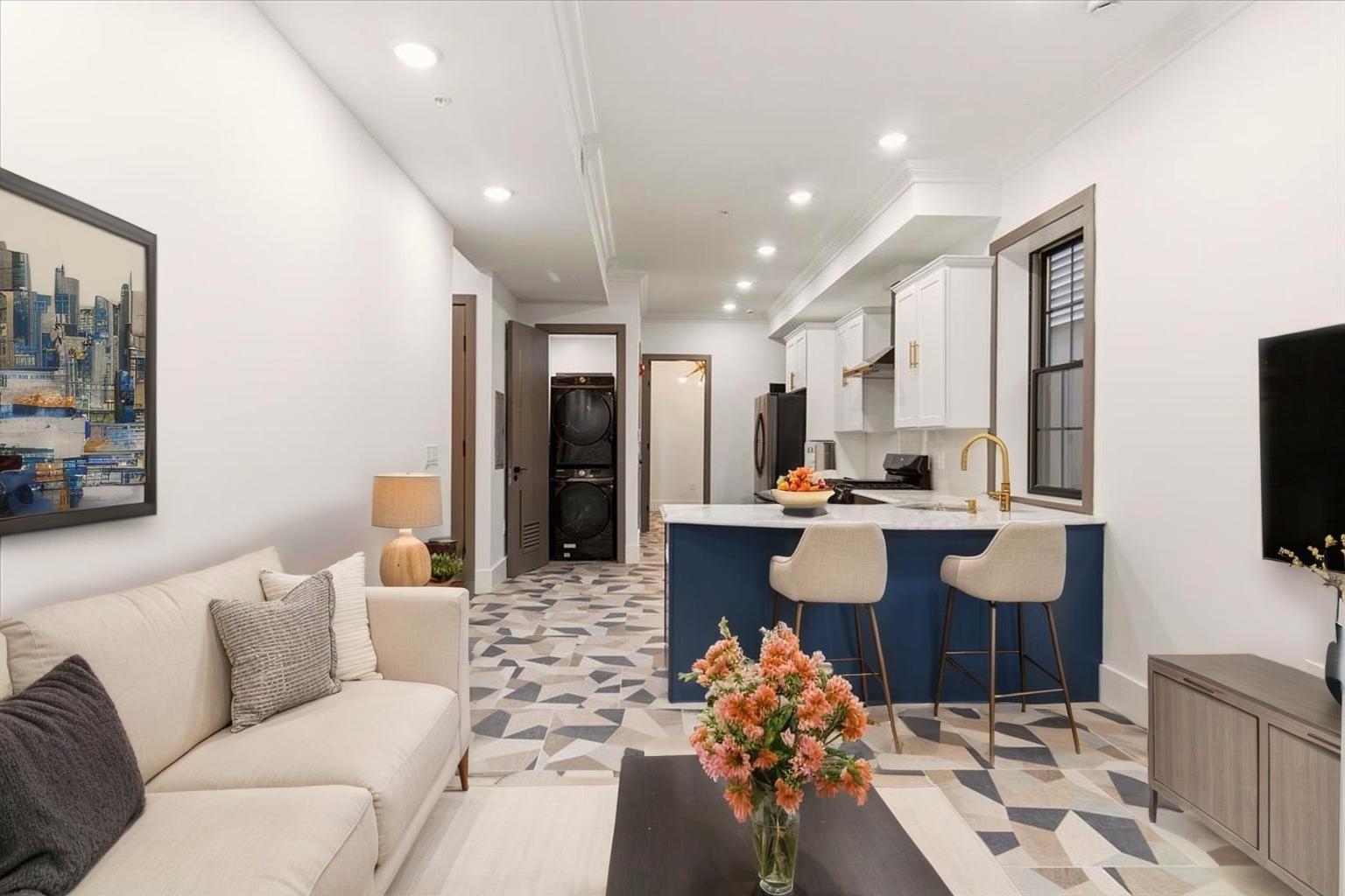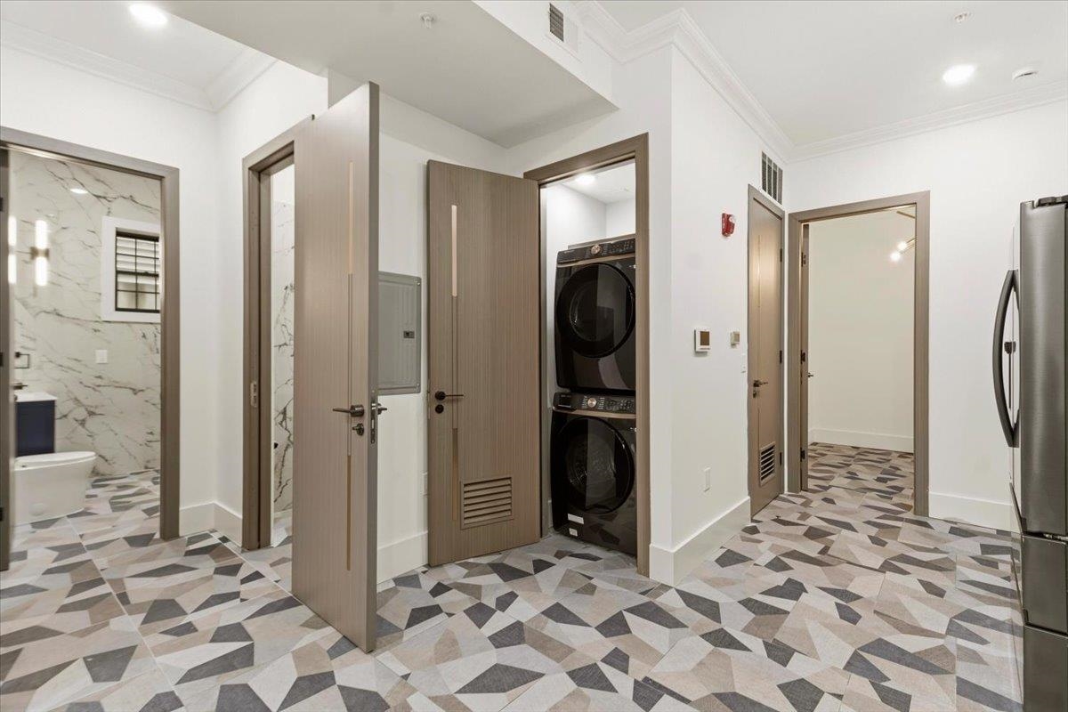 The kind of home that makes you forget you’re this close to the city. Just a 10 MINUTE WALK TO THE PATH, this BRAND NEW CONSTRUCTION is tucked away on a quiet Journal Square street, offering a rare mix of energy and calm. Step outside to your private back seating area, perfect for slow mornings, late nights, and a moment of quiet you didn’t think you’d find here. This home also offers an EXCLUSIVE, NON-SHARED ENTRANCEWAY, adding an extra layer of privacy and separation that’s hard to find at this price point.This 2 bedroom, 1.5 bath home delivers a bright, open layout with clean, modern finishes throughout, complemented by sleek European doors that elevate the overall design. The kitchen is designed to impress, featuring quartz countertops, modern cabinetry, premium Samsung appliances, and an in unit washer and dryer. Both bedrooms offer generous closet space, while the bathrooms are finished with custom tile work and a glass enclosed shower for a polished, elevated feel. Backed by a 10 year builder’s warranty and offering LOW TAXES AND NO HOA, this home checks the boxes that matter, style, comfort, and long term value. ONE PARKING SPACE INCLUDED. City when you want it. Quiet when you need it.