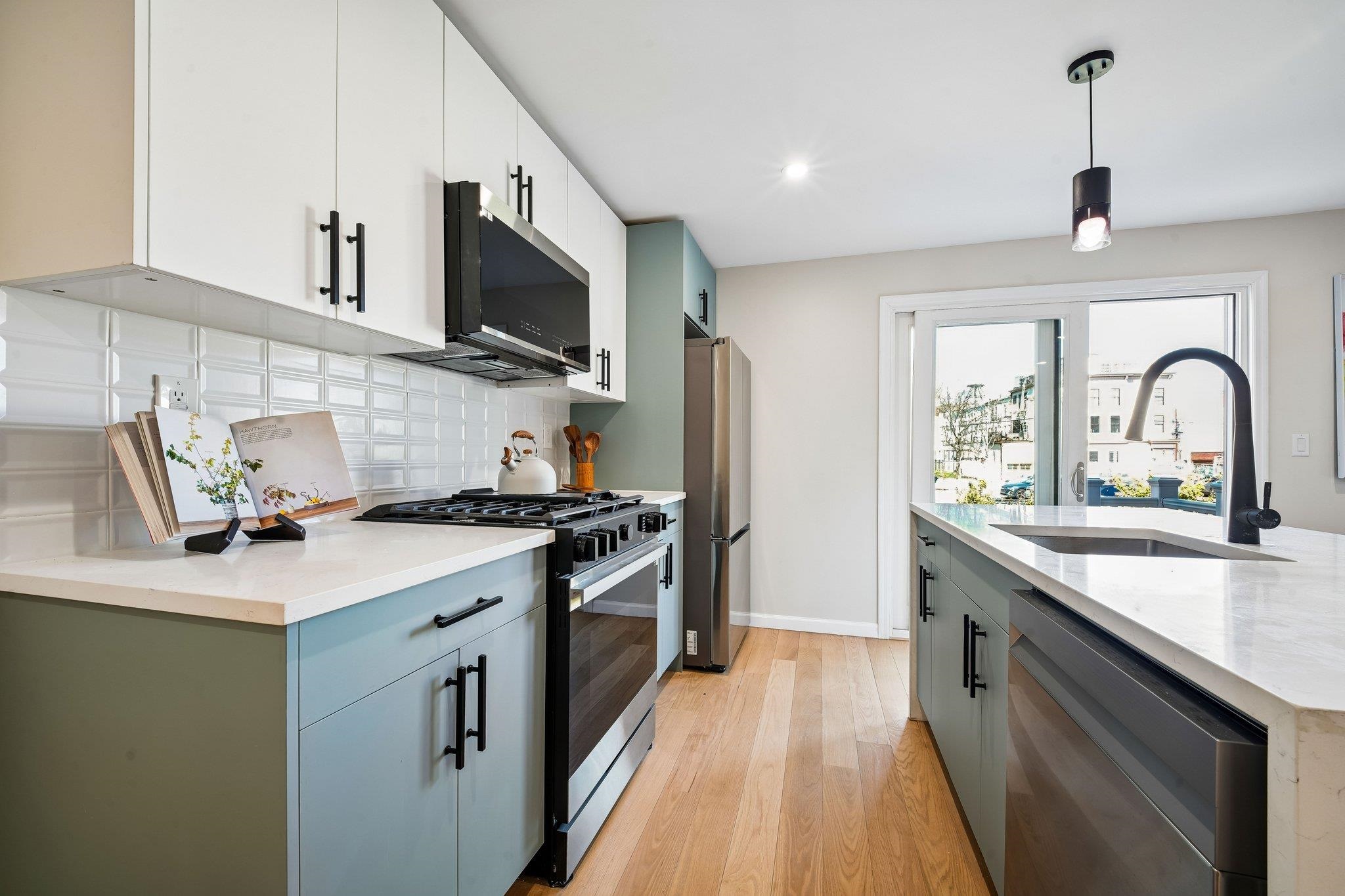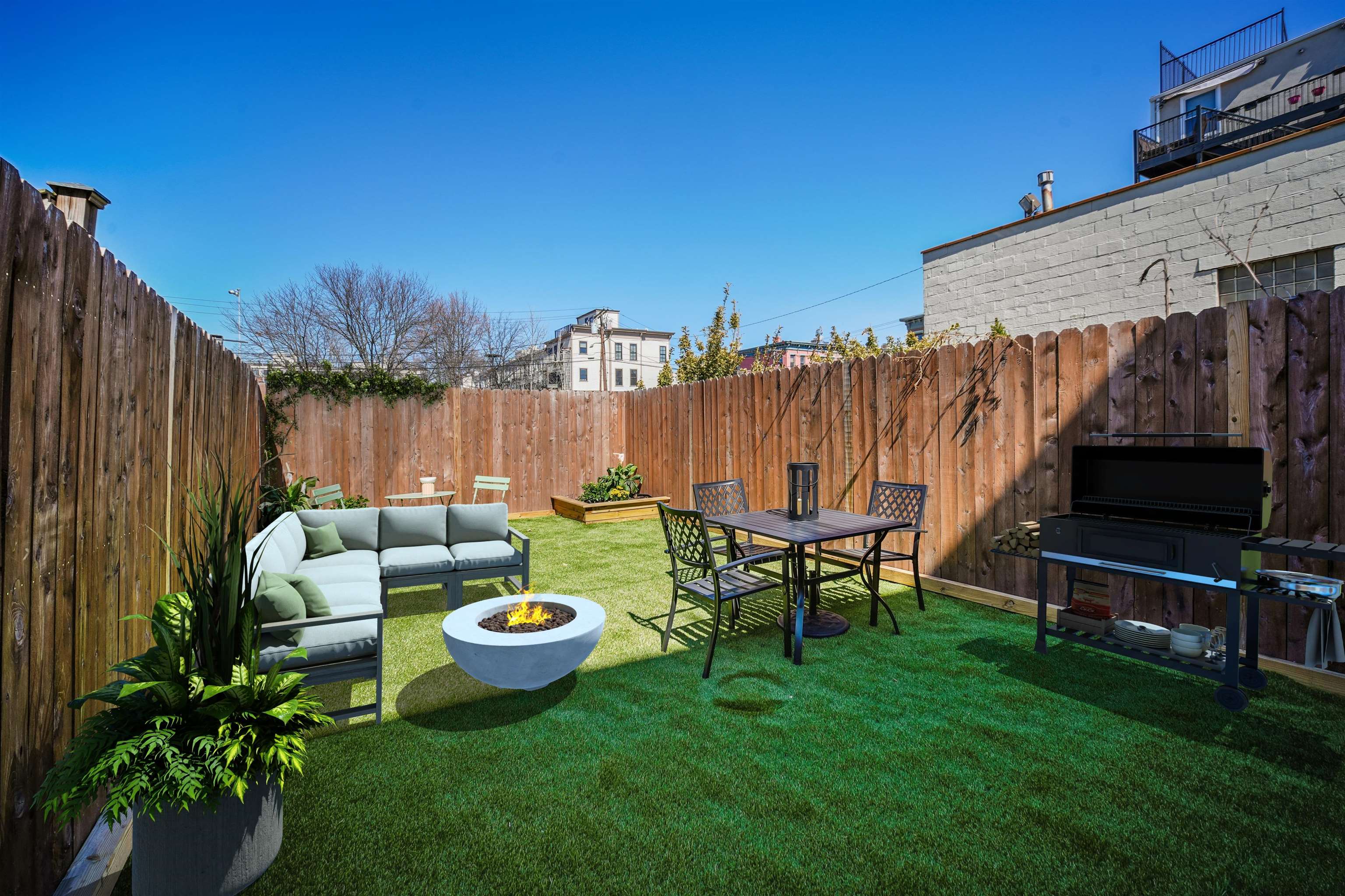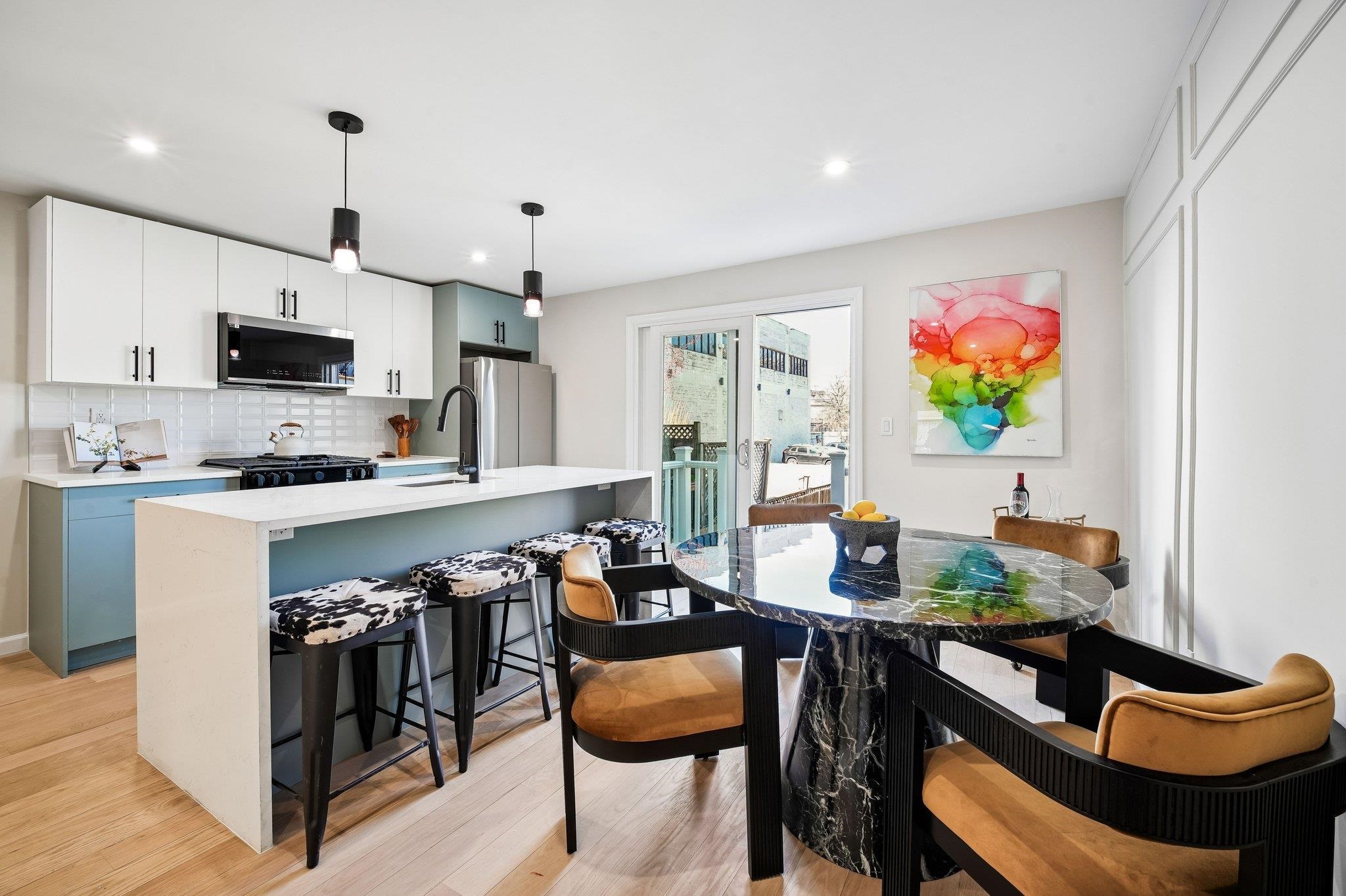 Fabulous 3 bedroom, 2.5 bath Downtown Duplex with Huge, Private Backyard! This gorgeous Hamilton Park family-sized home is complete with space, location, beautiful finishes, and livability. Enter to a stunningly new renovation, with gleaming hardwood floors, brilliant sunlight, and top-tier finishes across two levels. Direct access to both the front and rear of the residence (and that showstopper private backyard) from both levels make this feel like a free-standing home in the heart of the city! TWO living rooms, one on each level, are perfect for adult enjoyment upstairs, while downstairs the young ones can enjoy playdates, movies, gaming, and some independent time. The open concept main living level features living, dining, guest powder room, and your Chef's kitchen with a full suite of modern appliances, waterfall edge Quartz counters, breakfast bar with 4 person seating, and French sliders leading directly onto an expansive deck that flows seamlessly onto your 530 sq. ft. private backyard! This oversized outdoor space is fully fenced, with synthetic lawn, planting beds, and room for multiple dining, seating, BBQ, and entertaining areas. Your primary suite is king-sized luxury with box-frame custom wall moldings, and awesome spa bath clad in the finest stone and fixtures. This suite is perfectly placed off the main living space for both privacy and convenience. The second level features two lovely bedrooms, family room, another beautiful spa bathroom, full sized W/D, and dedicated storage space. Outside your front door awaits all the desirability of Hamilton Park....the park, shops, dining, restaurants, 2 PATH stations, and PS5/Conte and Brunswick schools. A wonderful lifestyle awaits!