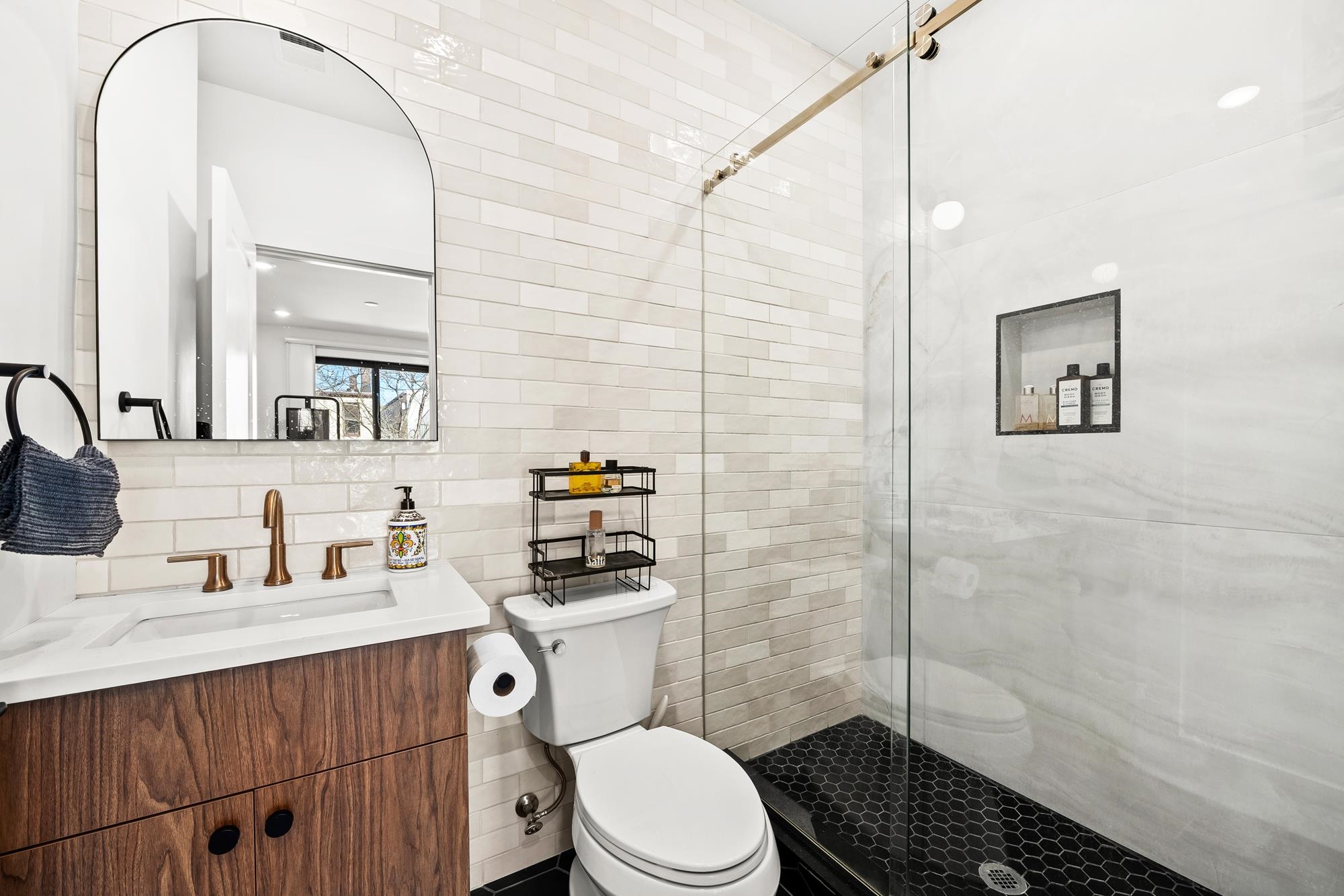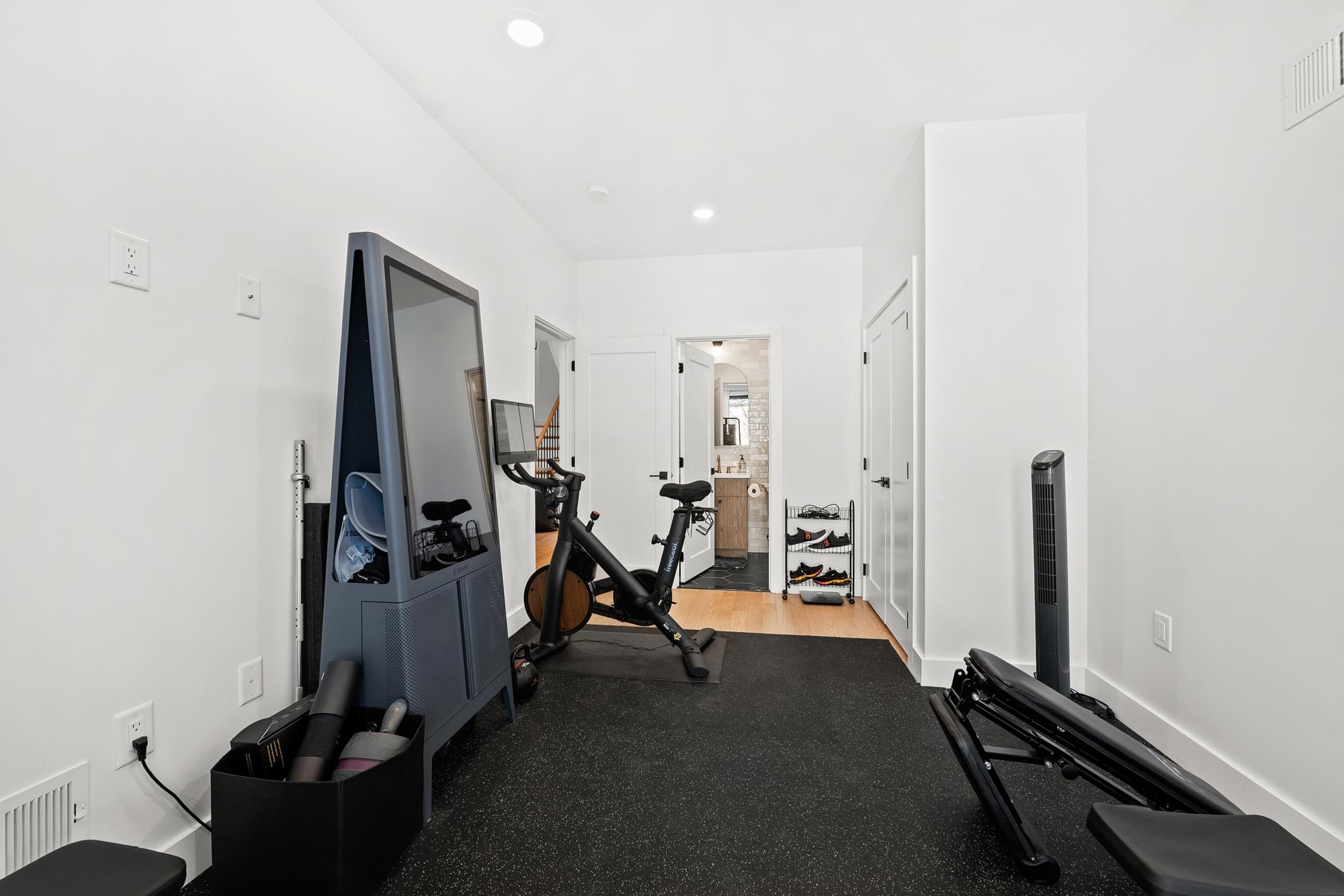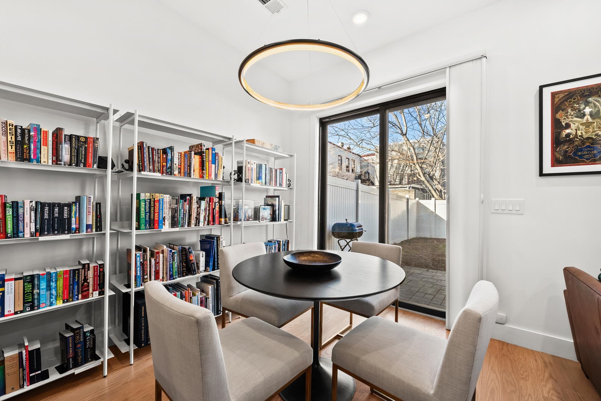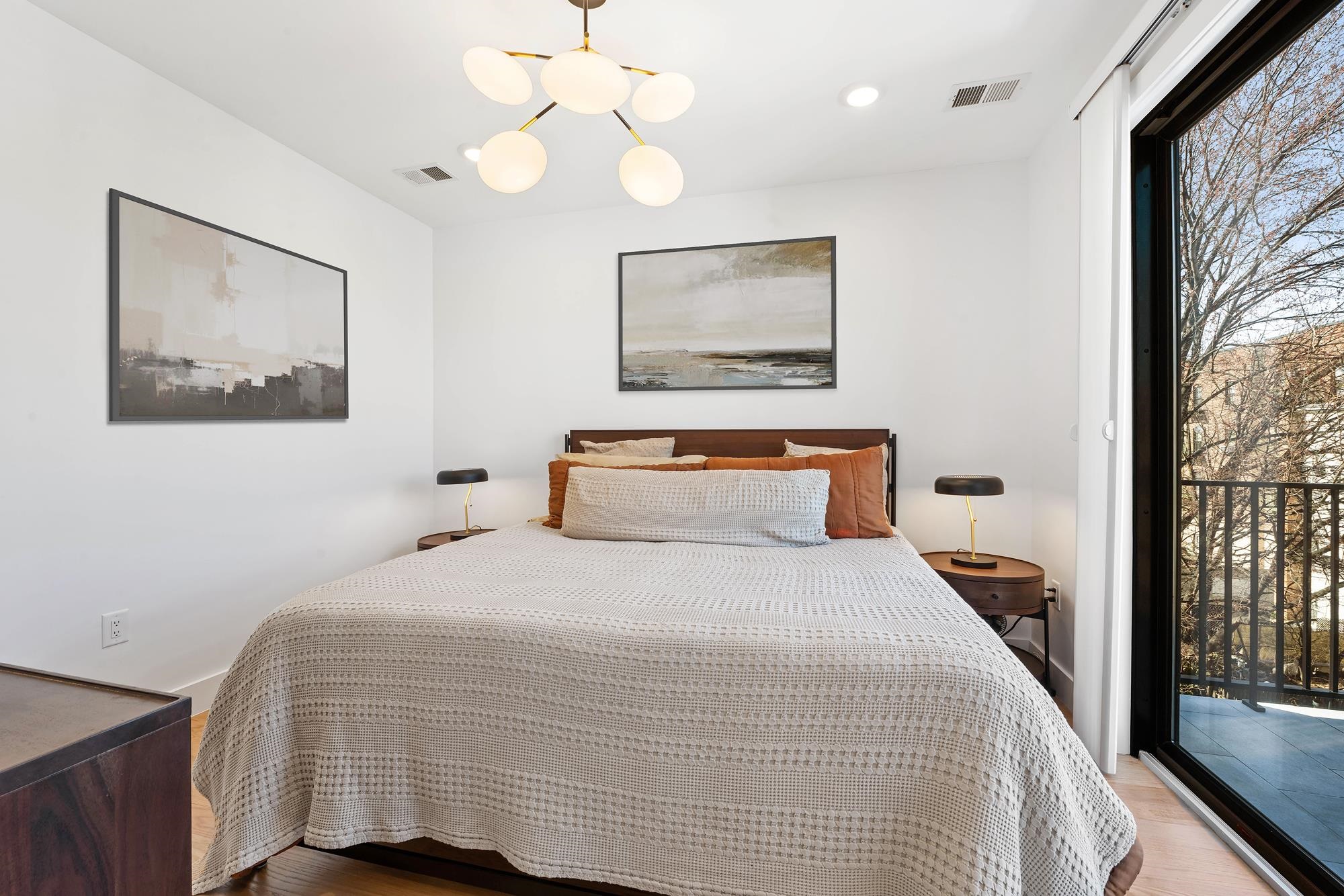 Welcome to 34 Manhattan Ave #2, a sprawling and meticulously designed 4-bedroom, 3-full, and 2-half bath condominium that redefines luxury living in the heart of Jersey City Heights. This multi-level residence seamlessly blends high-end custom finishes with the rare privilege of two distinct private outdoor retreats. From the moment you step inside, the home’s open-concept heart unfolds into an entertainer’s dream. The designer kitchen is a masterpiece of form and function, featuring white wood soft-close cabinetry, striking waterfall countertops with a breakfast bar, and a full suite of Samsung stainless appliances, complete with a vented hood, over-range pot filler, in-cabinet drawer microwave, and a dedicated wine fridge. Under-cabinet lighting and a tiled backsplash accentuate the space, while custom West Elm lighting in the living room leads you directly to your private backyard sanctuary. The second level is thoughtfully laid out to accommodate the modern lifestyle, currently featuring two versatile bedrooms utilized as a high-end home gym and a professional office. The gym-configured bedroom serves as a secondary suite, boasting a private Juliet balcony and an ensuite bathroom with a glass-enclosed shower. This floor also includes a well-appointed hallway bathroom with a soaking tub and the ultimate urban convenience: a dedicated laundry area with full-sized, stacked Samsung washer and dryer units. Throughout the home, custom window treatments from The Shade Store provide both privacy and a polished aesthetic. Ascending to the third floor, you’ll find the primary retreat, a true sanctuary designed for ultimate relaxation. The primary suite is anchored by a custom-built walk-in closet and a private Juliet balcony, with elegant West Elm lighting overhead. Its spa-like ensuite bathroom features a massive glass-enclosed shower with a built-in bench and a sleek double vanity. This level is rounded out by a fourth bedroom (currently used as an office) and a convenient hallway half-bath, ensuring every inch of the home is utilized for maximum comfort. The crowning jewel of this residence is found just one flight up: a private roof deck offering breathtaking, unobstructed views of the New York City skyline. Whether you are hosting summer gatherings against the backdrop of Manhattan or enjoying a quiet evening under the stars, this outdoor space is a rare find in the Heights. With its sophisticated custom upgrades and expansive floor plan, 34 Manhattan Ave #2 offers a truly elevated living experience in one of the city's most vibrant neighborhoods. Parking available nearby for an additional fee.