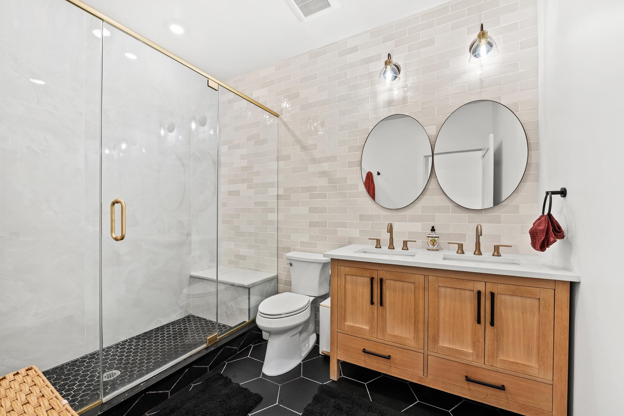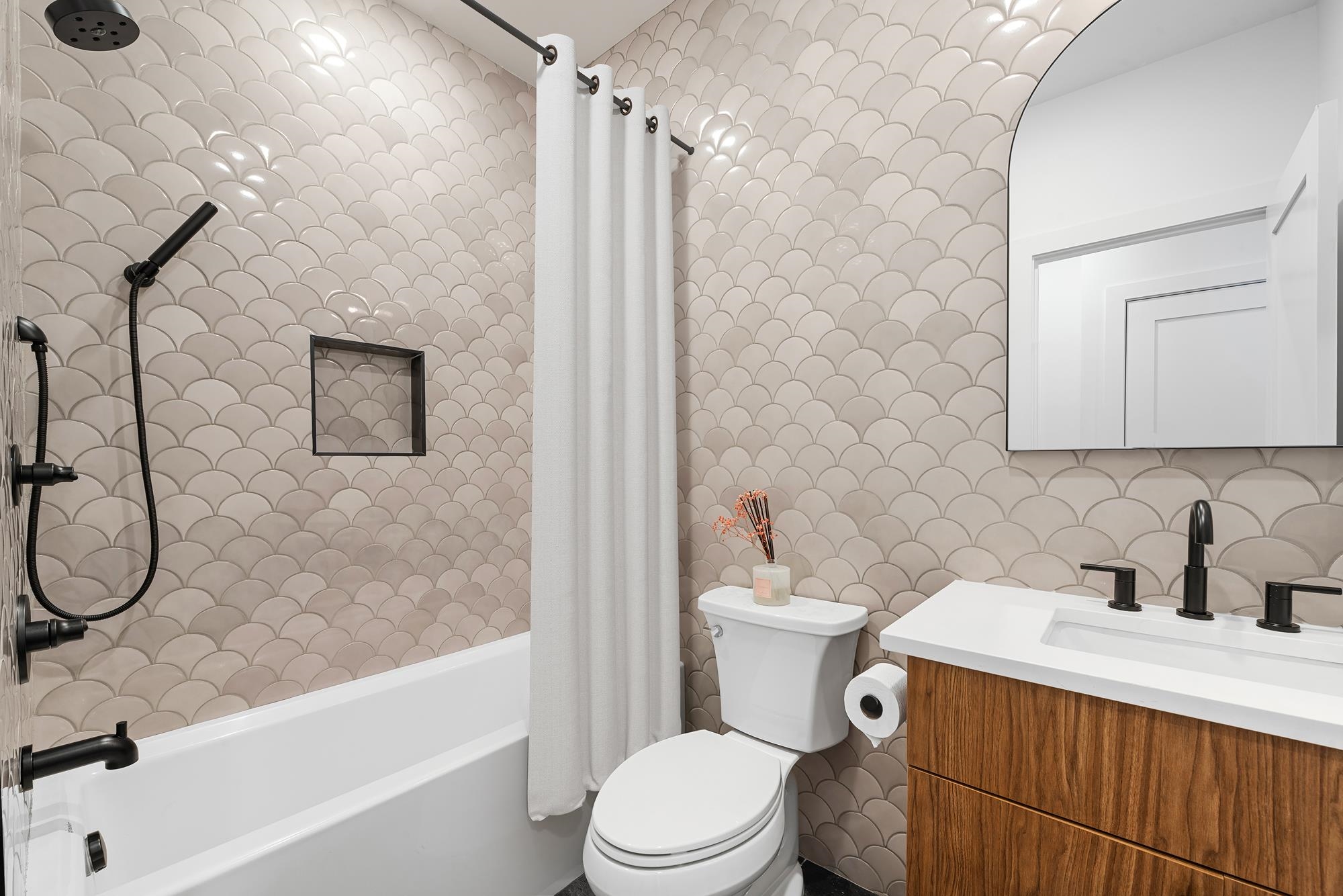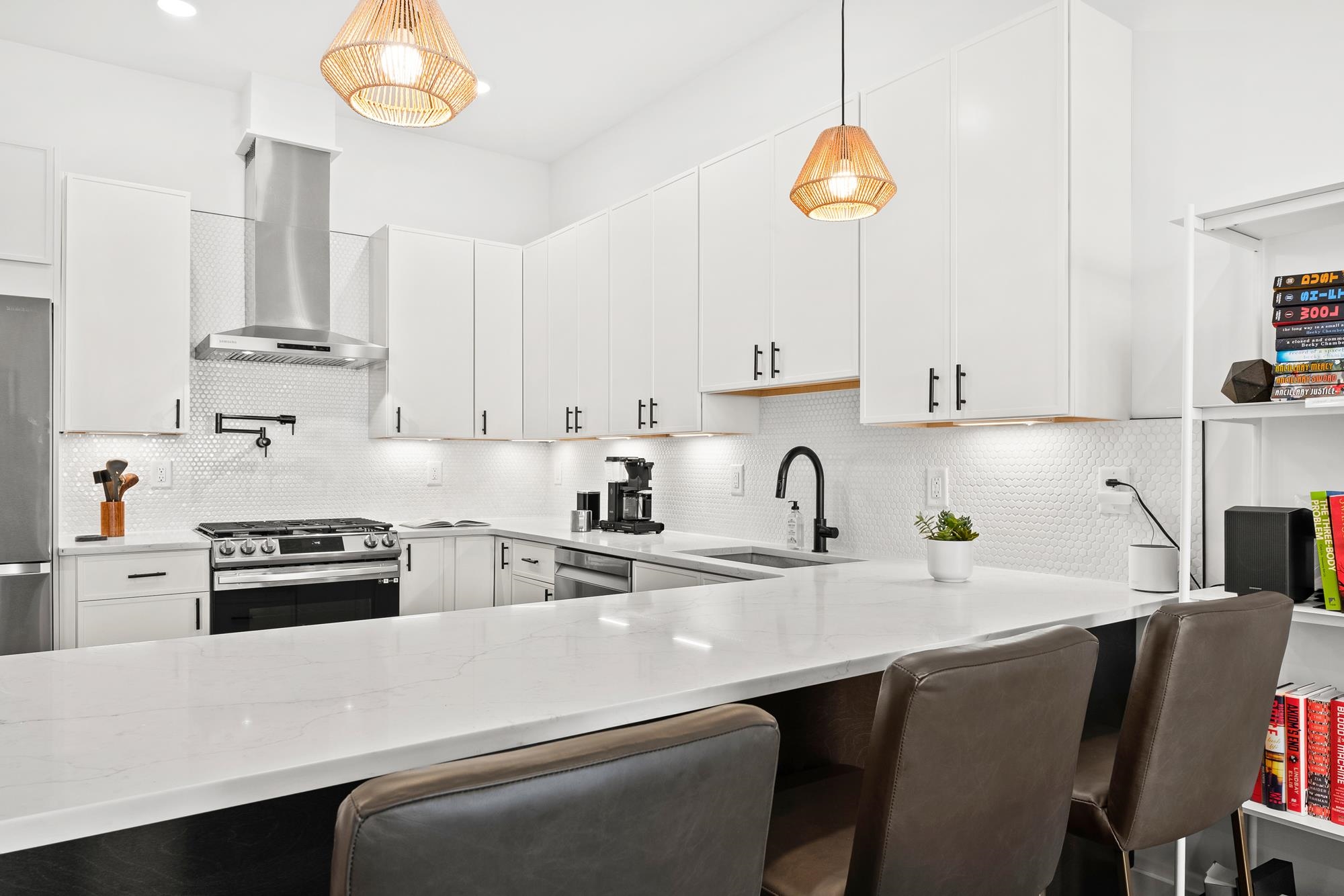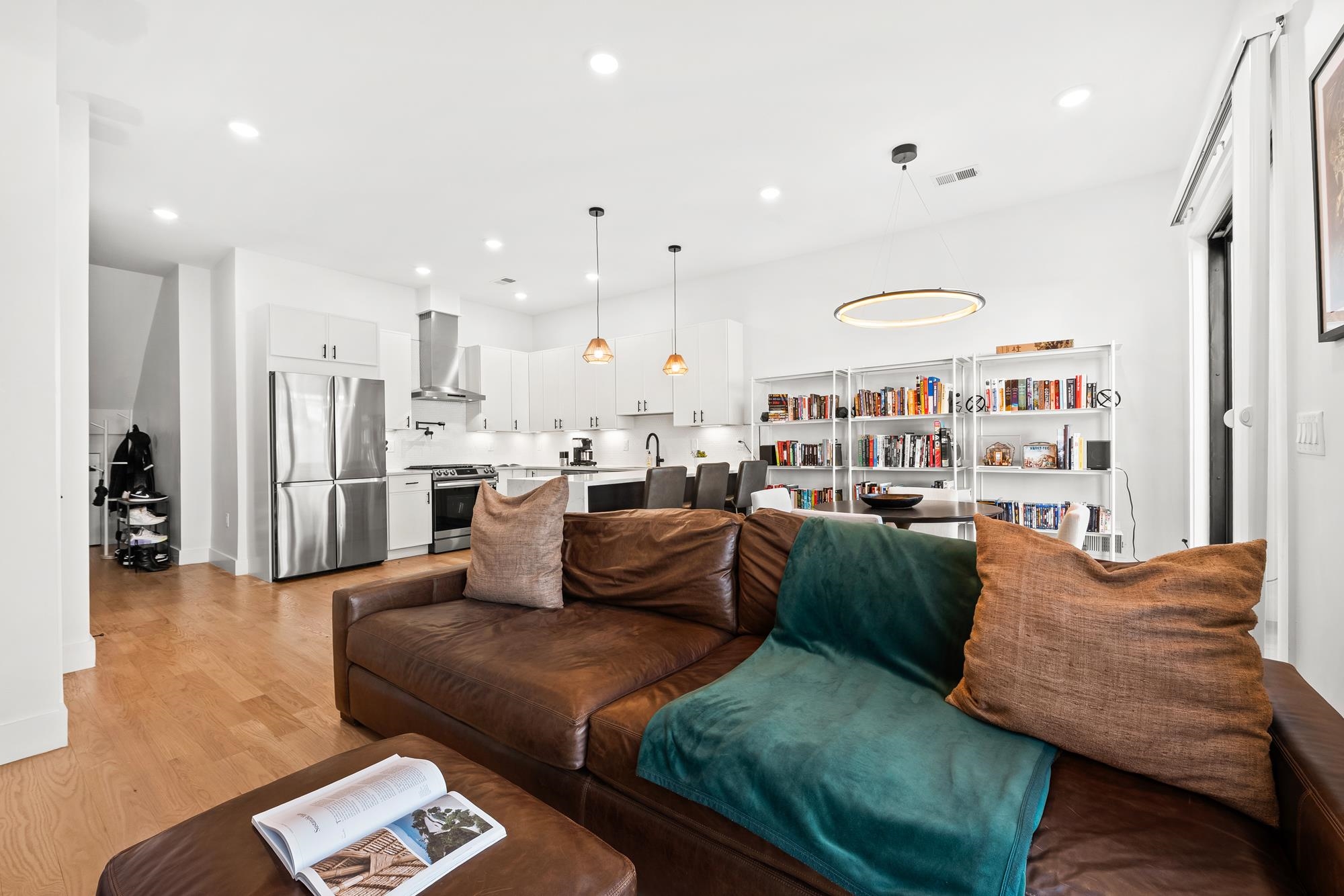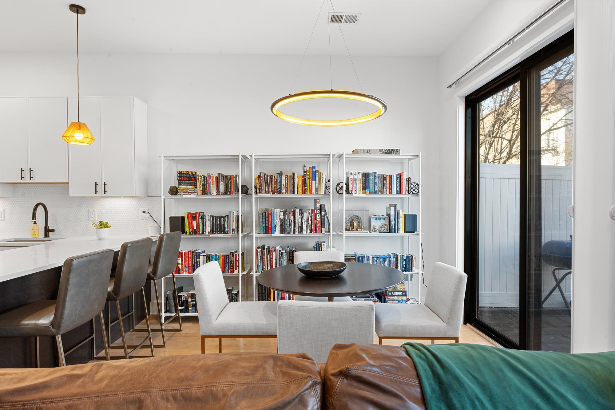 Welcome to 34 Manhattan Ave #2, a sprawling and meticulously designed 4-bedroom, 3-full, and 2-half bath condominium that redefines luxury living in the heart of Jersey City Heights. This multi-level residence seamlessly blends high-end custom finishes with the rare privilege of two distinct private outdoor retreats. From the moment you step inside, the home’s open-concept heart unfolds into an entertainer’s dream. The designer kitchen is a masterpiece of form and function, featuring white wood soft-close cabinetry, striking waterfall countertops with a breakfast bar, and a full suite of Samsung stainless appliances, complete with a vented hood, over-range pot filler, in-cabinet drawer microwave, and a dedicated wine fridge. Under-cabinet lighting and a tiled backsplash accentuate the space, while custom West Elm lighting in the living room leads you directly to your private backyard sanctuary. The second level is thoughtfully laid out to accommodate the modern lifestyle, currently featuring two versatile bedrooms utilized as a high-end home gym and a professional office. The gym-configured bedroom serves as a secondary suite, boasting a private Juliet balcony and an ensuite bathroom with a glass-enclosed shower. This floor also includes a well-appointed hallway bathroom with a soaking tub and the ultimate urban convenience: a dedicated laundry area with full-sized, stacked Samsung washer and dryer units. Throughout the home, custom window treatments from The Shade Store provide both privacy and a polished aesthetic. Ascending to the third floor, you’ll find the primary retreat, a true sanctuary designed for ultimate relaxation. The primary suite is anchored by a custom-built walk-in closet and a private Juliet balcony, with elegant West Elm lighting overhead. Its spa-like ensuite bathroom features a massive glass-enclosed shower with a built-in bench and a sleek double vanity. This level is rounded out by a fourth bedroom (currently used as an office) and a convenient hallway half-bath, ensuring every inch of the home is utilized for maximum comfort. The crowning jewel of this residence is found just one flight up: a private roof deck offering breathtaking, unobstructed views of the New York City skyline. Whether you are hosting summer gatherings against the backdrop of Manhattan or enjoying a quiet evening under the stars, this outdoor space is a rare find in the Heights. With its sophisticated custom upgrades and expansive floor plan, 34 Manhattan Ave #2 offers a truly elevated living experience in one of the city's most vibrant neighborhoods. Parking available nearby for an additional fee.