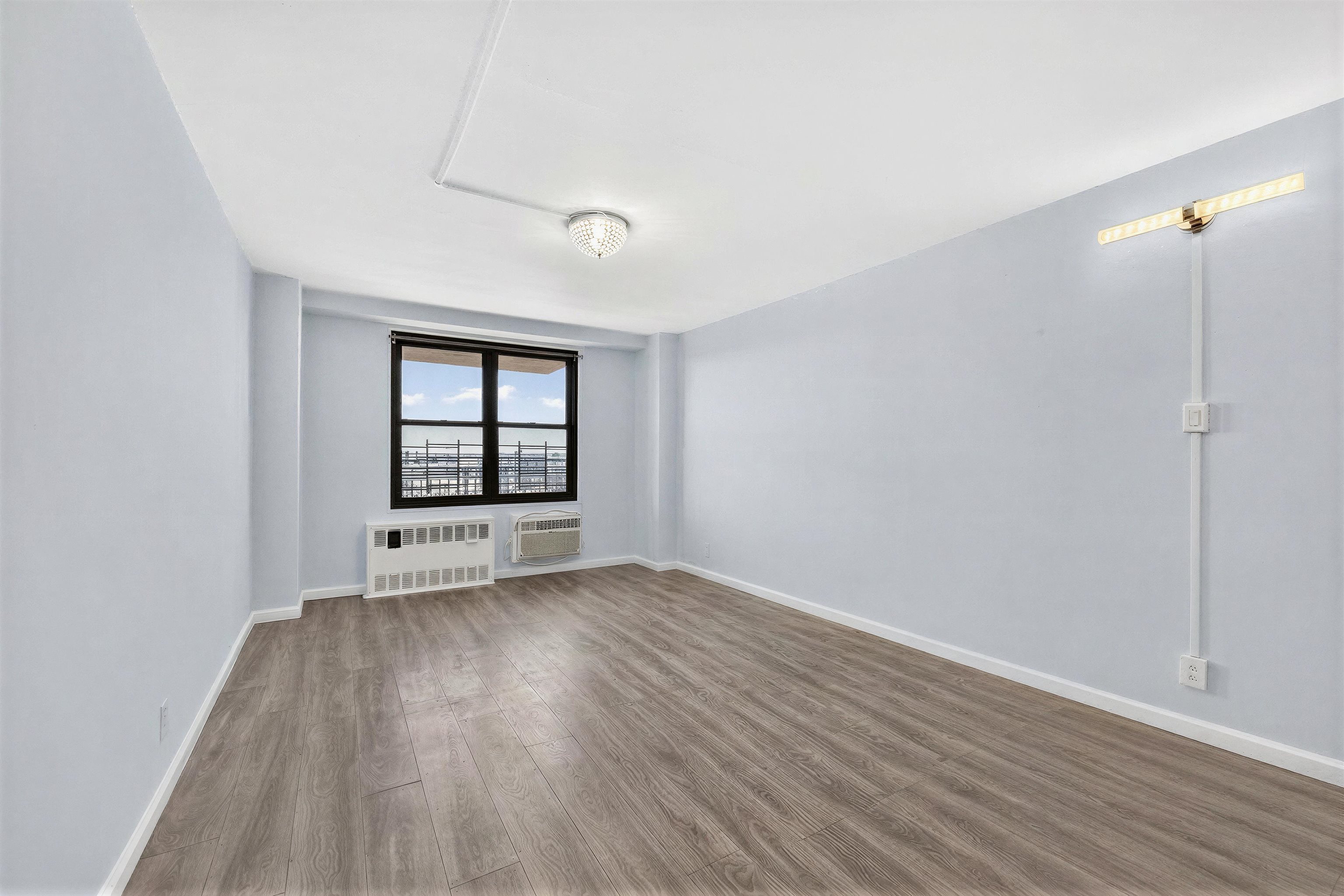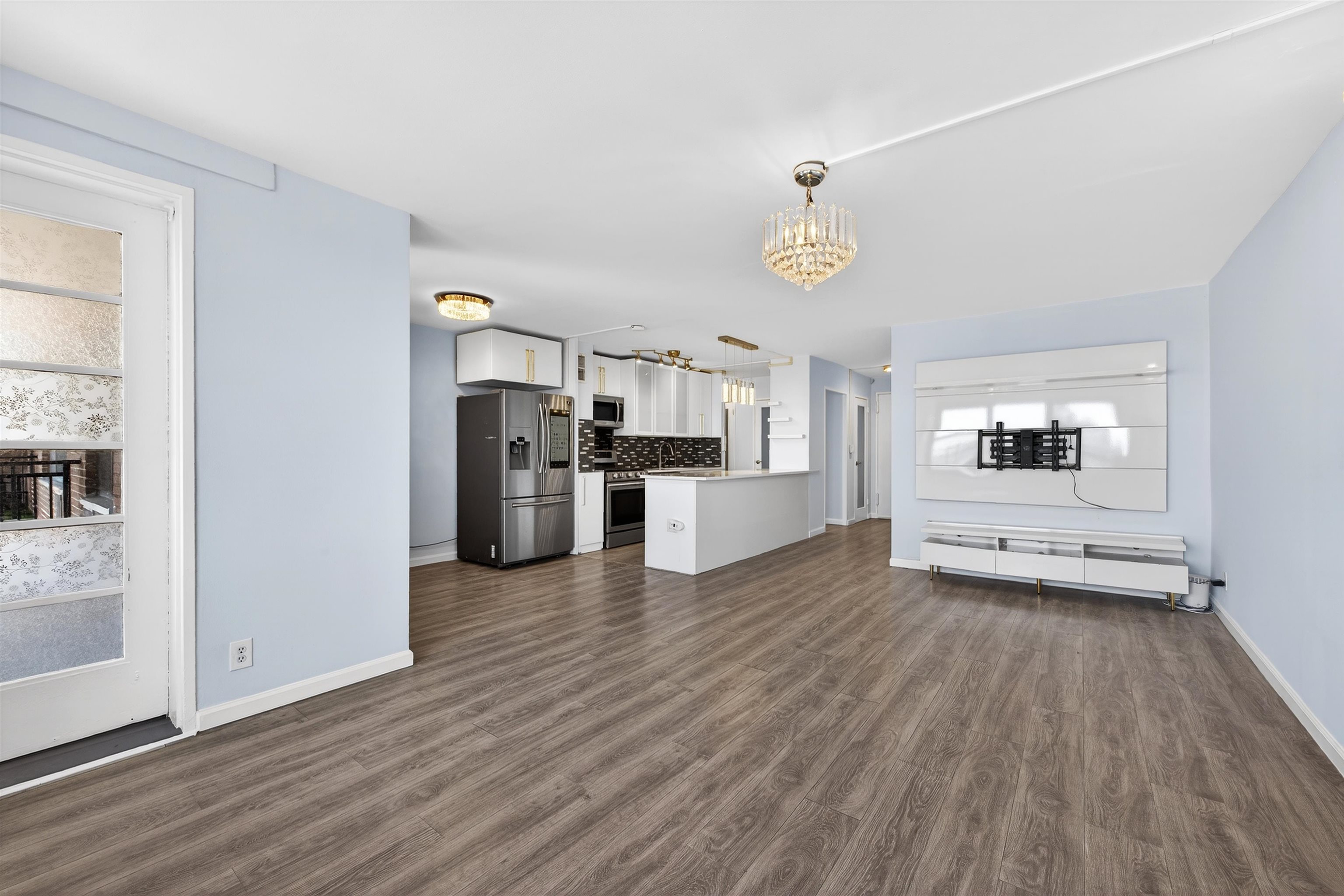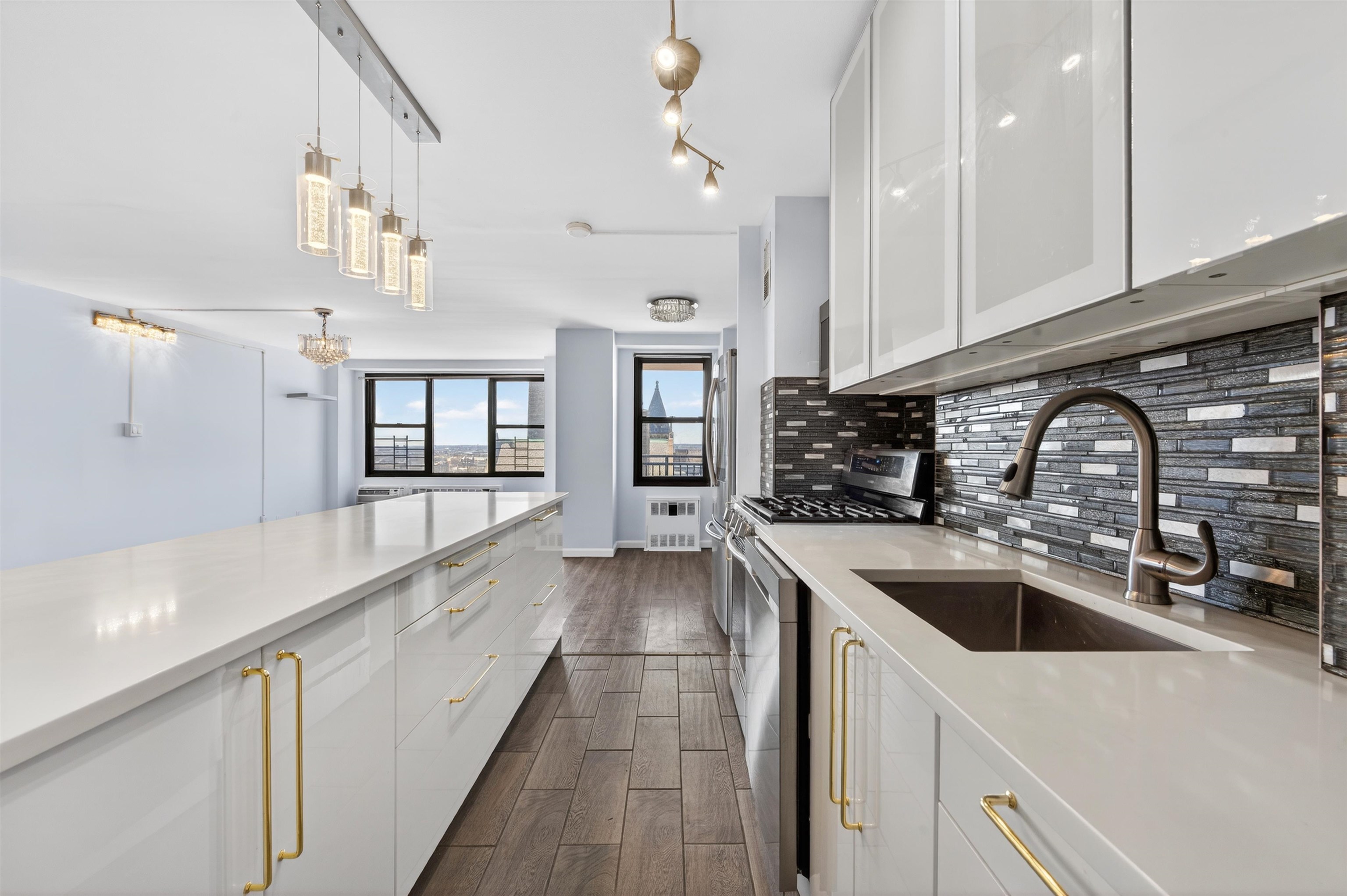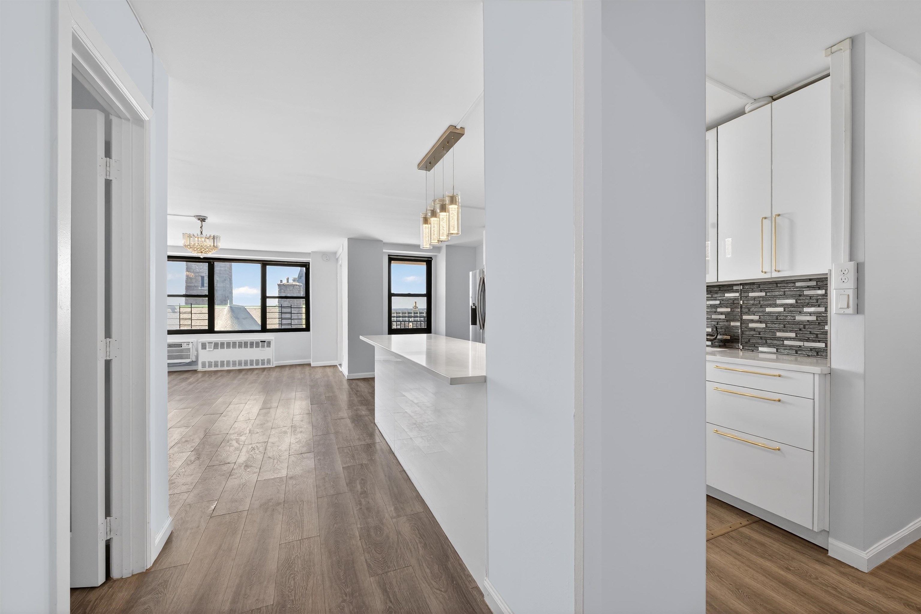 Welcome to Residence 8J, a spacious and beautifully maintained 1-bedroom + Den, 1-bath condo located on the 8th floor of one of Journal Square’s most desirable full-service buildings. Offering approximately 958 square feet of thoughtfully designed living space, this sun-filled home features oversized windows, an open-concept layout, and a private balcony, perfect for morning coffee or evening relaxation with open sky views. Updated kitchen featuring stainless steel appliances, a smart refrigerator, and generous cabinetry ideal for both everyday living and entertaining. Just off the kitchen are three impressive walk-in storage closets, providing exceptional space rarely found in condo living and perfect for pantry use or additional organization. A dedicated home office nook is wired for high-speed Verizon Fios, creating an ideal setup for today’s work-from-home lifestyle. With nearly 1,000 square feet, the flexible layout also allows the den or living configuration to be adapted to suit your needs. Updated bathroom offering a clean, modern aesthetic that complements the home’s bright and comfortable design. Heat and hot water are included in the monthly HOA fee, adding both convenience and value. Residents enjoy a full-service lifestyle with amenities that include a 24-hour concierge, fitness center, swimming pool, on-site laundry, and option to rent a parking spot for $110/month. Ideally located just moments from the PATH at Journal Square, providing quick access to Manhattan while placing you in the center of one of Jersey City’s fastest-growing neighborhoods, surrounded by restaurants, cafés, shopping, and local favorites. Residence 8J presents a rare opportunity for buyers seeking space, convenience, and lifestyle in a prime Jersey City location.