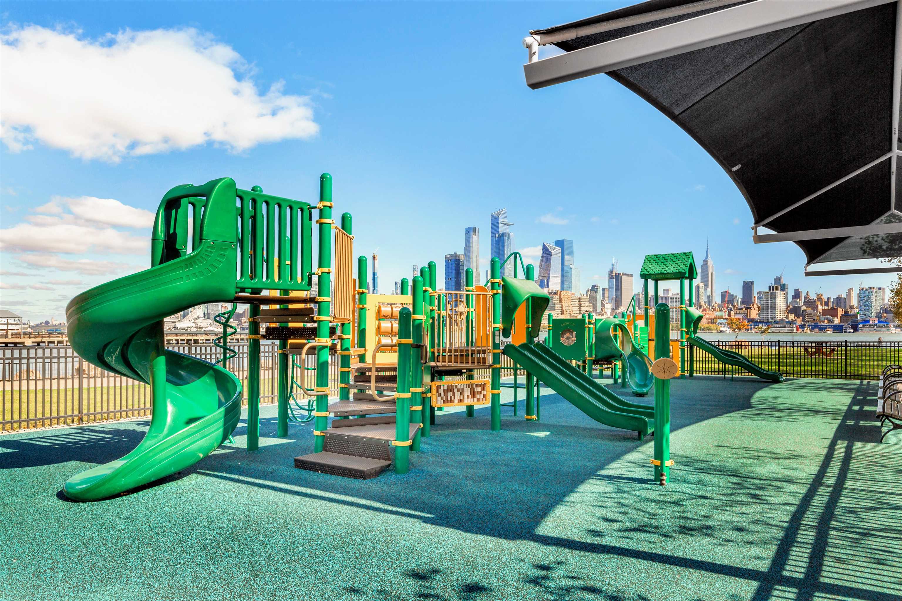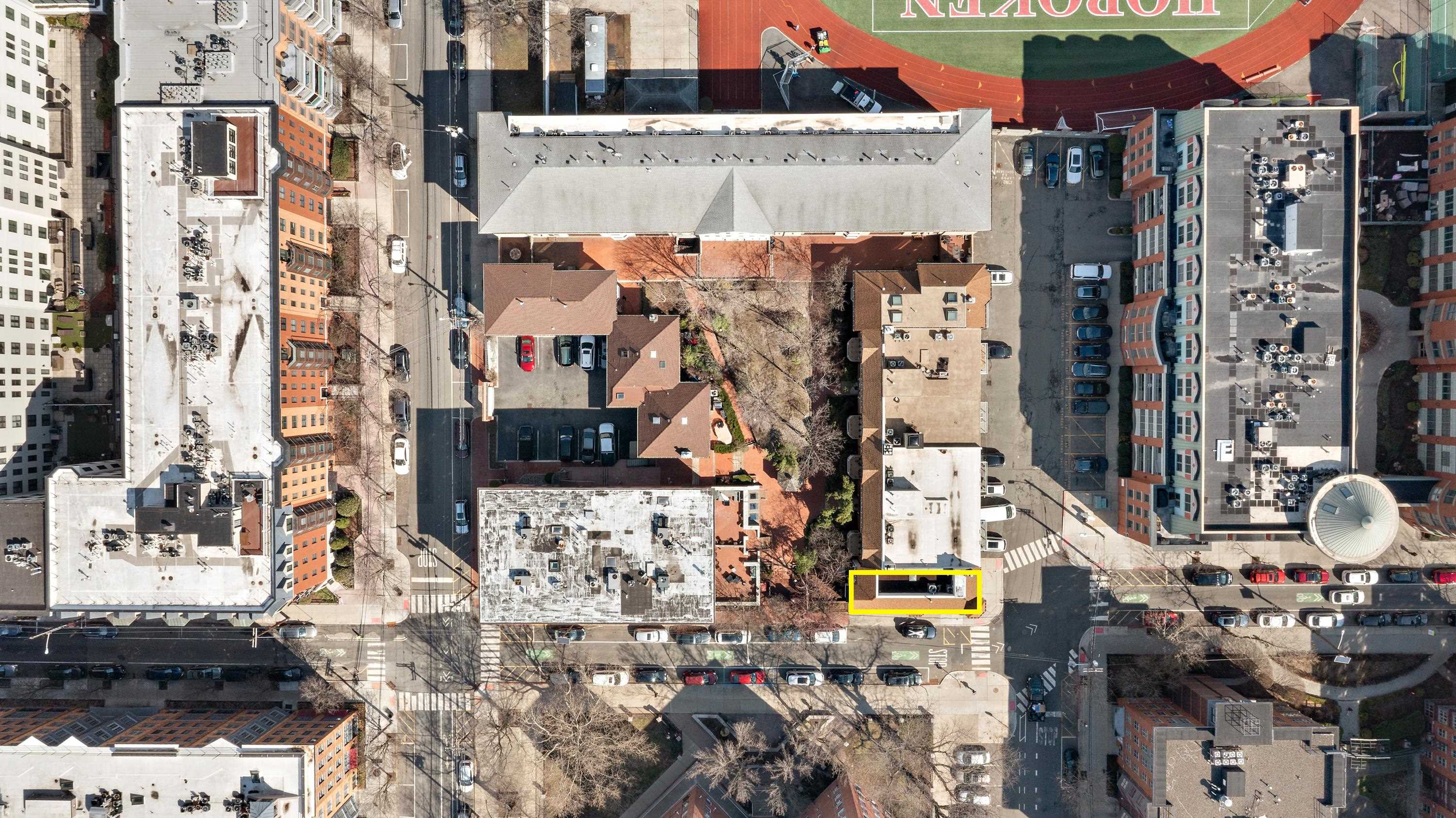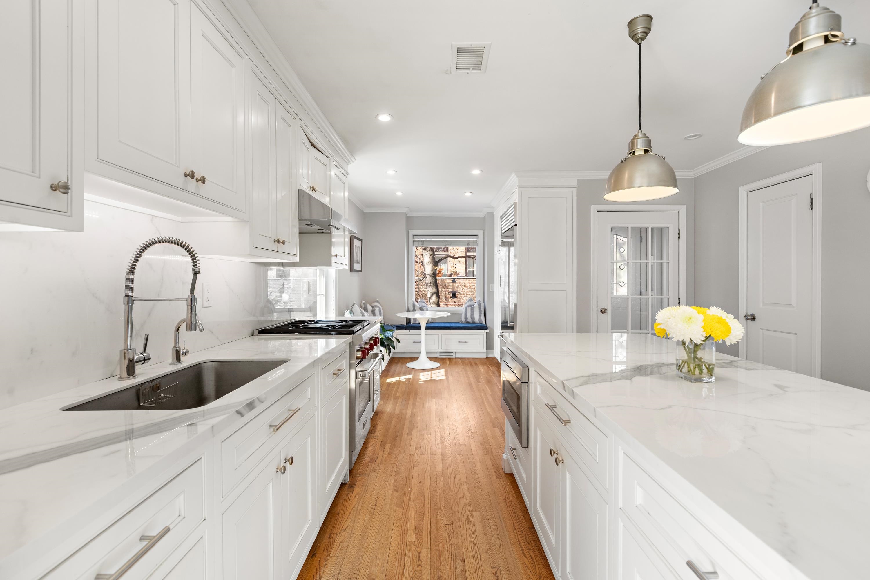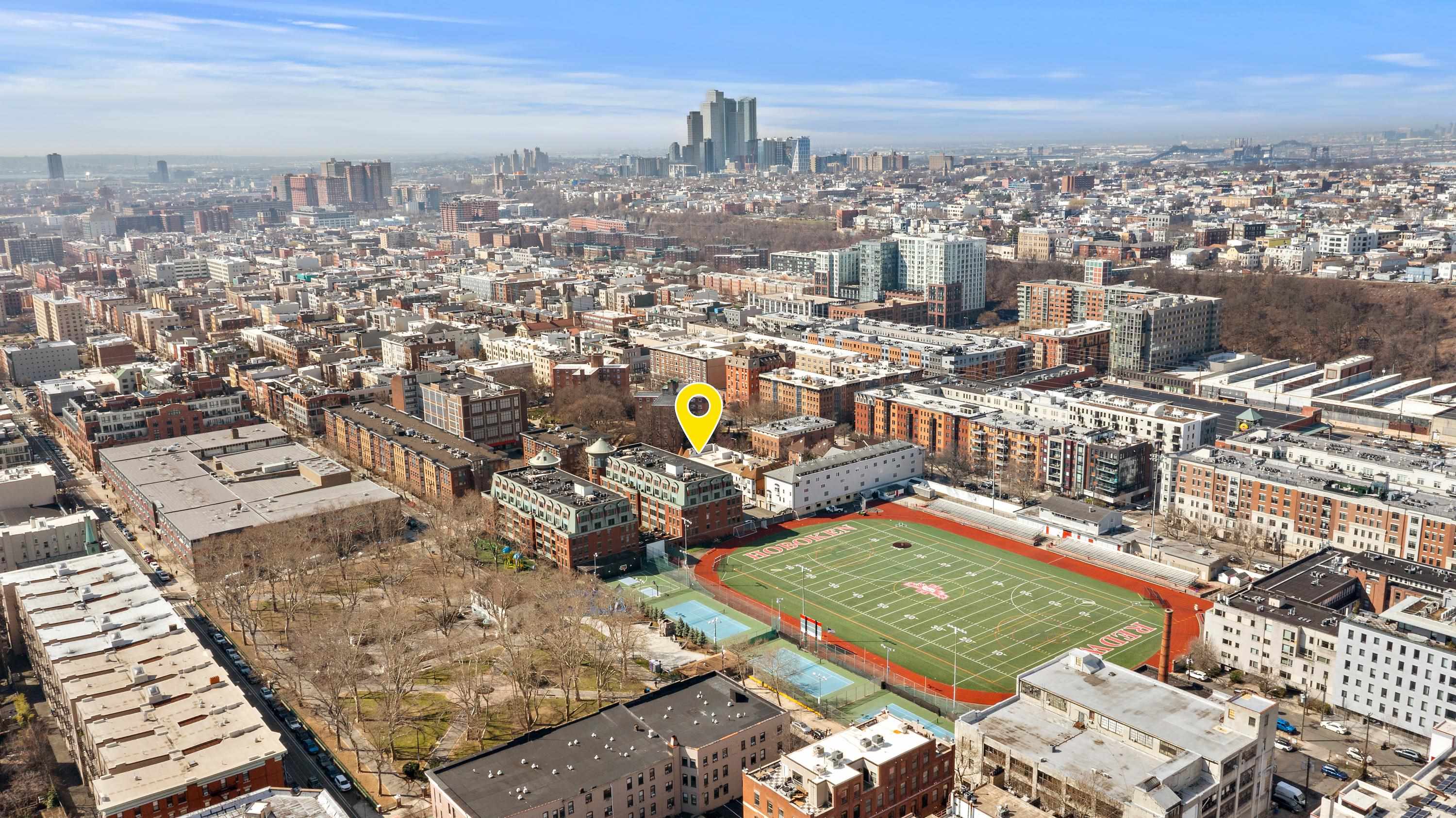 Perfectly sited just one block from Hoboken’s beloved Columbus Park and two blocks from both the express bus to New York City and the 9th Street Light Rail Station, Townhouse 49 at Roberts Court is an expansive and impeccably appointed three-bedroom, two-and-a-half-bathroom home with private garage parking for one car. With 2,003 SF of thoughtfully designed interior living space, this semi-detached 19' wide townhouse is the rare offering that combines grand proportions with high-end finishes and a special corner perch dressed in south facing windows. From the moment you arrive through a tiled vestibule, you’re immediately enveloped in a rare sense of privacy and refinement that's a true departure from typical city living. Inside, a spacious open-concept layout defines the main living and entertaining area which is framed by a breakfast nook with a built-in bench and a sunken living room with a turret perfect for a sitting or play area. The heart of the home is a designer chef’s kitchen featuring bespoke inset cabinetry, imported quartz countertops and backsplash, a center island, and stainless steel appliances highlighted by an integrated 36†Sub-Zero refrigerator and a Wolf range and oven. The first floor is completed by a powder room adorned in marble hex tile. Upstairs, the king-size primary suite is a sanctuary all its own, completed by a turret perfect for WFH activities, a walk-in closet enhanced by the Elfa system, and an en-suite bathroom outfitted in subway tile and a glass-enclosed walk-in shower. Two additional bedrooms are smartly separated for privacy and comfort; the middle bedroom offers a bay window with built-in bench seating while the front bedroom has dual closets. They share a full bathroom with a tub. Additional features at Townhouse 49 include secure gated entry, access to a full gym, a courtyard with a gazebo, the ability to park a second car in front of the garage, an in-home washer/dryer, a wood burning fireplace, crown mouldings and custom millwork throughout, and an oversized standing-height attic. There are two zones of central air conditioning and heating controlled by Nest learning thermostats — the units are two years old and the hot water heater is three years old. Townhouse 49 at Roberts Court is an easy stroll to the NY Waterway Ferry at 14th Street, Washington Street and the Hudson River Waterfront Walkway in addition to an exciting array of boutique shopping, dining, coffee shops, farmers’ markets and parks/playgrounds that make The Mile Square City so special. Some images virtually staged.