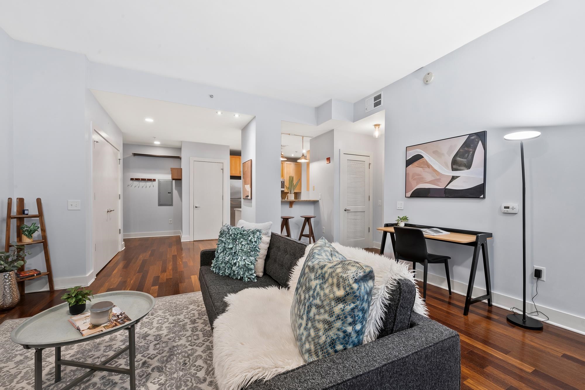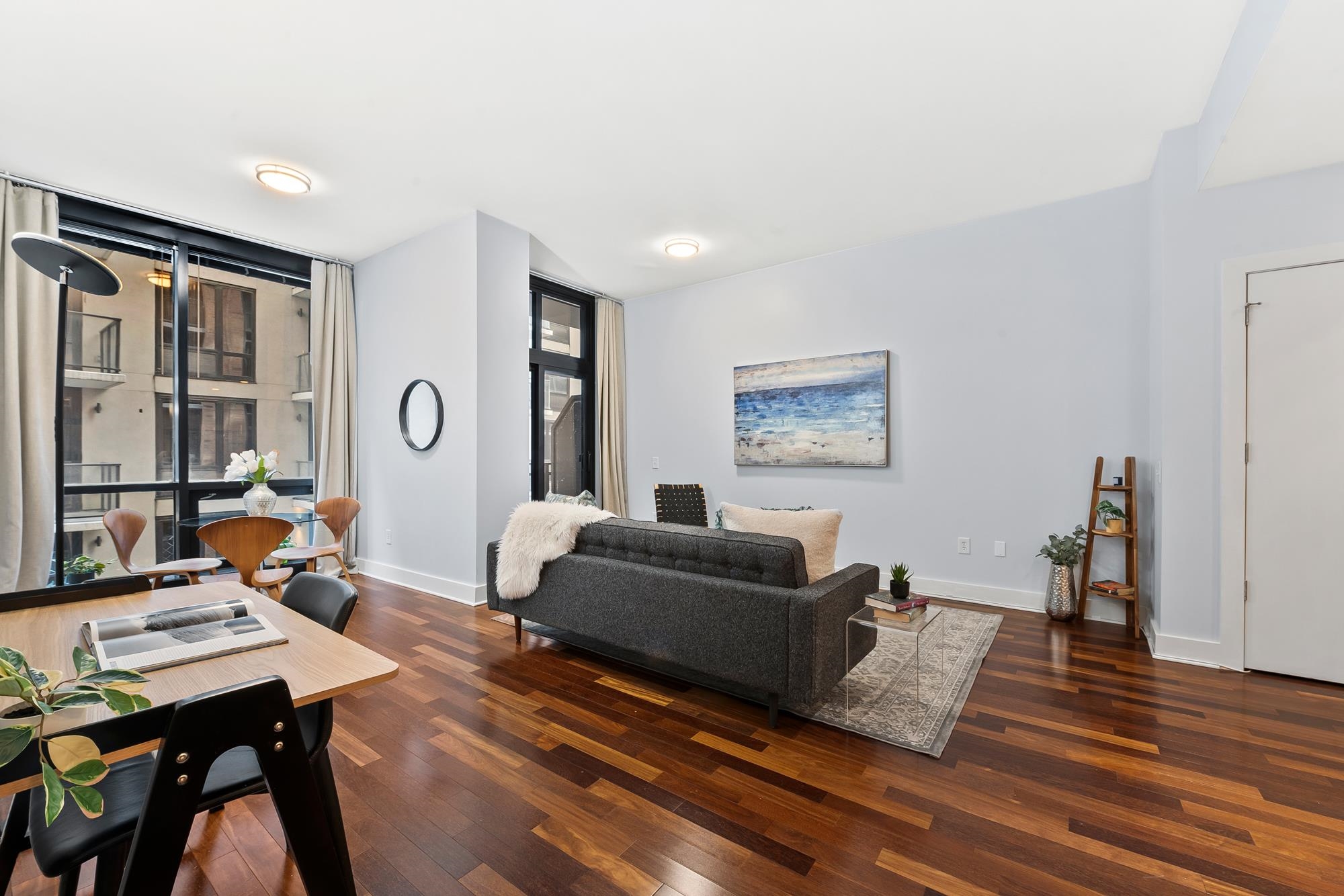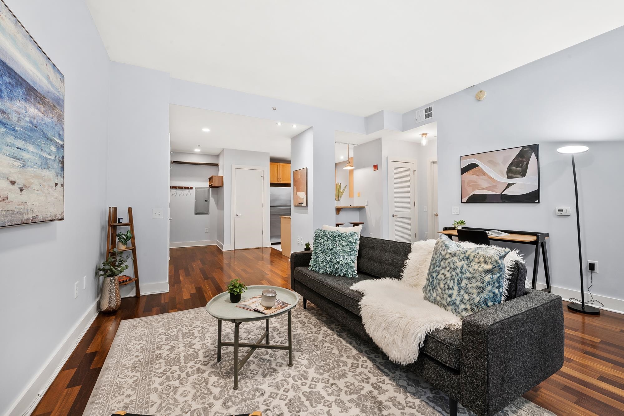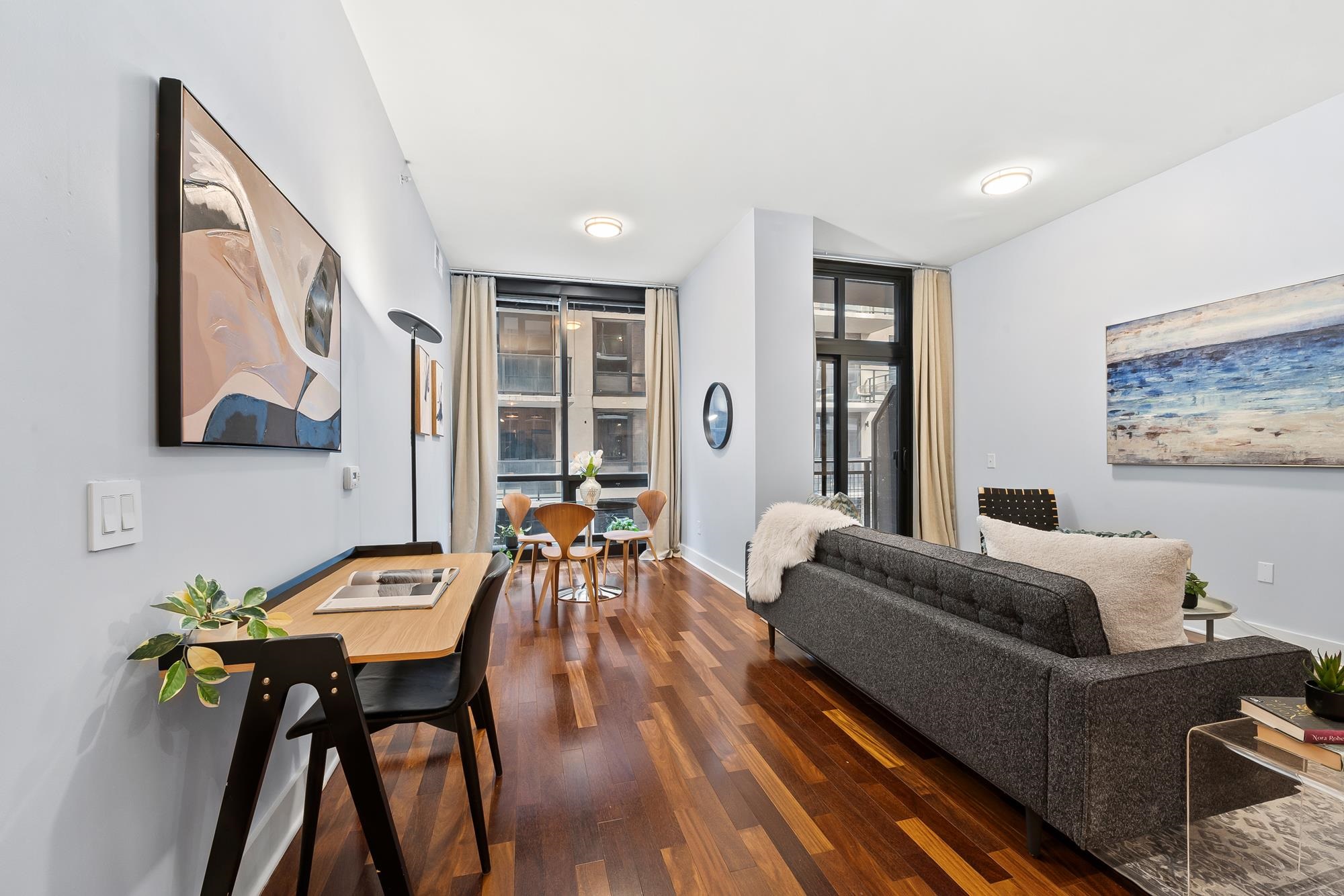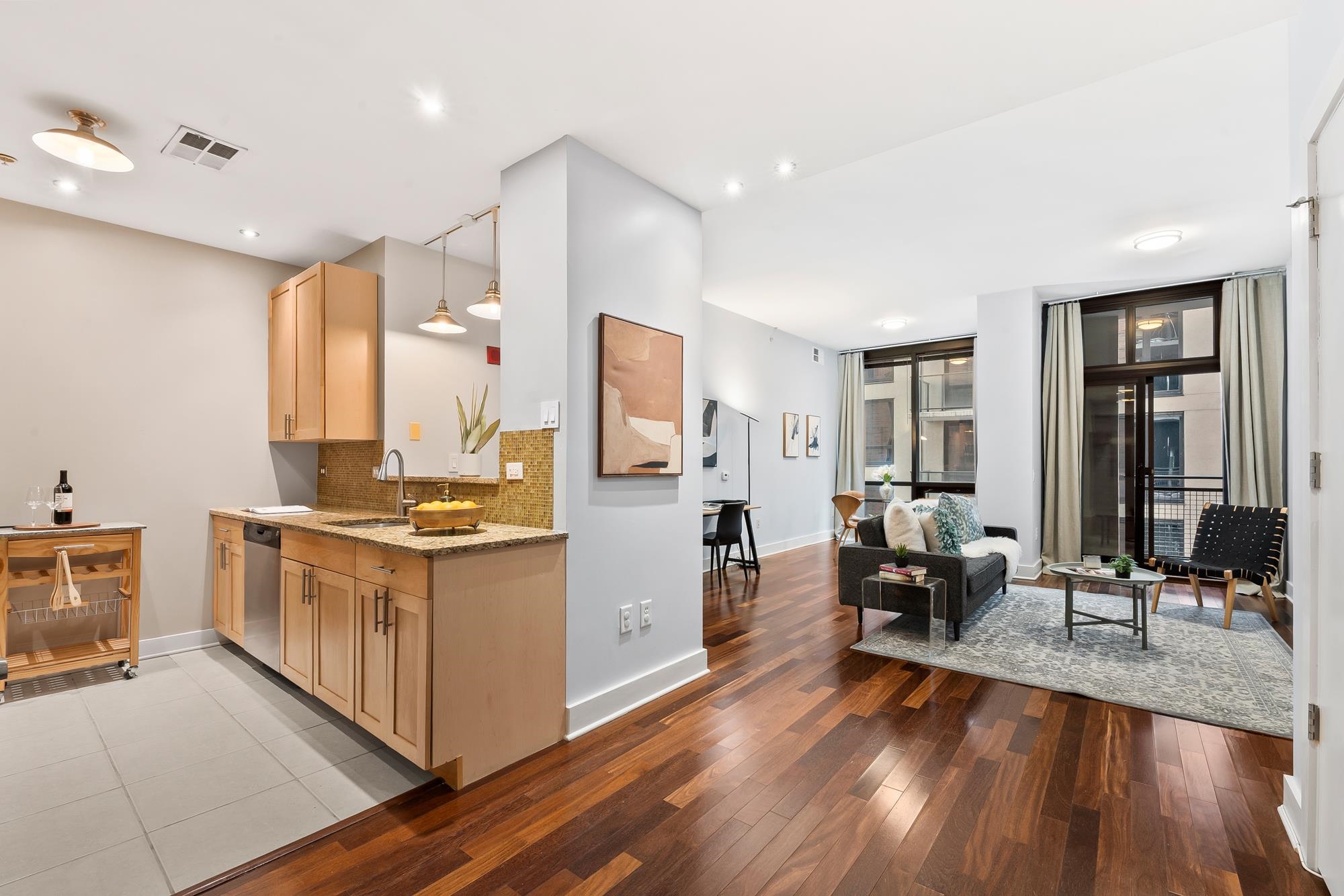 Welcome to the award-winning Waldo Lofts, ideally located in the highly coveted Powerhouse Arts District of Downtown Jersey City. This expansive 1-bedroom residence offers a striking open-concept layout complemented by a private balcony, perfect for both everyday living and entertaining. Inside, the home showcases rich hardwood flooring, soaring loft-style ceilings, and dramatic floor-to-ceiling windows that flood the space with natural light. The thoughtfully designed gourmet kitchen features granite countertops, a raised breakfast bar, stainless steel appliances, and a dishwasher, blending style and functionality seamlessly. Additional comforts include an in-unit washer and dryer and central HVAC, completing this exceptional home. Residents of Waldo Lofts enjoy a full suite of premium amenities, including a well-equipped fitness center, package room, bike storage, secure key-fob access, and an attentive on-site superintendent available five days a week, along with building cleaning services six days a week. Recent building enhancements include a state-of-the-art video intercom system. Verizon Fios, and utilities such as heat, hot water, and gas are included in the HOA. Conveniently located near the Grove Street PATH Station, commuting to New York City is effortless, while the surrounding neighborhood offers some of the best dining, shopping, and nightlife in Downtown Jersey City, making this a truly elevated urban lifestyle.