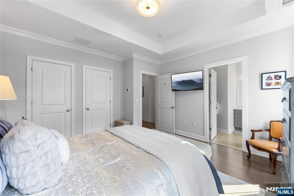 Call Charmy at 609.619.2198 to tour the home.Stunning Colonial Style Luxury townhome located in FINEST & sought after Wright Place Community of Wood Ridge;ONLY 4 YEARS OLD;beautifully kept,tons of upgrades & has one more year of TAX ABATEMENT left!30 mins from Manhattan,close to major turnpike/freeways,offers ease of commute to NYC,Hoboken,Jersey City,Secaucus,etc.;Wood Ridge has its own train station, Just 5 MIN Stroll from property & also offers option of 2 buses going directly into Manhattan that runs every 10-15 mins.This home includes front & rear entrance w/2car garage,2 car driveway.1st floor has 9ft high ceilings,2 closets,half bath,Flex space that can be used for entertainment,office space or can be easily converted to 4th bed.Dramatically arched staircase will bring you to 2nd floor showcasing Large open concept layout perfect for entertaining,10ft high ceilings,tall windows,massive dining space,modern Kitchen w/breakfast bar & Pantry,SS appliances,Quartz countertops,large living room w/fireplace,outdoor deck offering UNINTERRUPTED Views.3rd floor offers main bed suite w/full bath,his&her closets,2 add'l bedrms,full bath & laundry room;2 Zone heating/cooling,hardwood floors throughout.Wood-Ridge that has so much to offer;good schools,restaurants,coffee shop,liquor shop,pet grooming,phenix salon,sports field, parks,just steps away from TOP RATED elementary schools,Train station,NJ bus close by.Perfect home for buyers & great investment w/high rent potential.